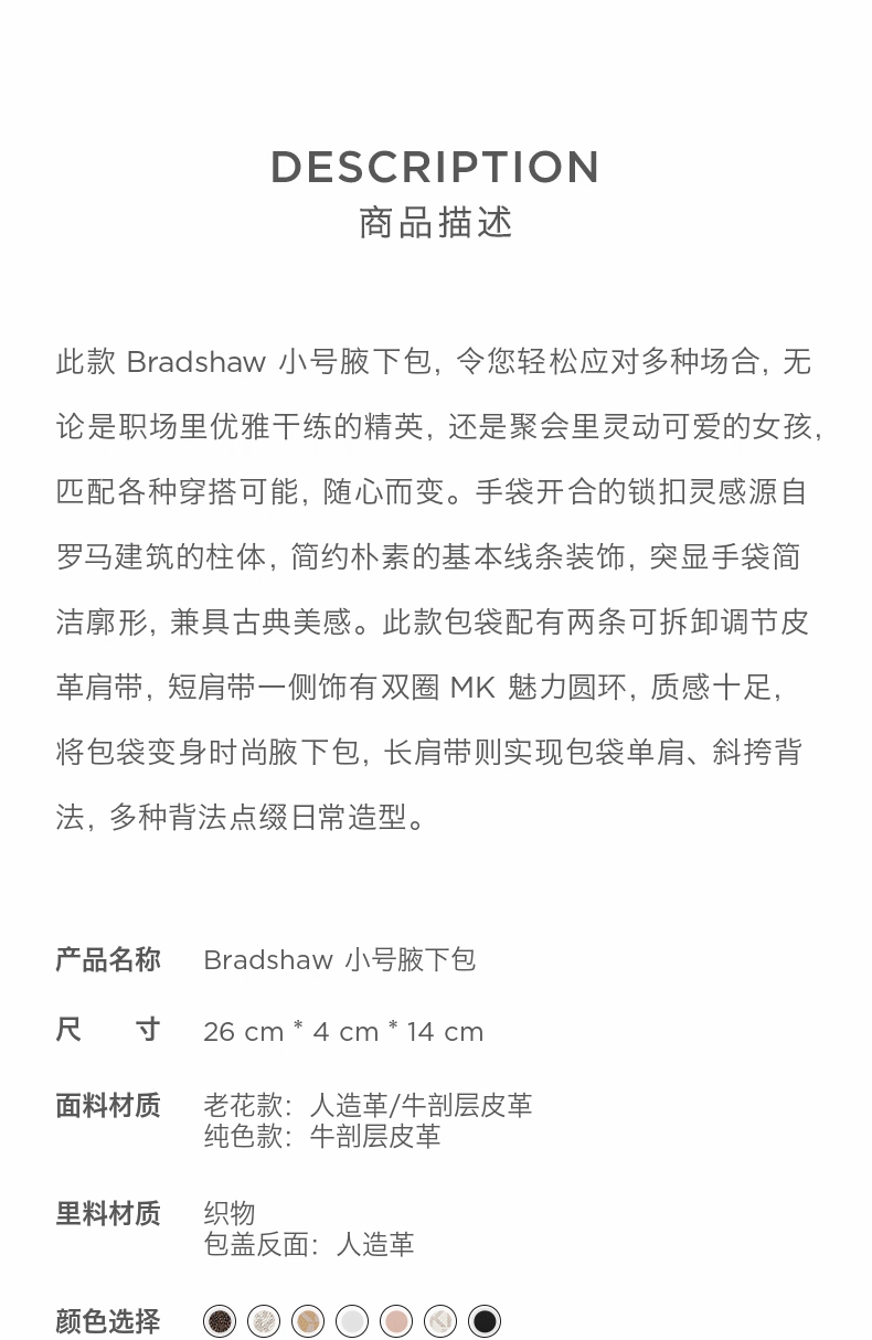 【香港直邮 奥莱清仓 】 MK Bradshaw 女士经典老花小号腋下包