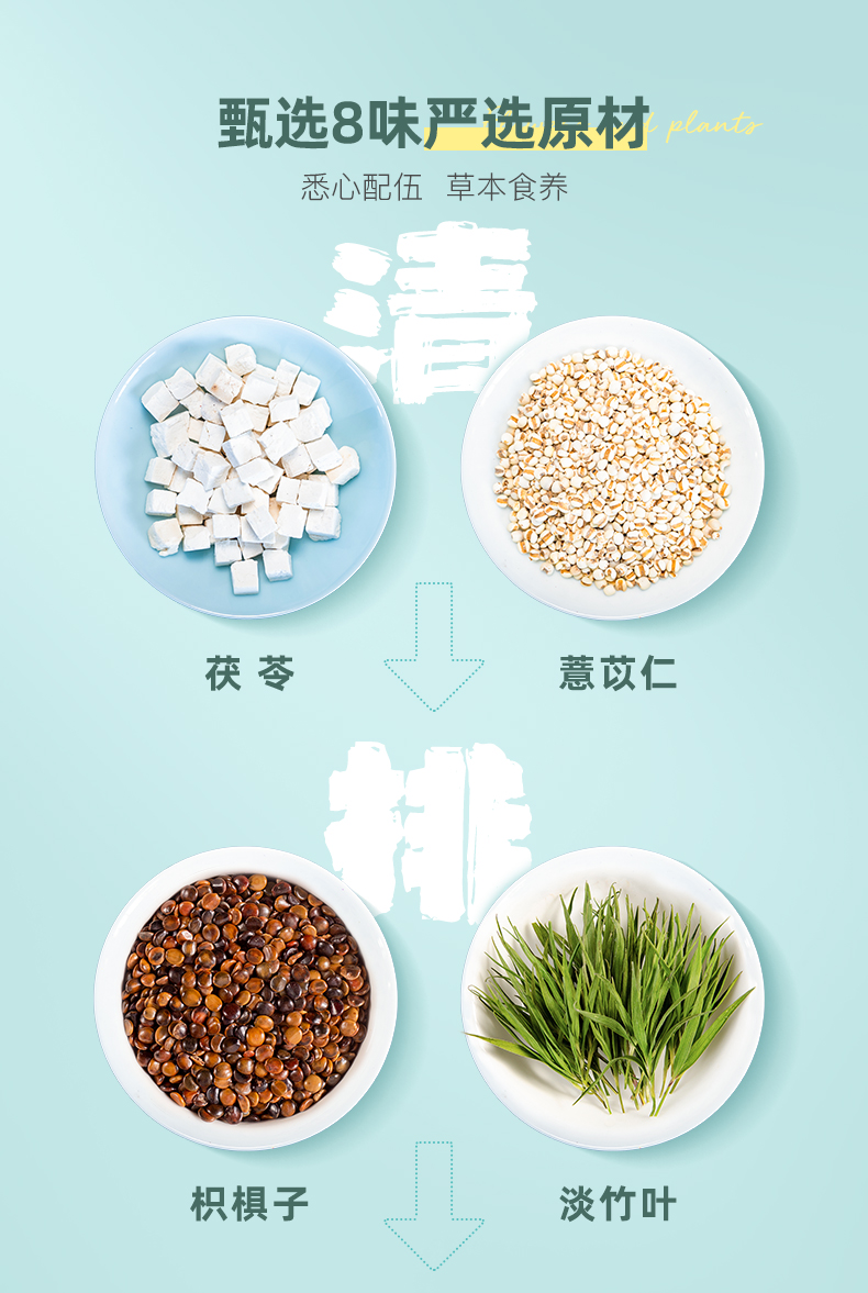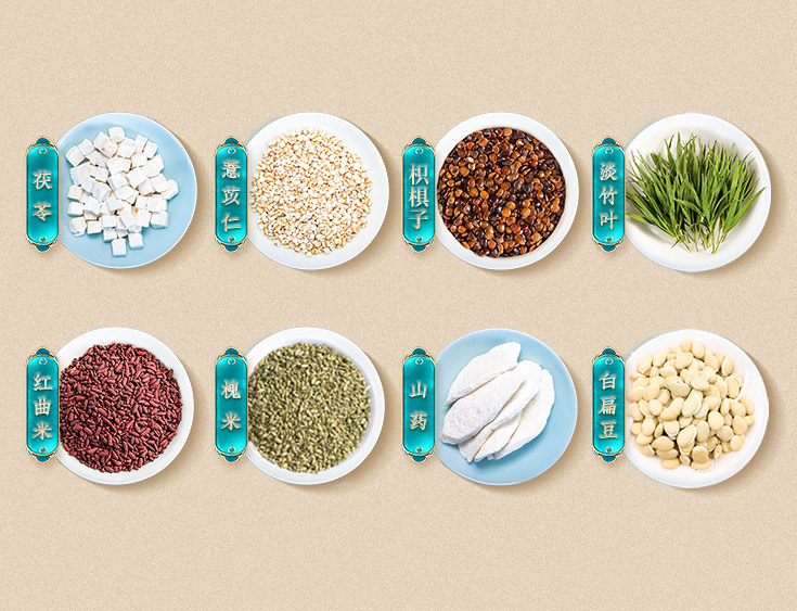 精选茯苓、薏苡仁、白扁豆、枳椇子、淡竹叶、槐米、山药、红曲米8种食材,采用膏方熬制技艺制作而成。