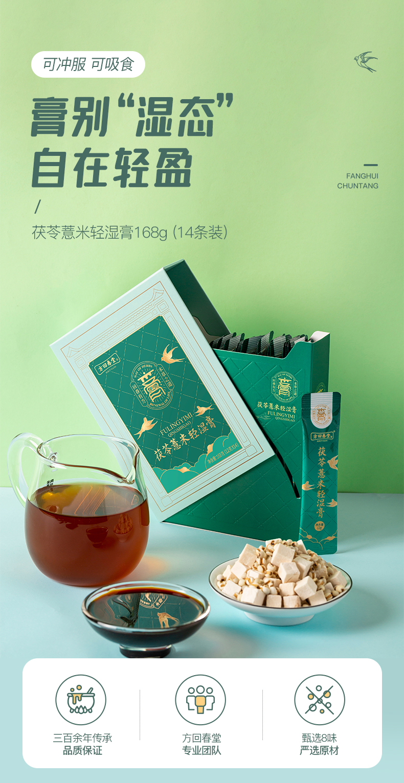 方回春堂茯苓薏米轻湿膏 严选原材料 遵循百年膏方技艺 膏别湿态 自在轻盈