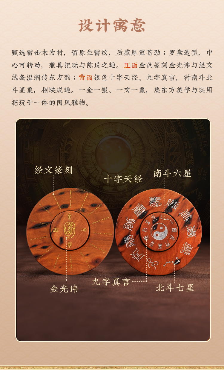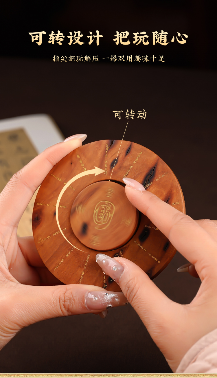 雷击木指尖陀螺随身把玩金光十字罗盘转轮手把件放松减压物品