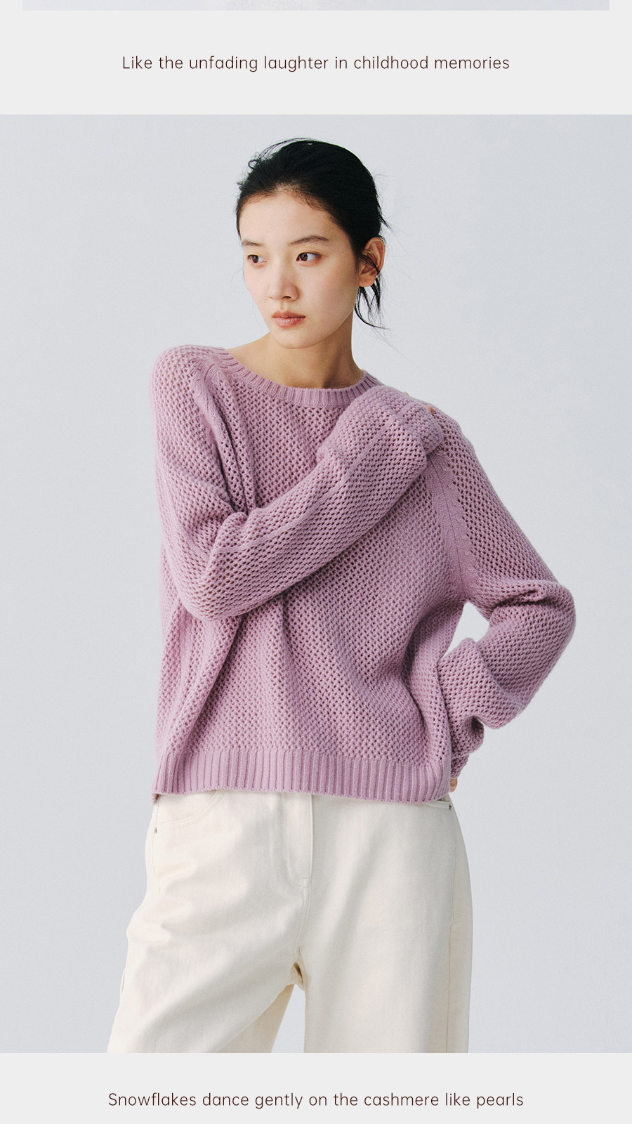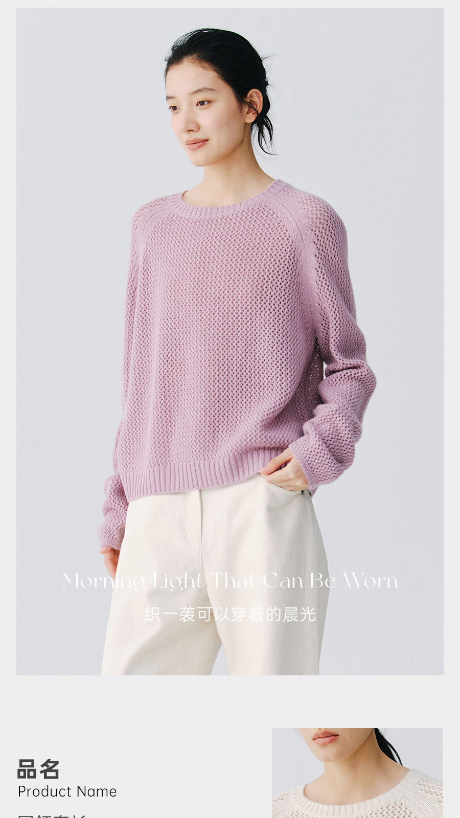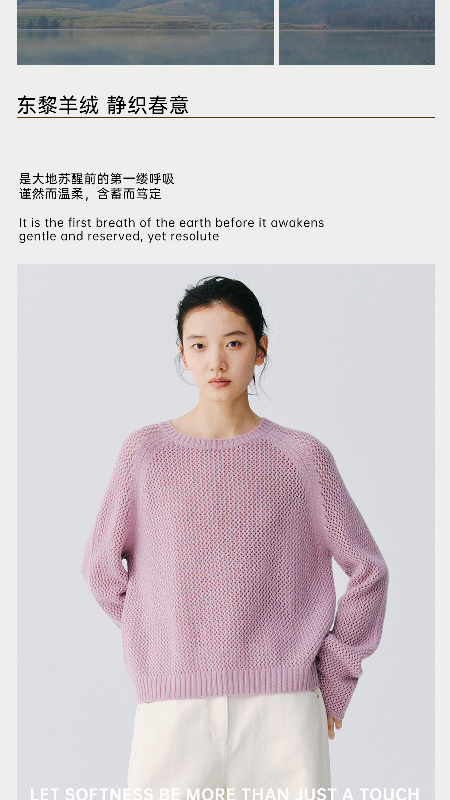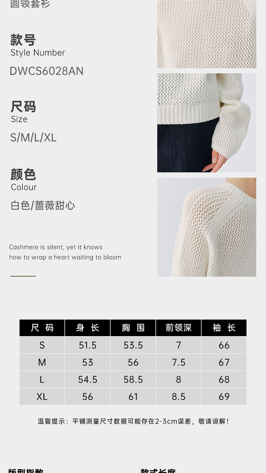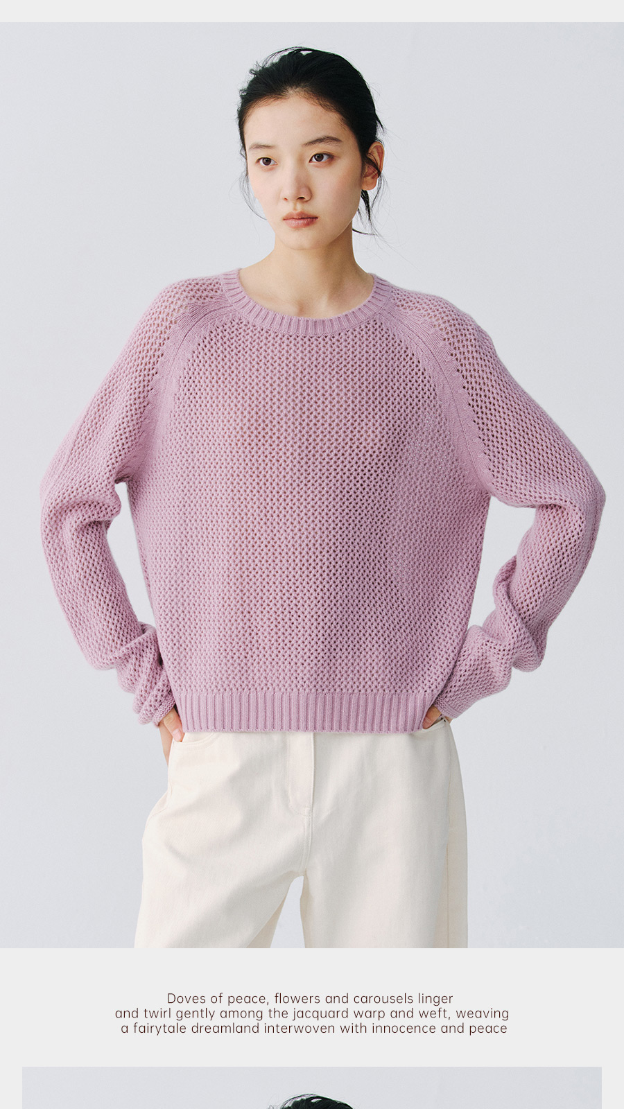 东黎 • 复苏的呼吸 山羊绒+珠片女士柔美镂空圆领套衫 6028