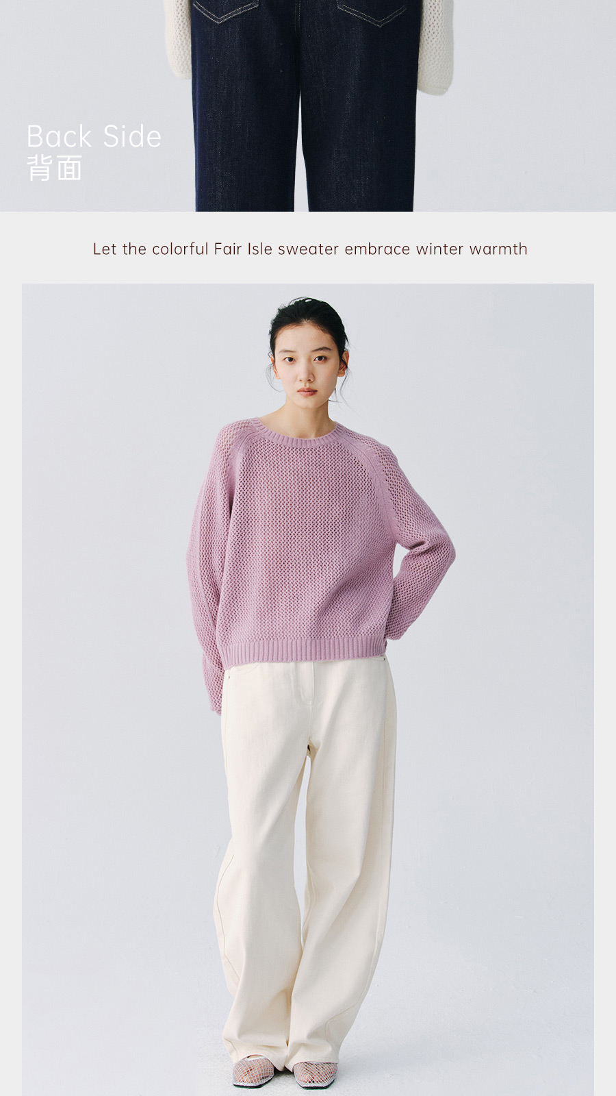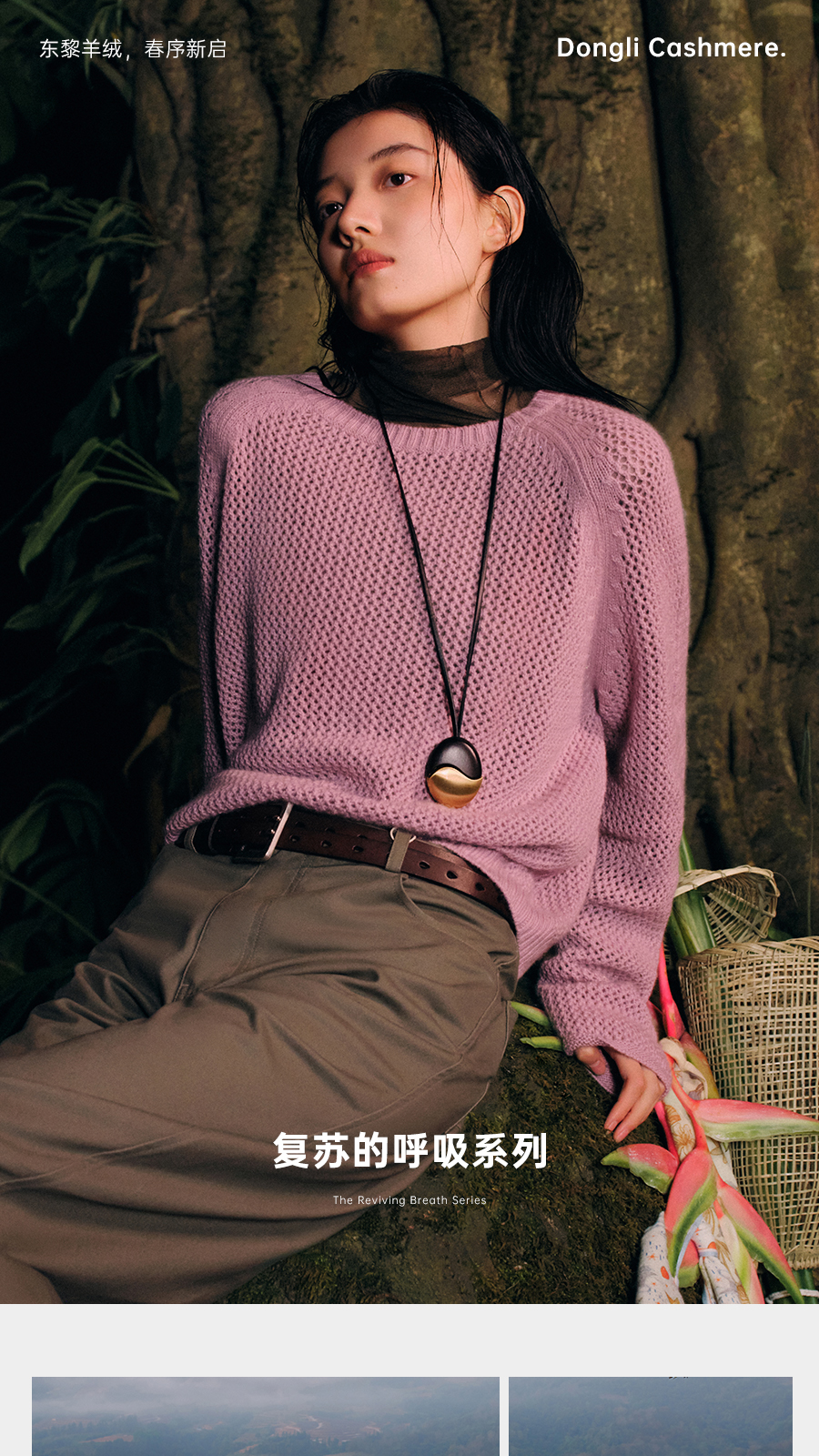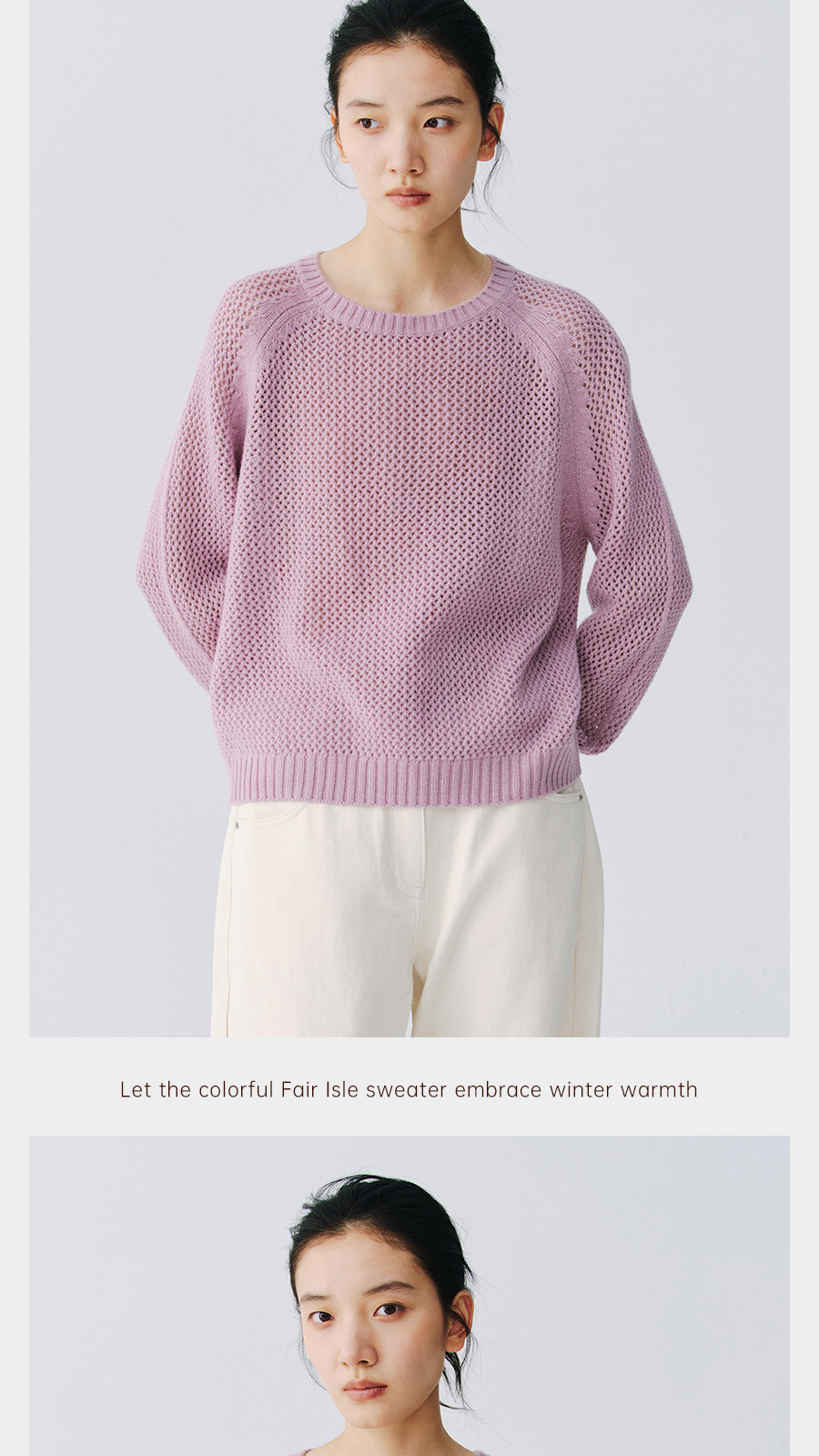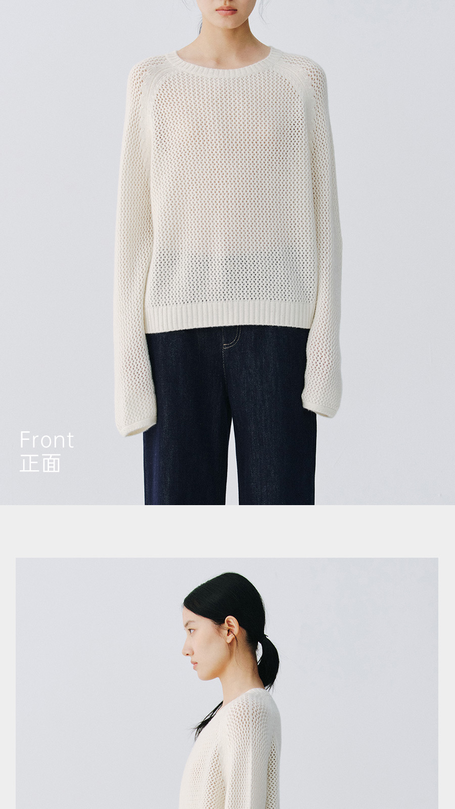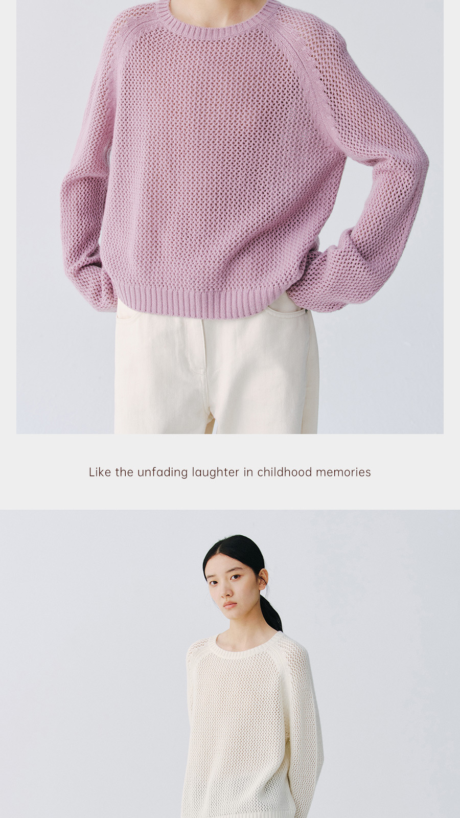 东黎 • 复苏的呼吸 山羊绒+珠片女士柔美镂空圆领套衫 6028