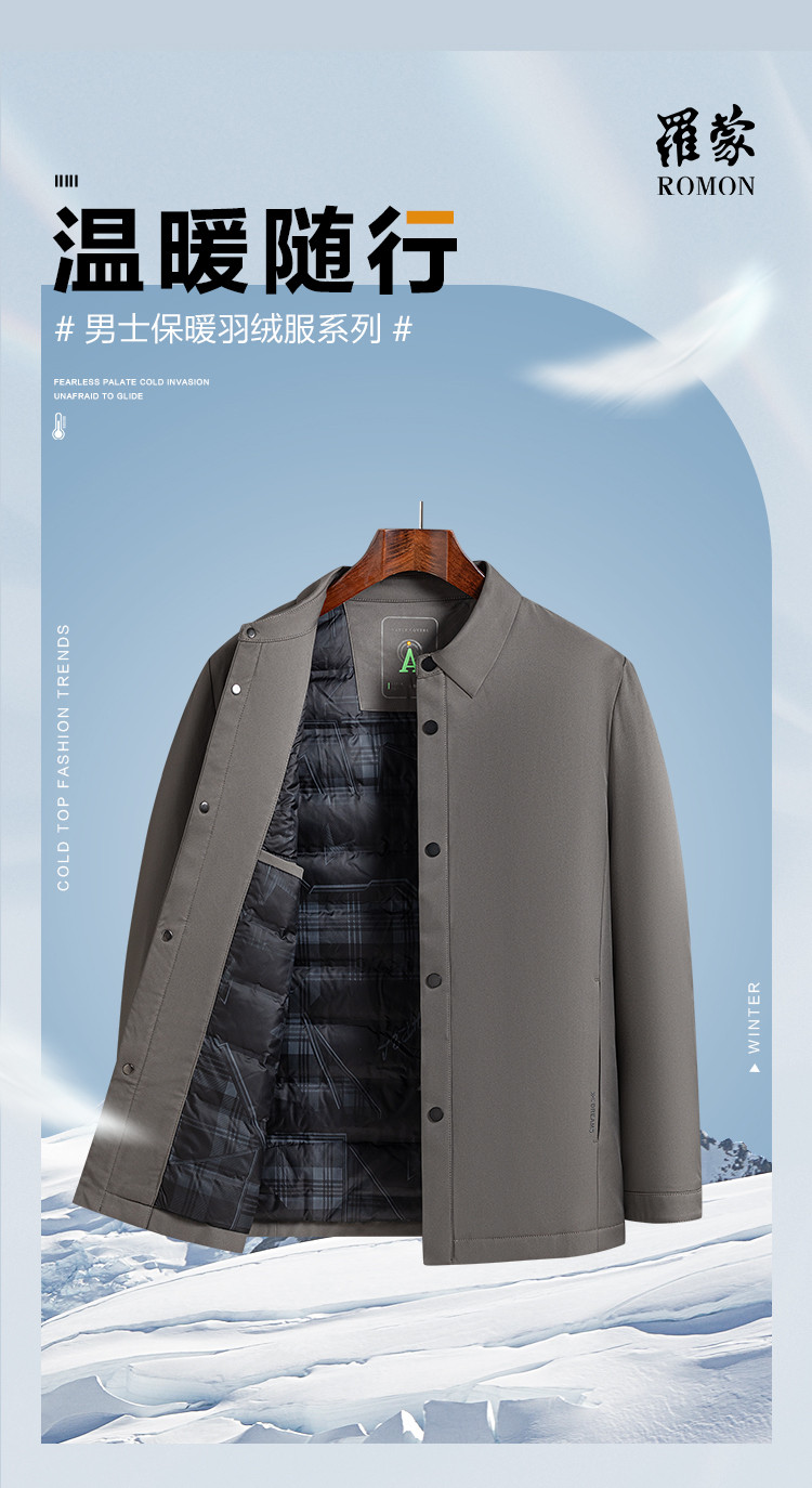 罗蒙秋冬男装纯色白鸭绒男士羽绒服商务休闲羽绒服男百搭保暖舒适男士外套