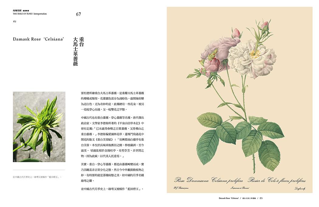 ◆ 書中透過流傳200年來驚豔世人的玫瑰圖譜 + 169種風姿綽約的傳奇玫瑰,打造出玫瑰植物的科普傳奇與藝術美學!