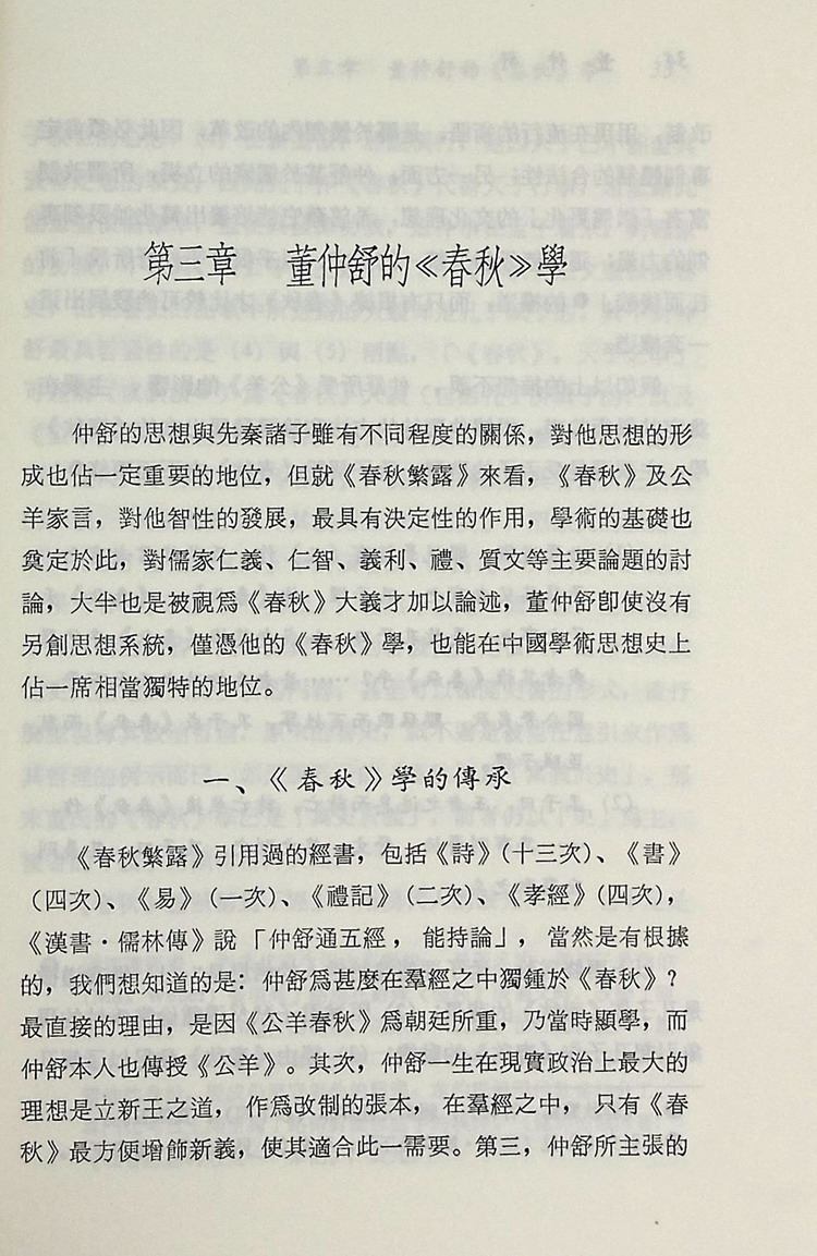 自民初新文化運動以來,董仲舒是一位很多人罵他,卻很少人真正了解他的人物。本書是從學術的立場透過歷史層次探討董仲舒思想的結構與意義,使我們今後從思想層次上評判其得失功過時,多一些可靠的依據。全書十章 的內容可分三部分來了解:(一)一至三章是要了解他的思想資源、學術基礎和智性發展的線索。(二)四至八章是將他思想的基要部分重新架構,做系統性的整理。(三)九、十兩章,一在澄清尊儒運動的真相,一在討論董仲 舒處理儒家與專制關係的理論。