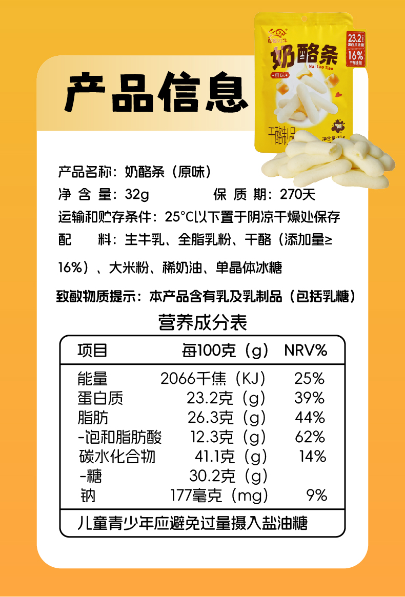 草原红牛 儿童零食办公室休闲零食 奶酪条32g/袋
