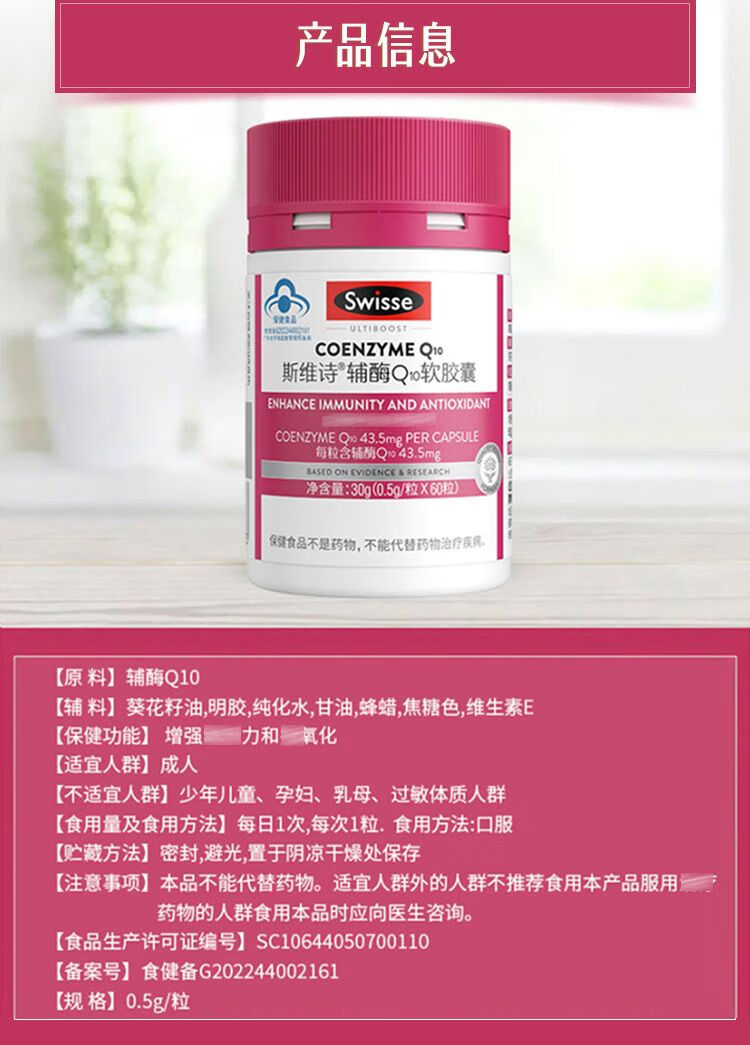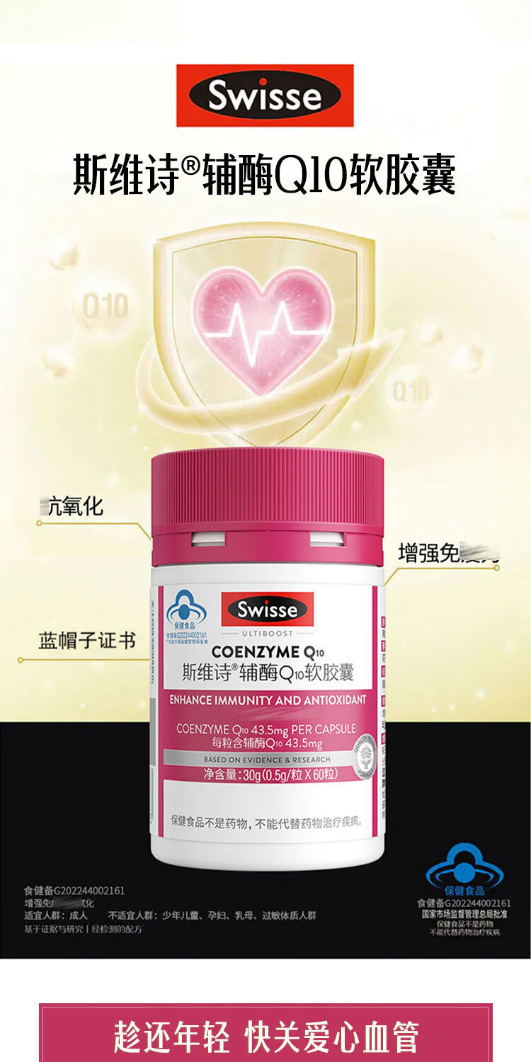Swisse斯维诗辅酶Q10软胶囊0.5g*60粒装/170035 增强免疫力和抗氧化
