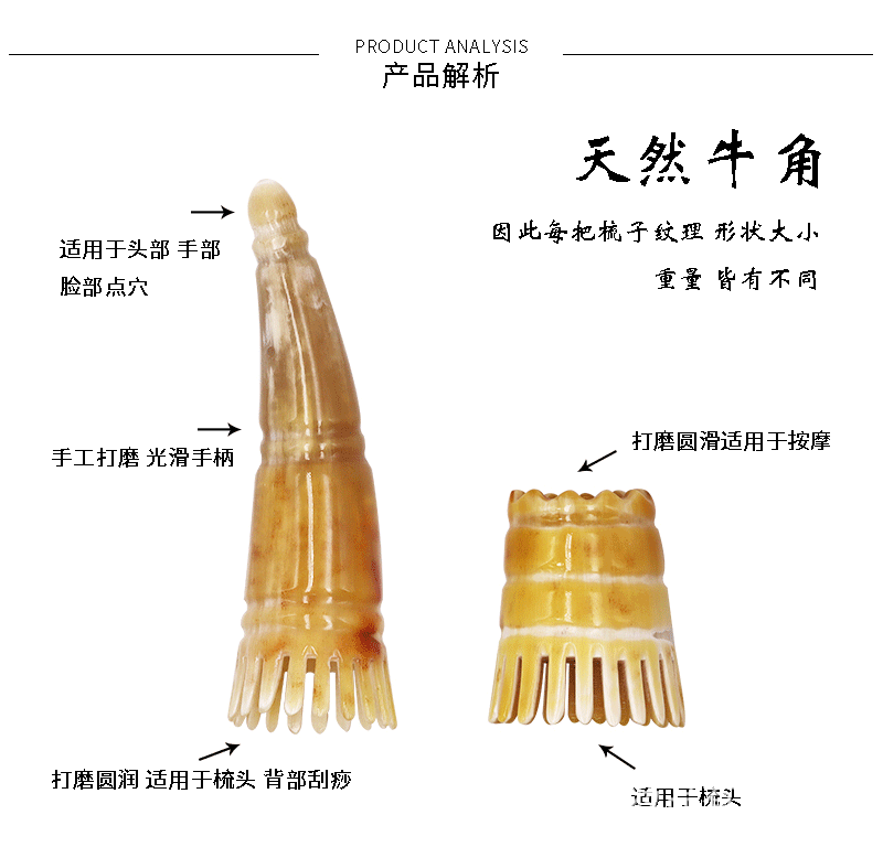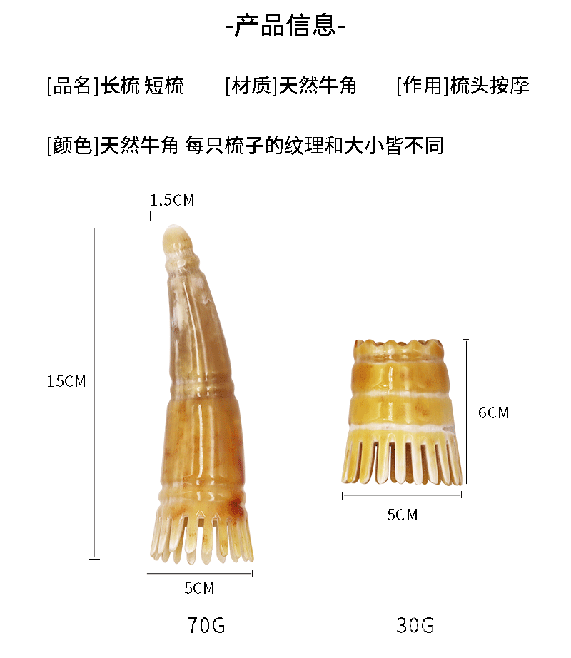 【头疗牛角刮痧梳】按摩点穴头部经络梳
