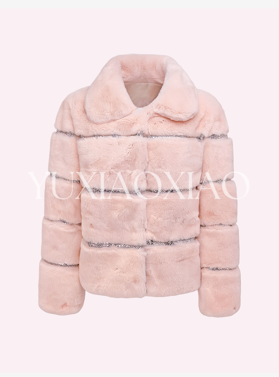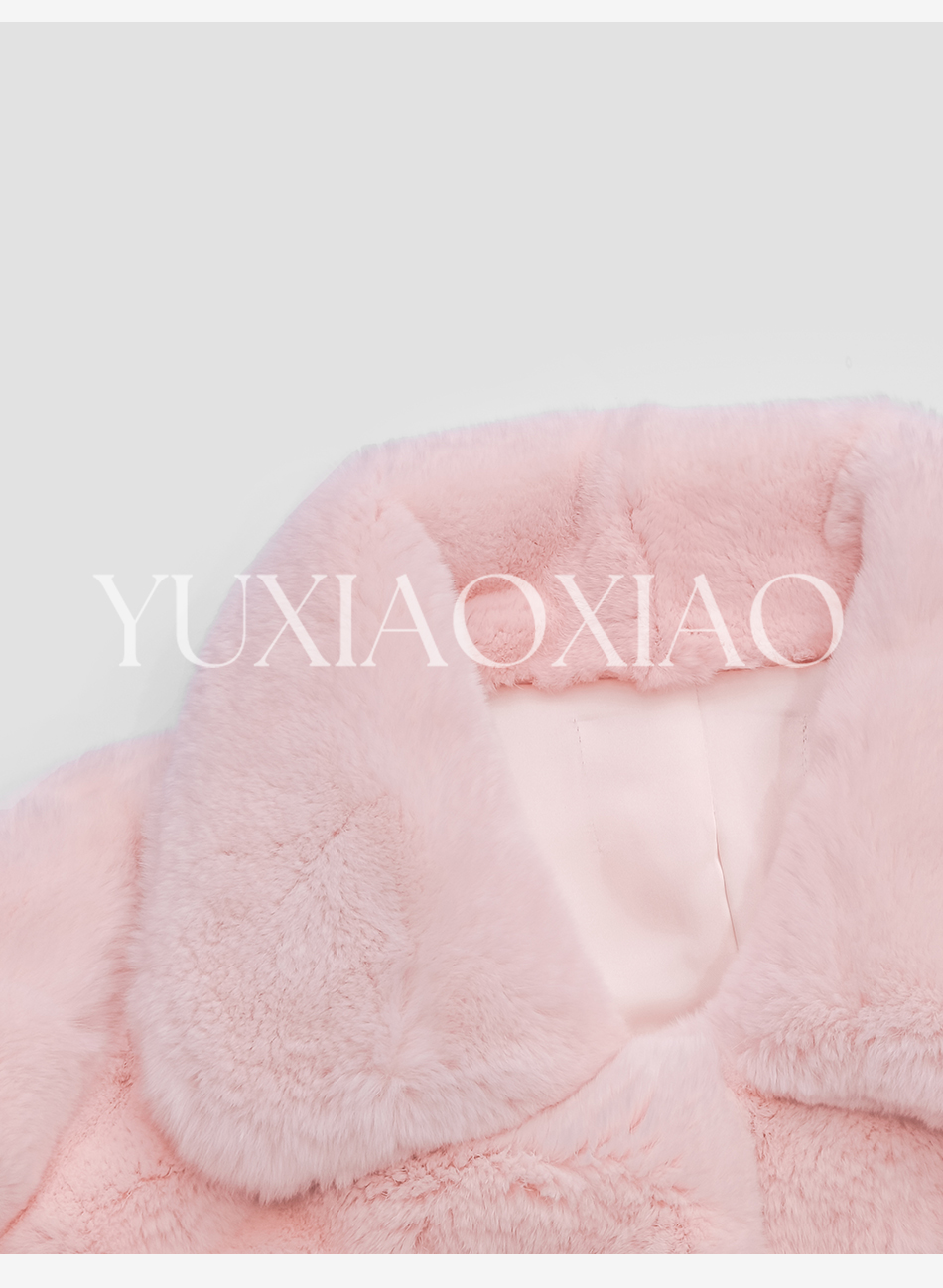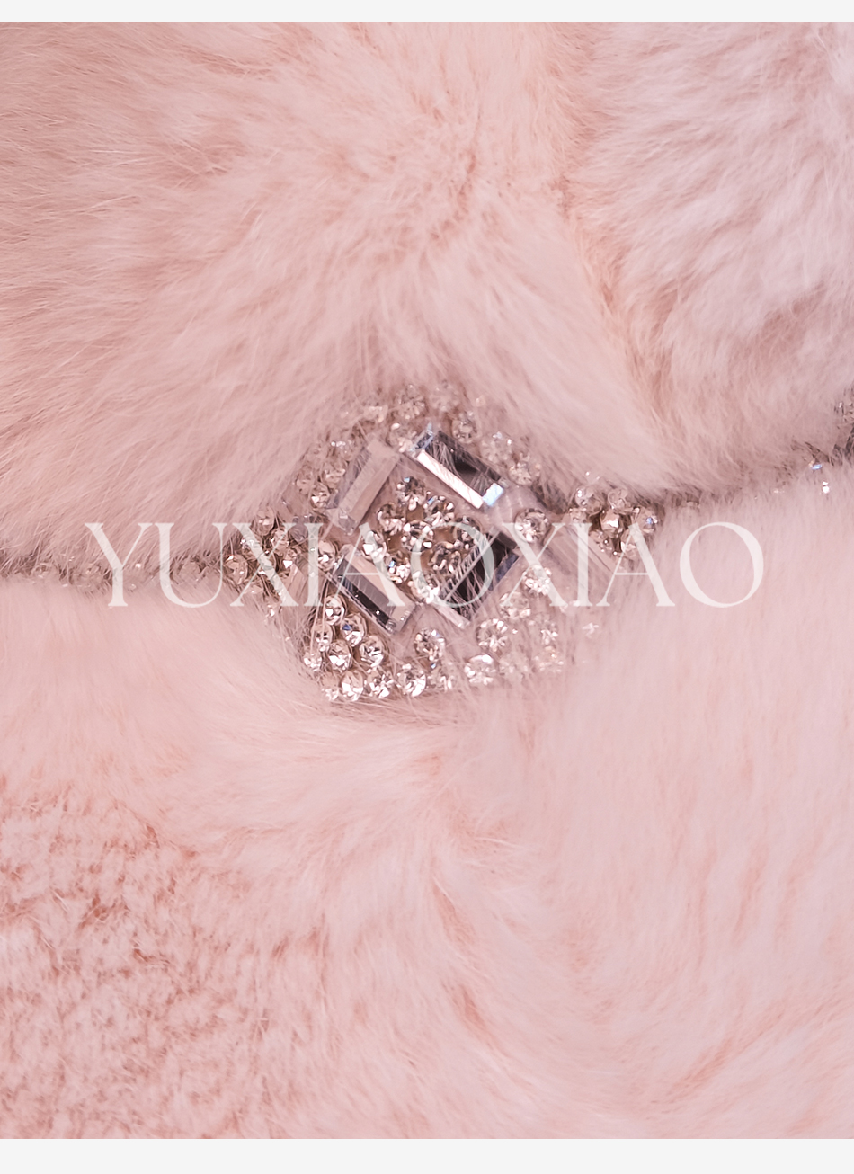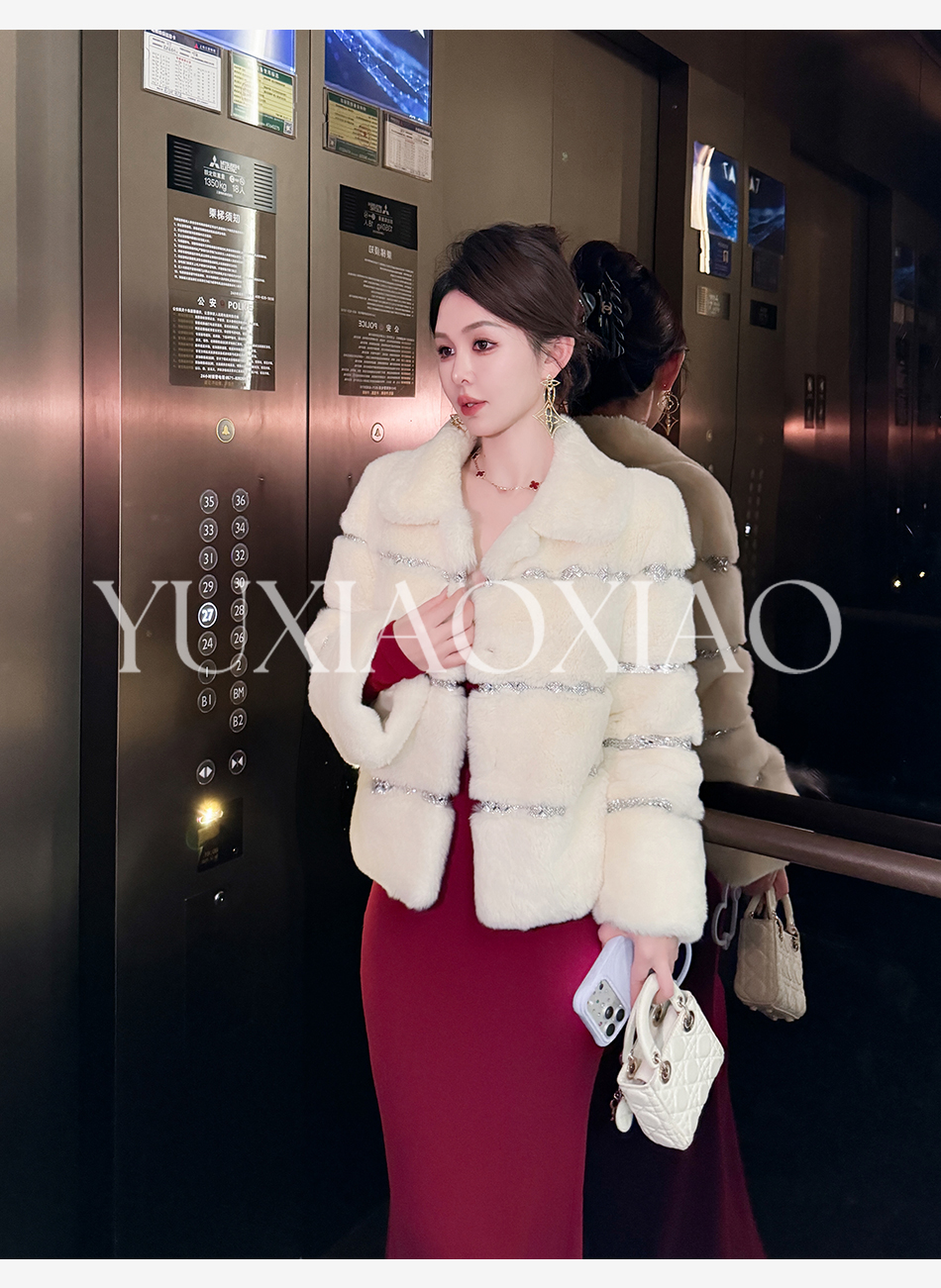 余潇潇【灵感缪斯】100雷克斯獭兔毛内里夹棉水钻织带气质翻领皮草