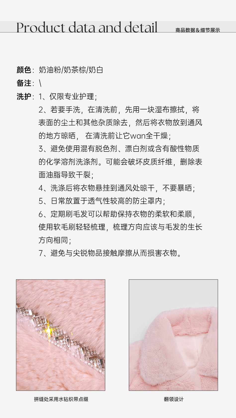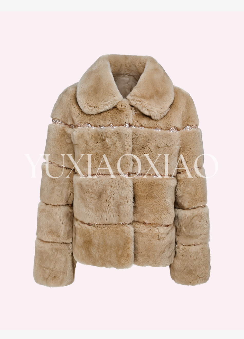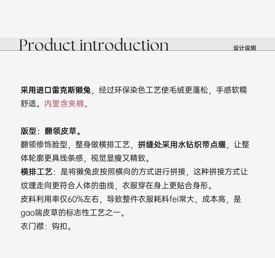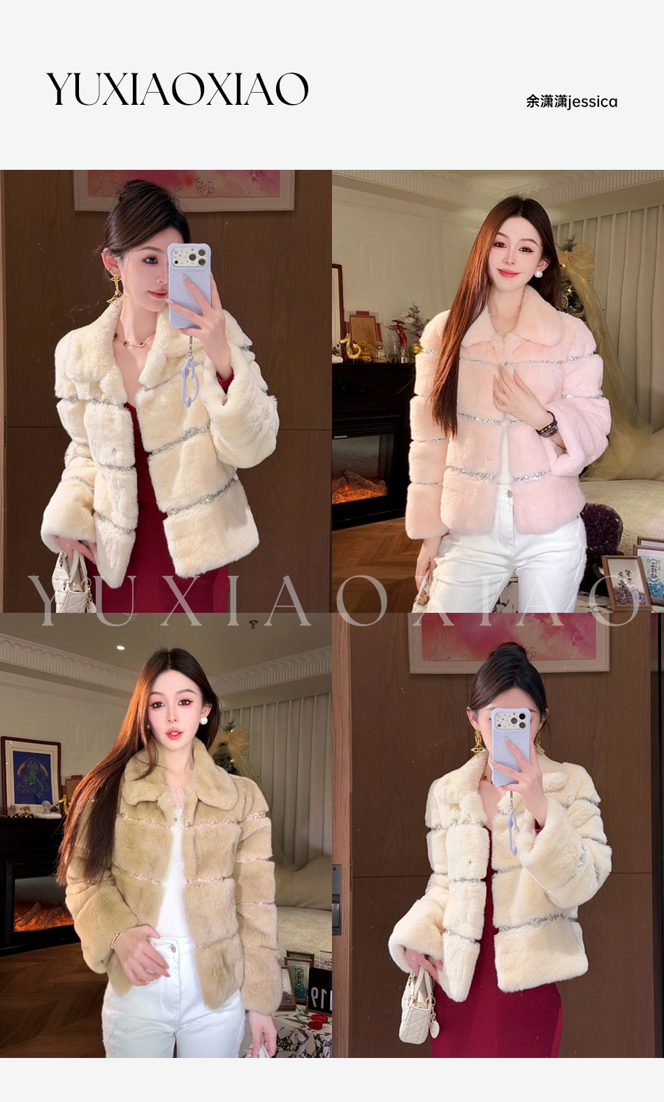 余潇潇【灵感缪斯】100雷克斯獭兔毛内里夹棉水钻织带气质翻领皮草