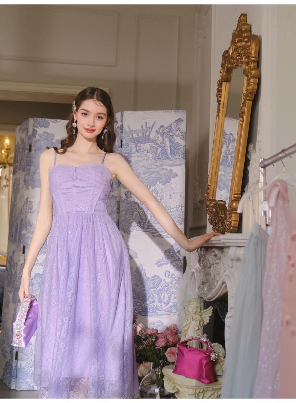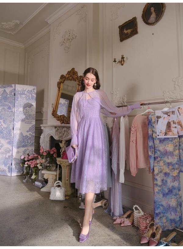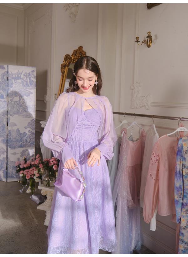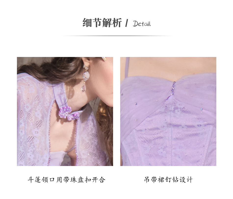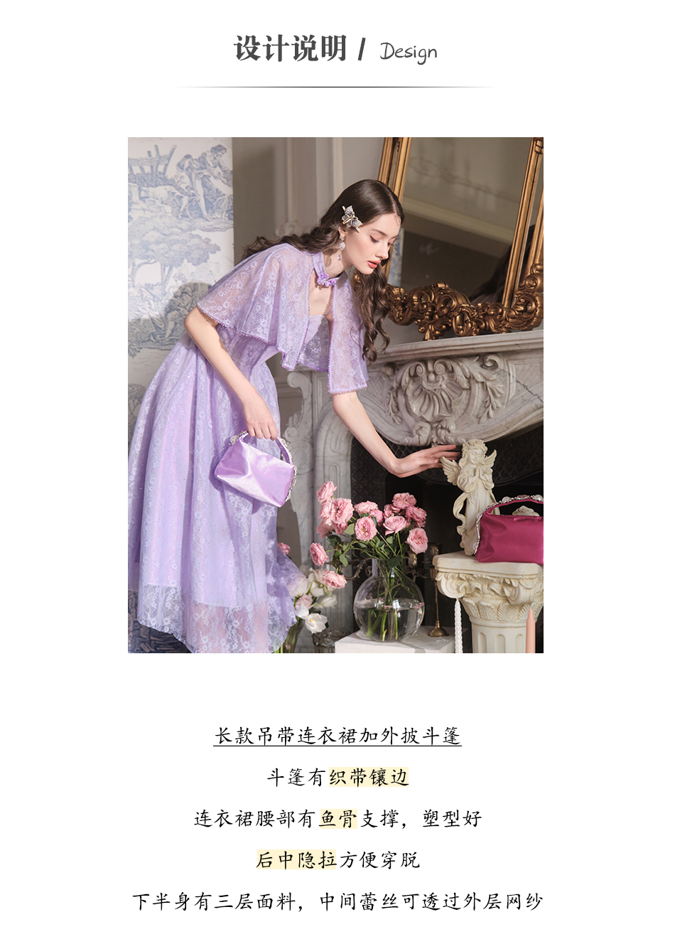 BeQueenStory【妙韵兰心】时尚名媛高贵绣花吊带连衣裙外披2023春季新款