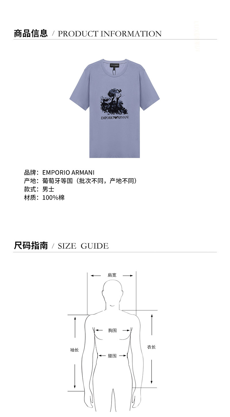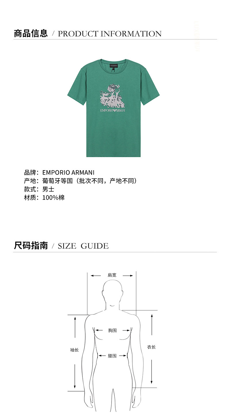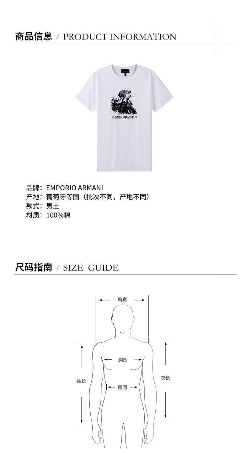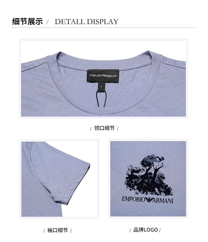 Emporio Armani/安普里奥阿玛尼【21秋冬新款】男士短袖T恤棉质圆领LOGO印花图案 6K1T6Q 1JQ4Z