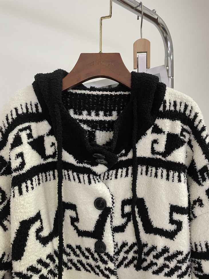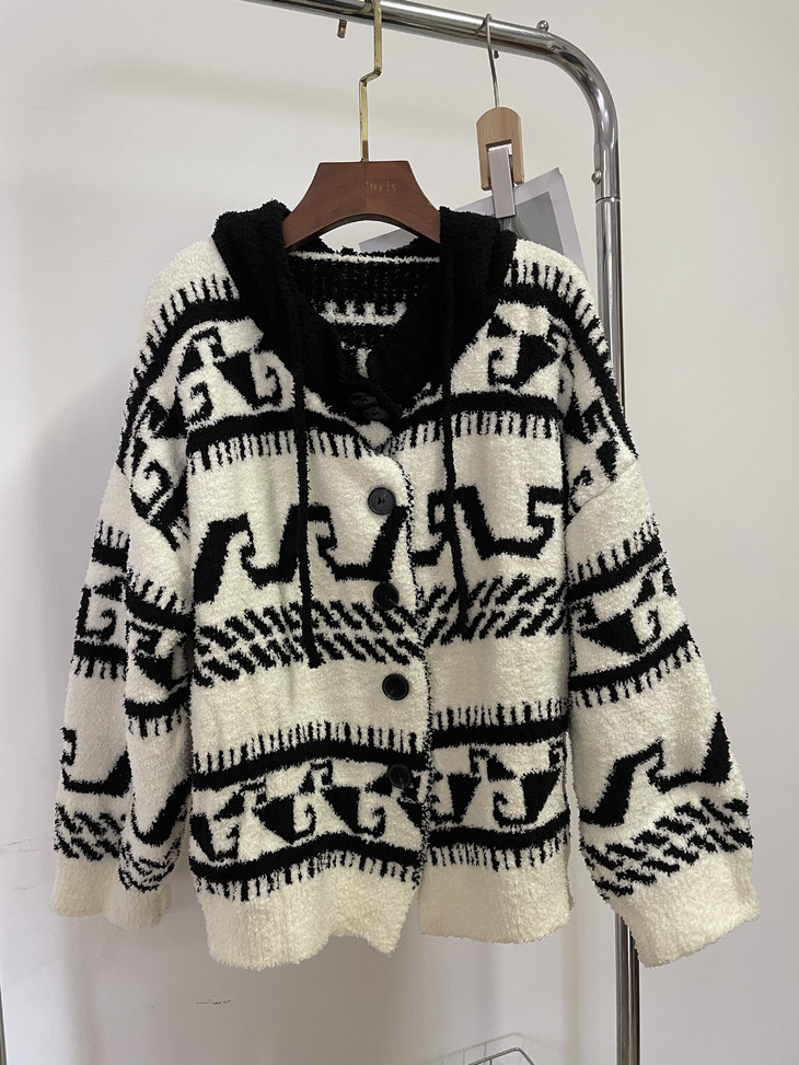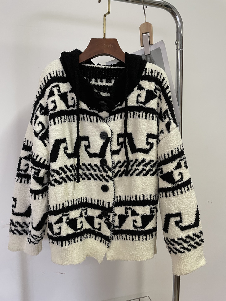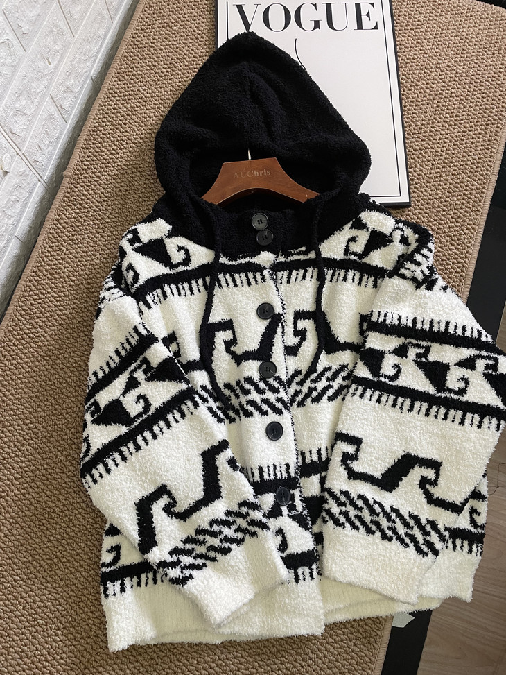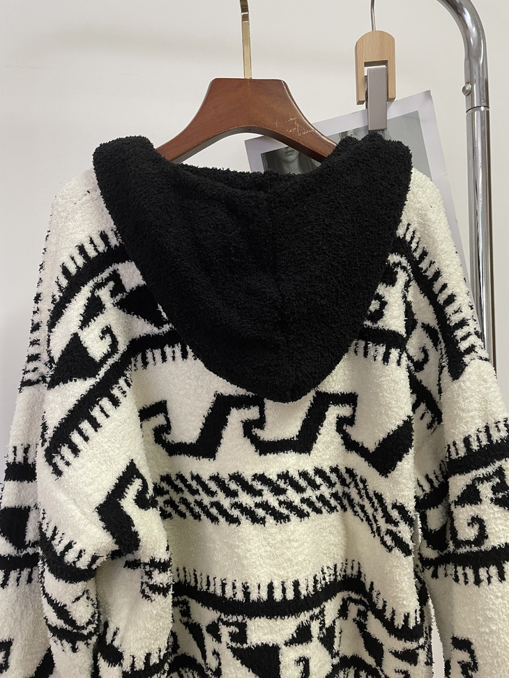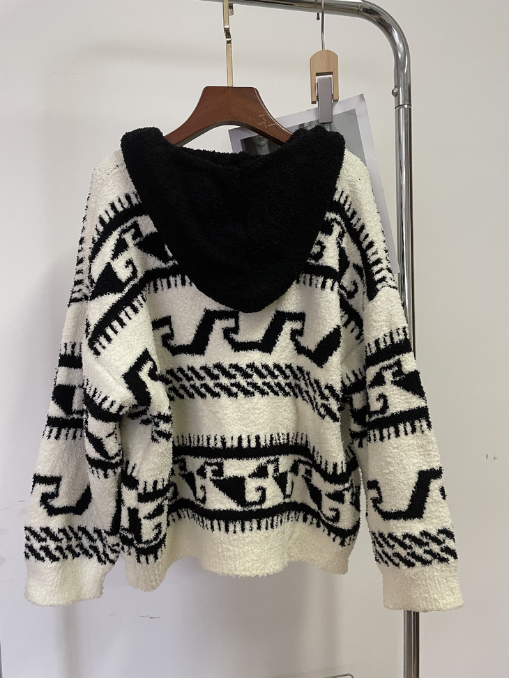 费尔岛印花宽松连帽软糯休闲外套-AUC111401
