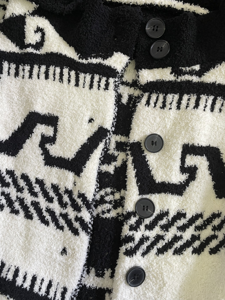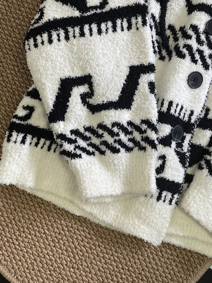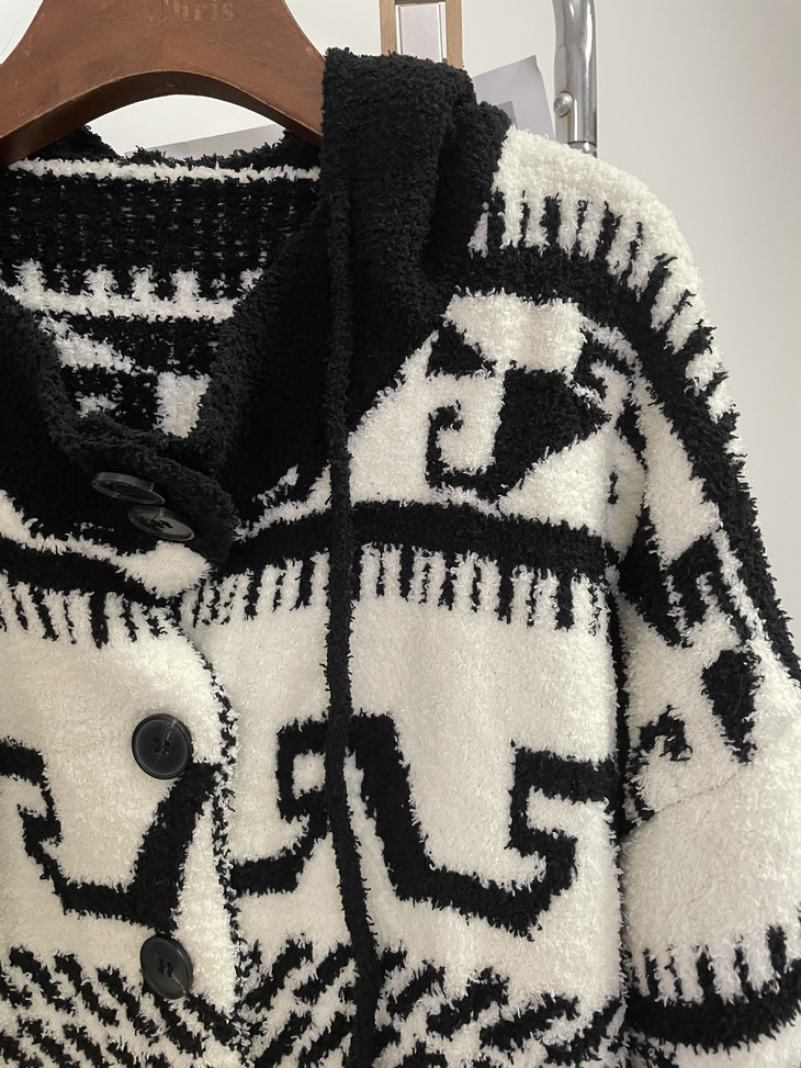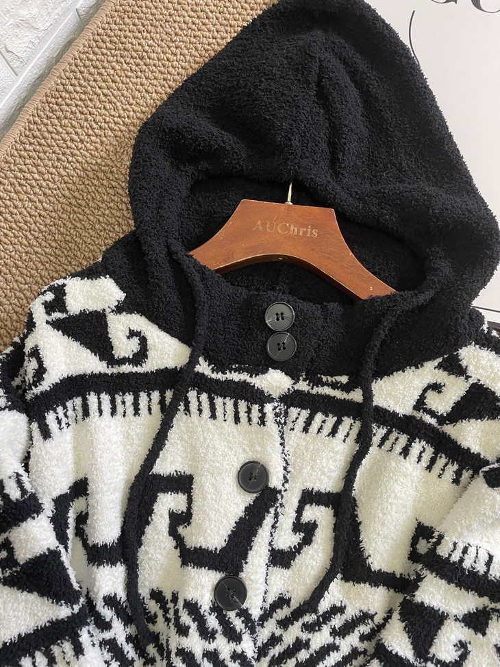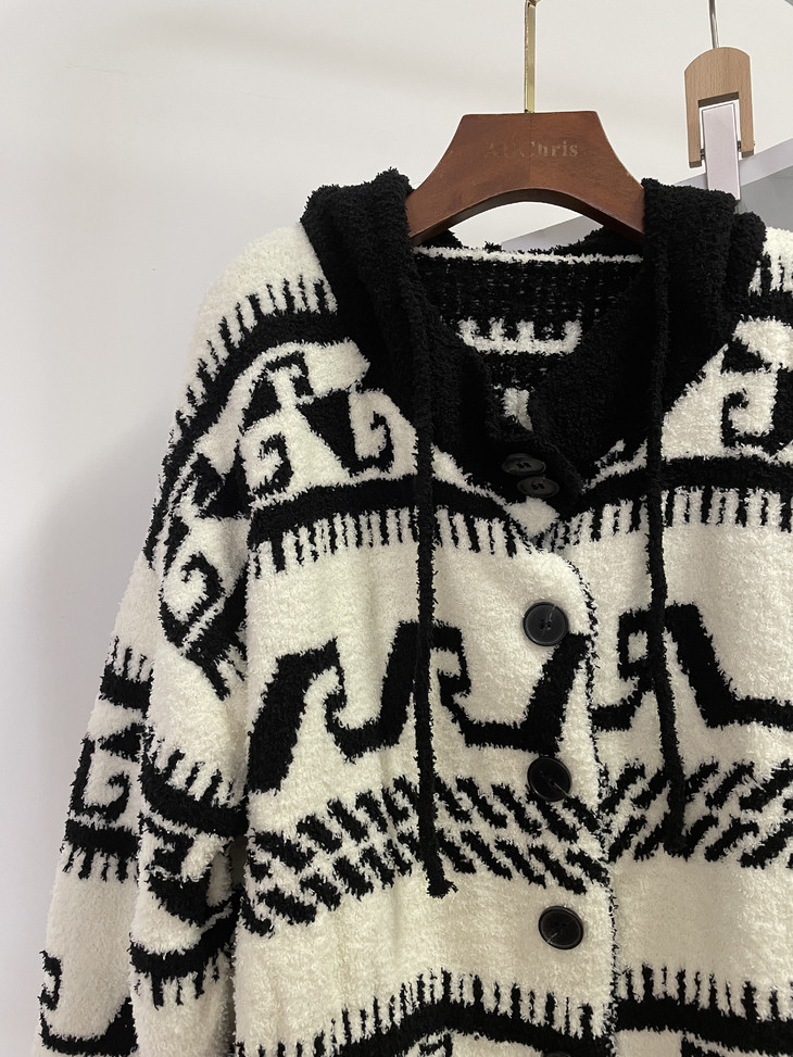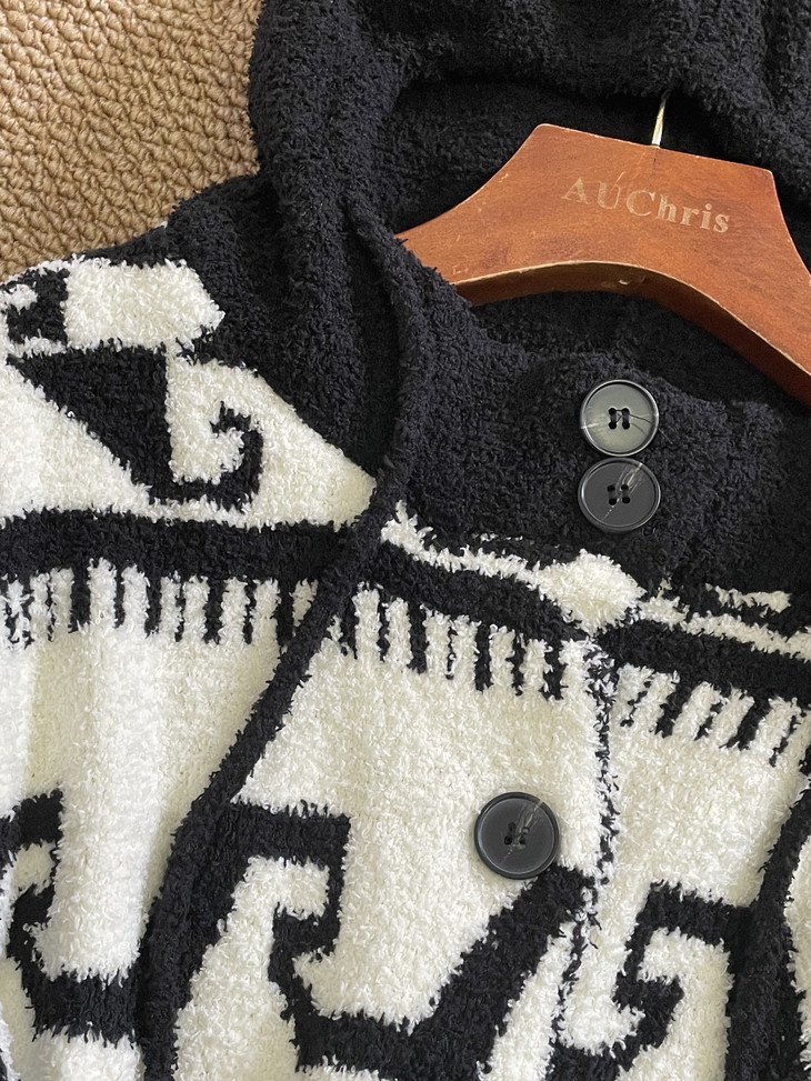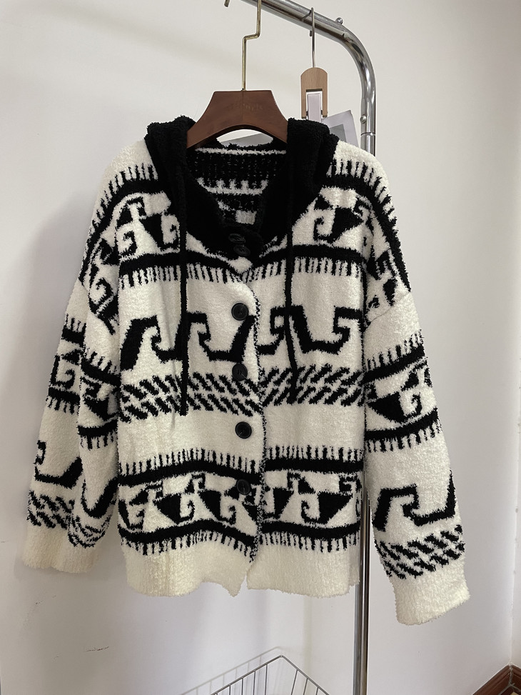 费尔岛印花宽松连帽软糯休闲外套-AUC111401