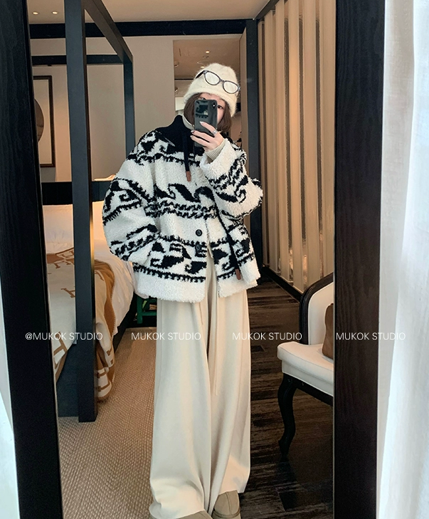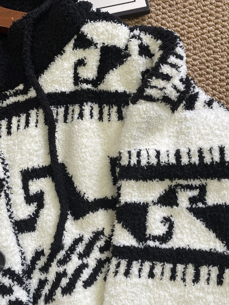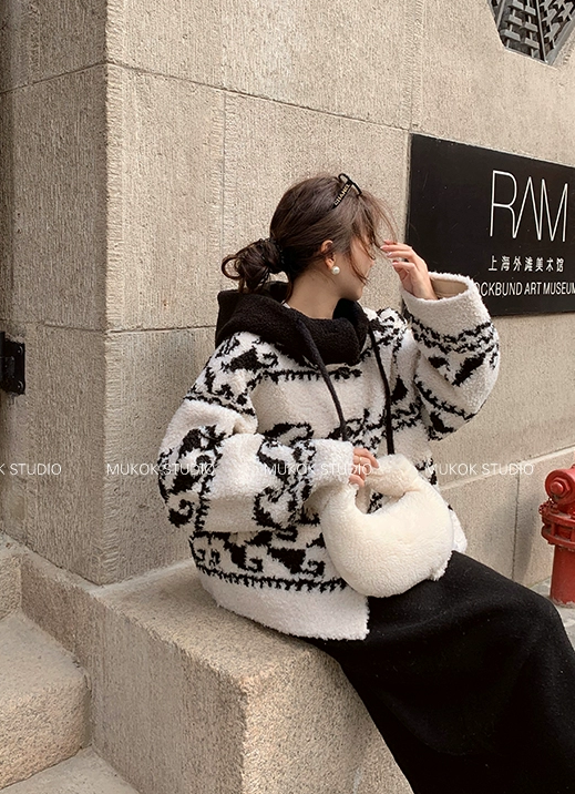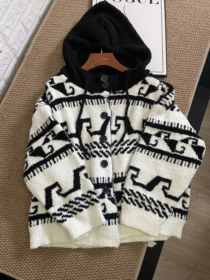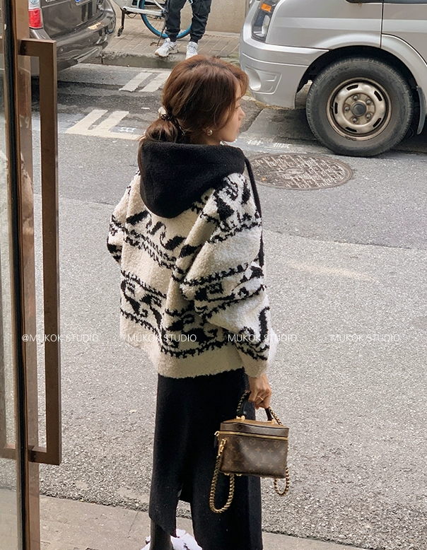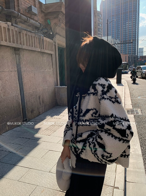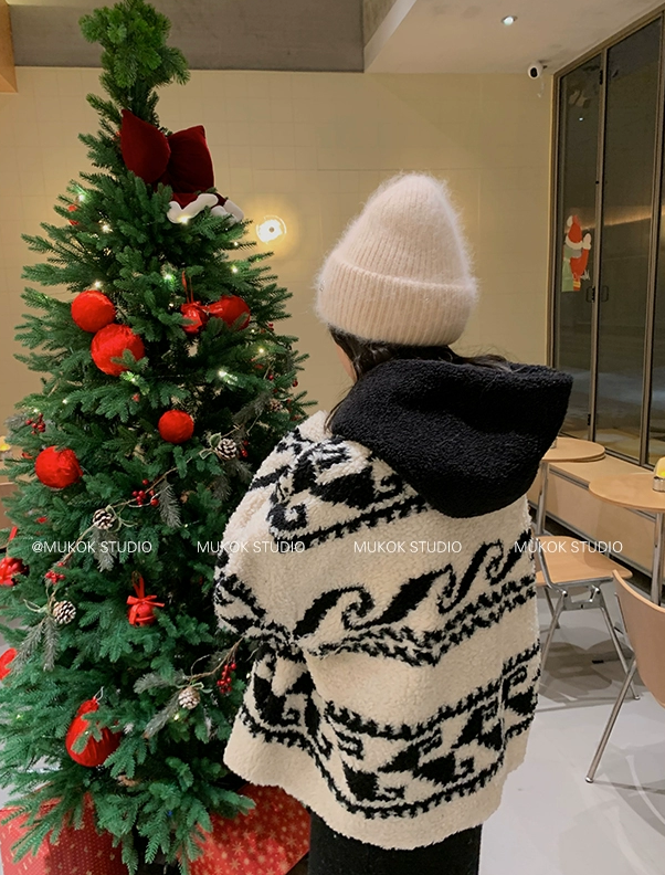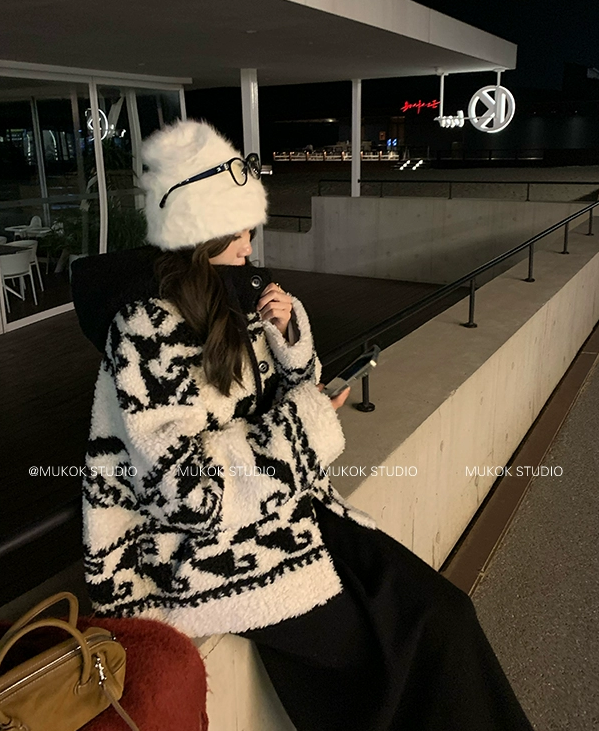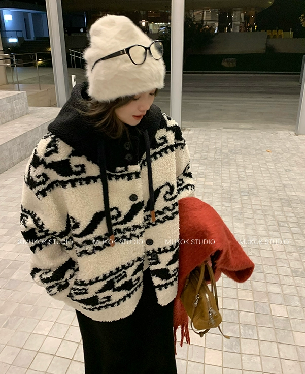 🔥小个子入冬锁死这件❗️入冬刚需~【费尔岛印花宽松连帽软糯休闲外套-AUC111401】,🔺保暖与设计感双在线~