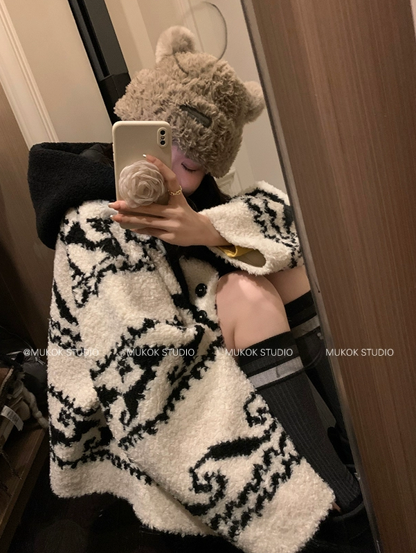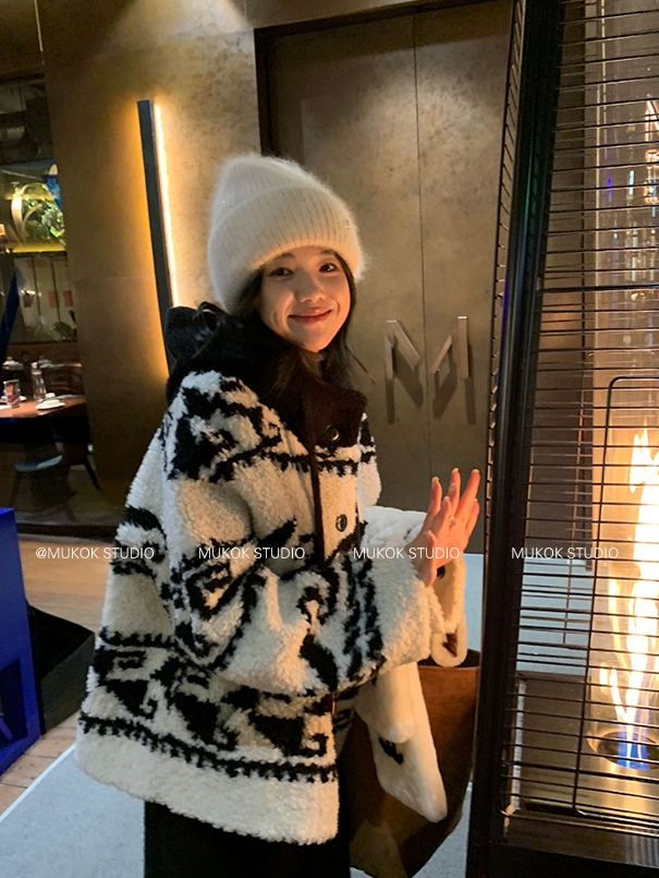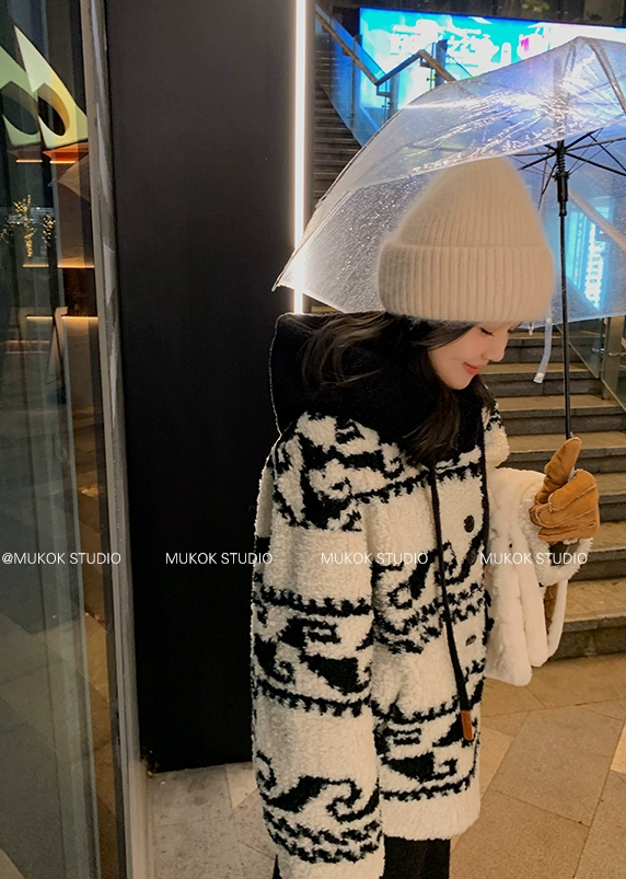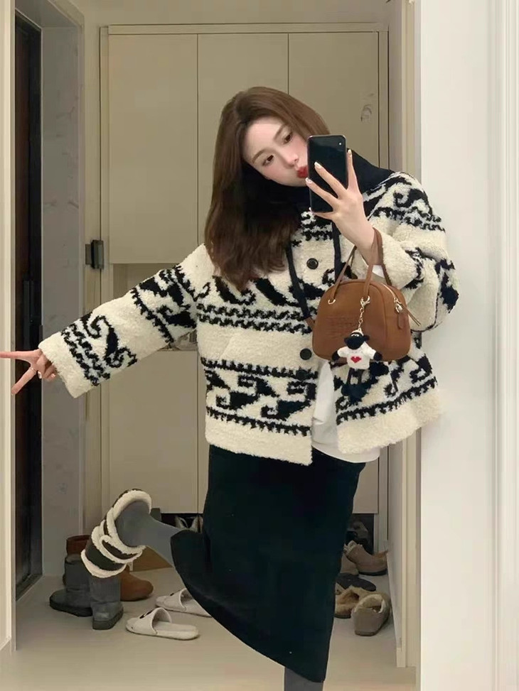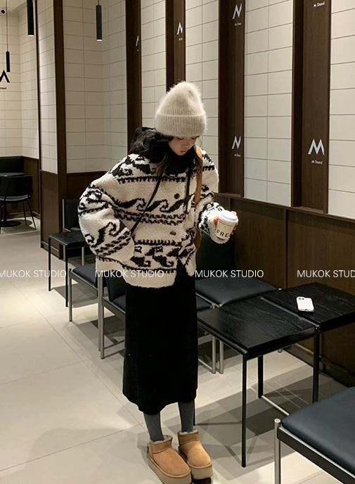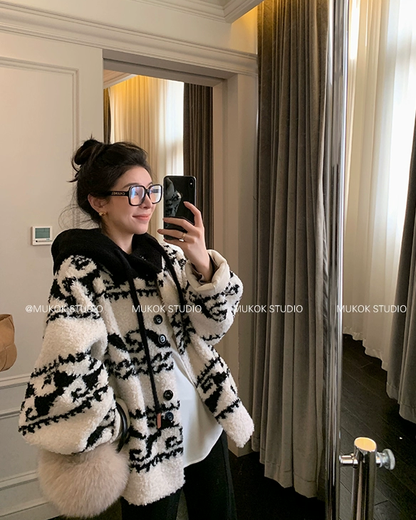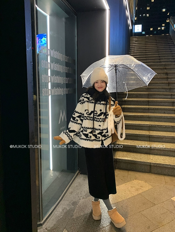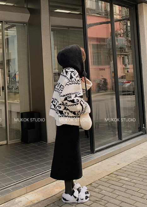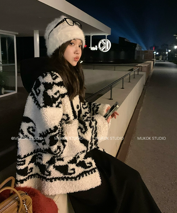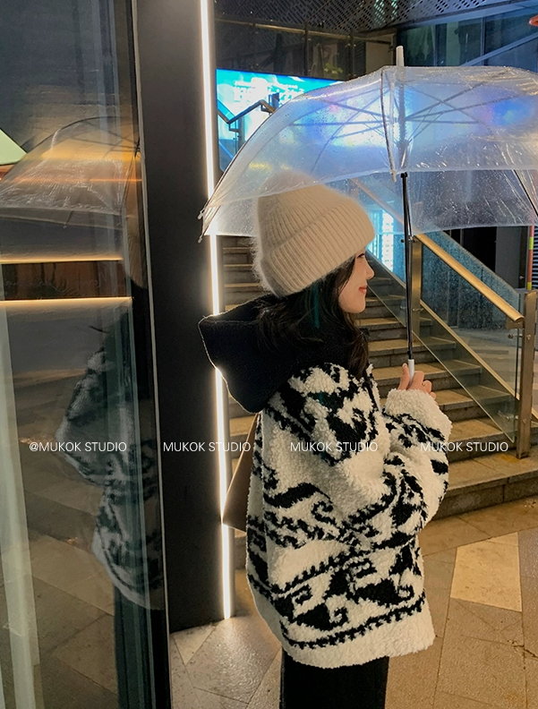 🔥小个子入冬锁死这件❗️入冬刚需~【费尔岛印花宽松连帽软糯休闲外套-AUC111401】,🔺保暖与设计感双在线~