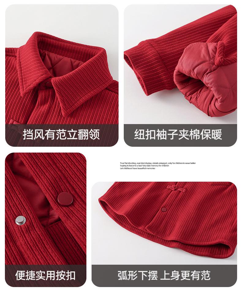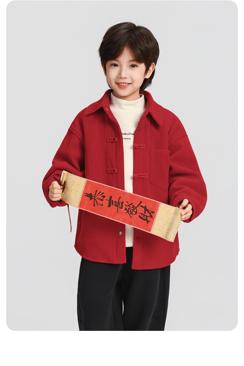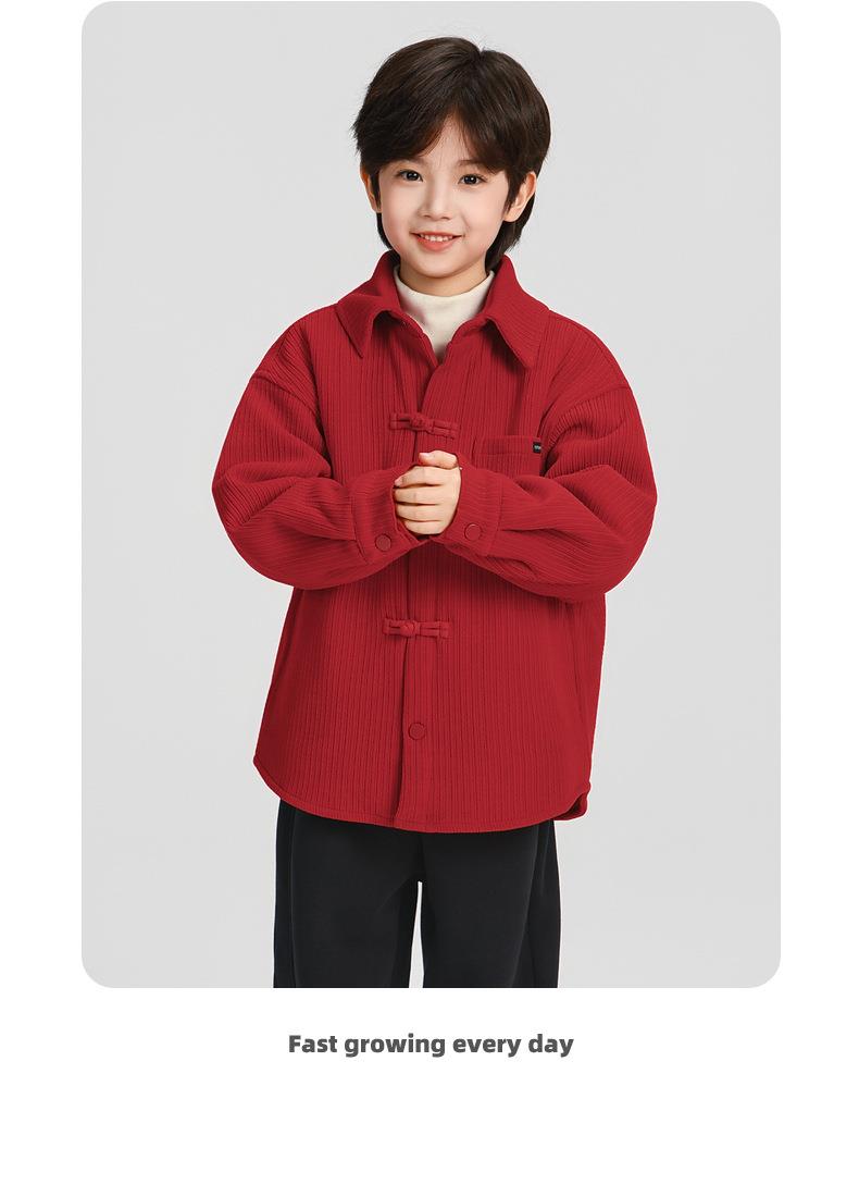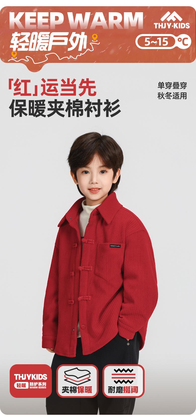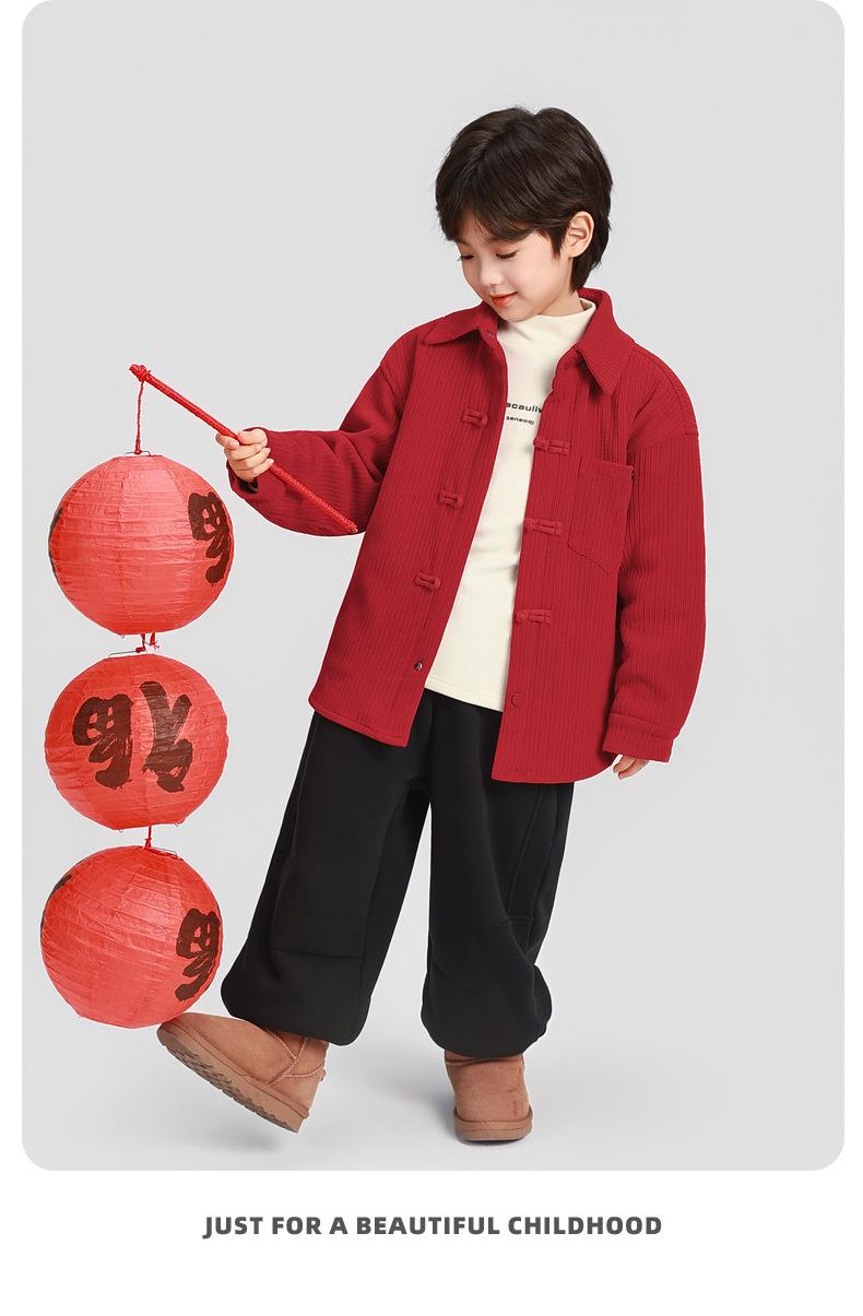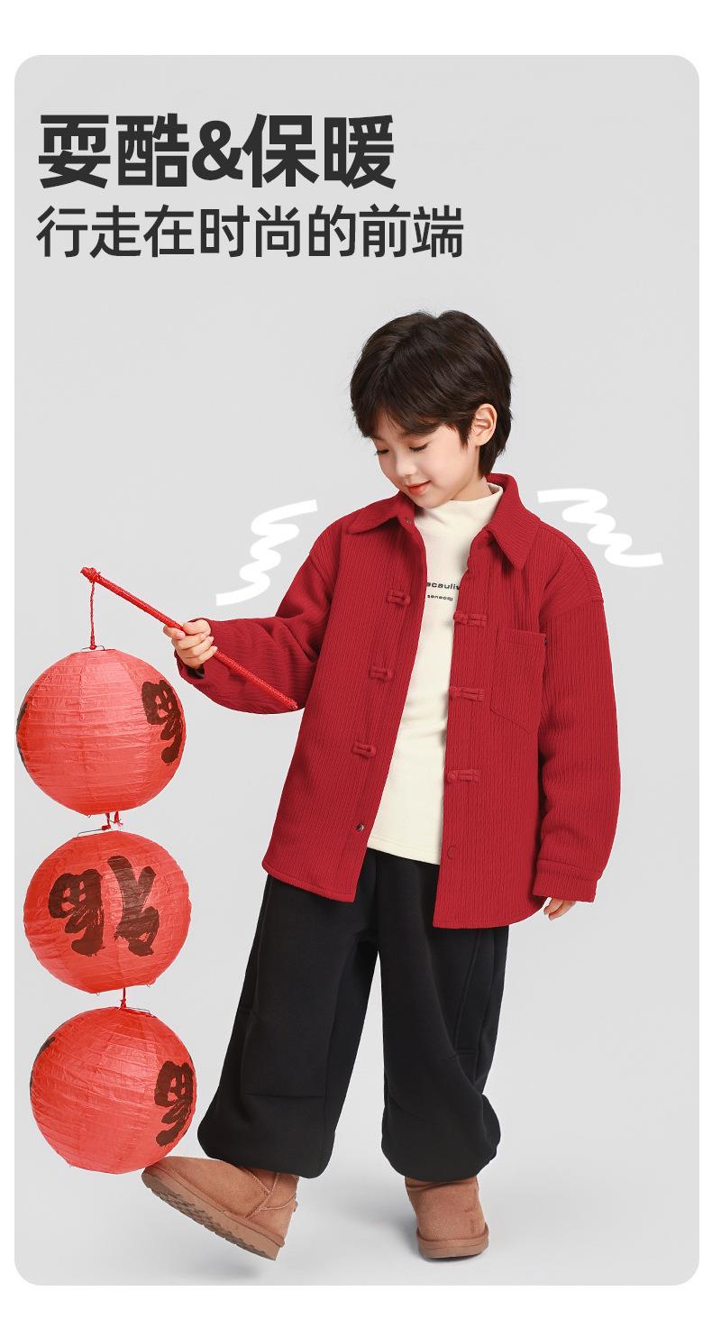 男童夹棉衬衫外套冬款2025冬装新款保暖加厚拜年服儿童男孩上衣
