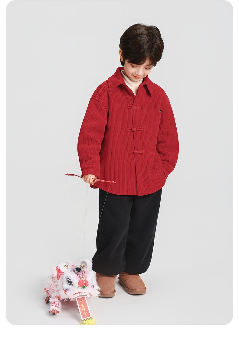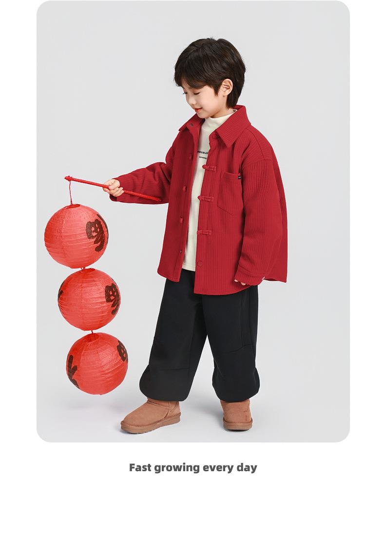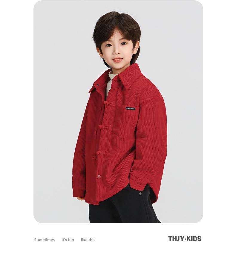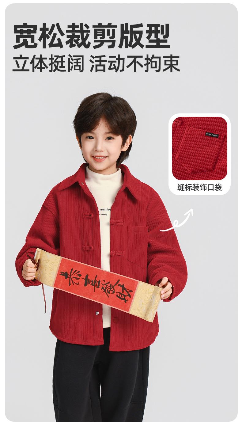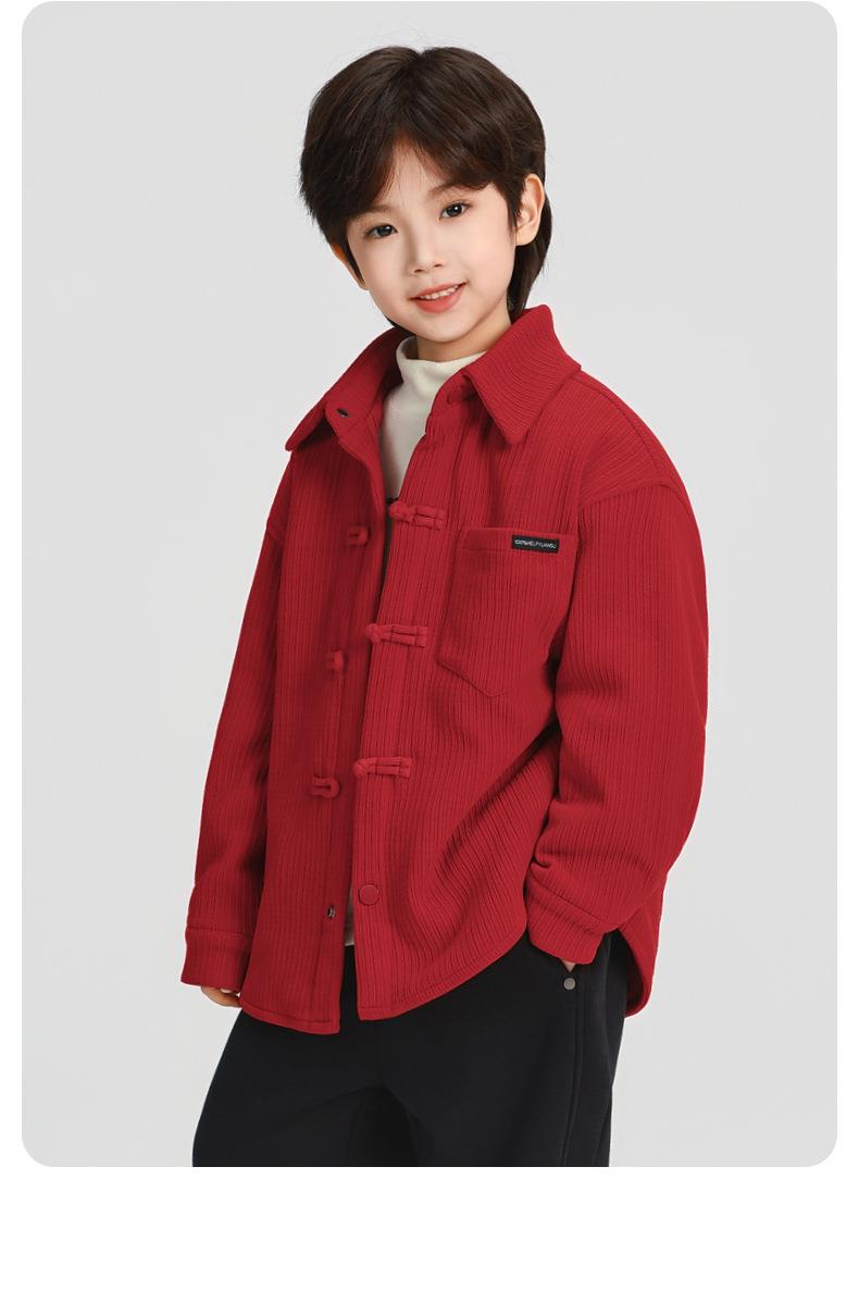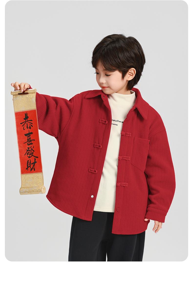 男童夹棉衬衫外套冬款2025冬装新款保暖加厚拜年服儿童男孩上衣
