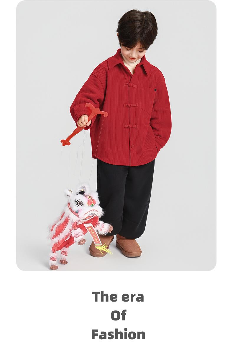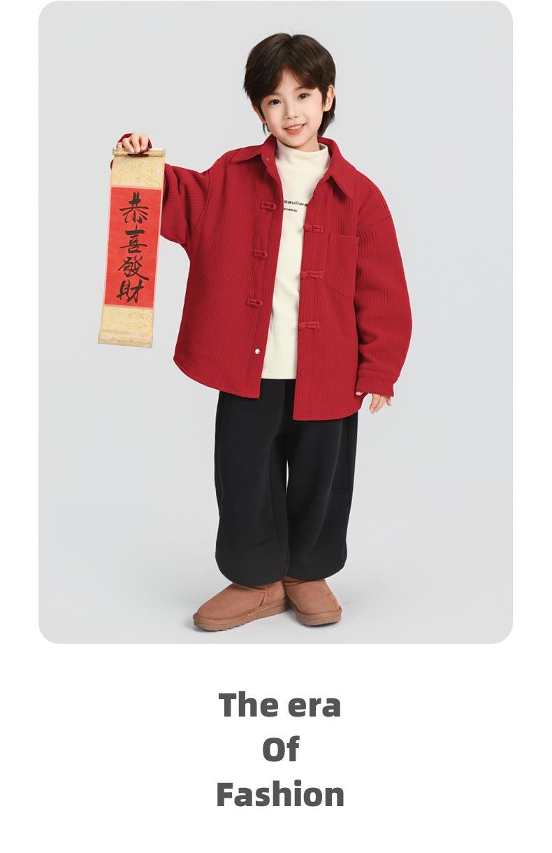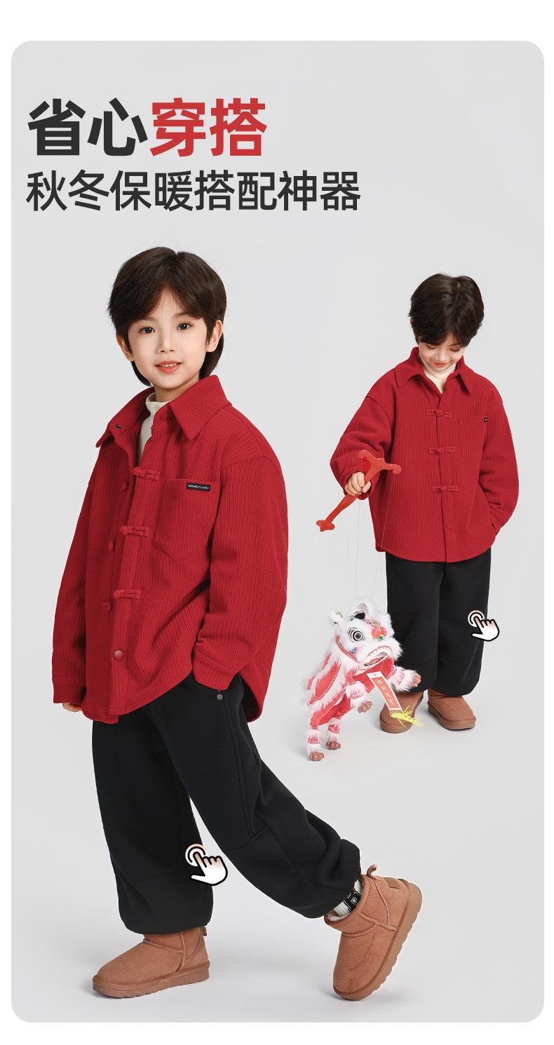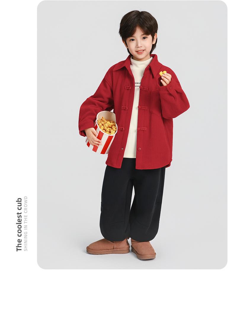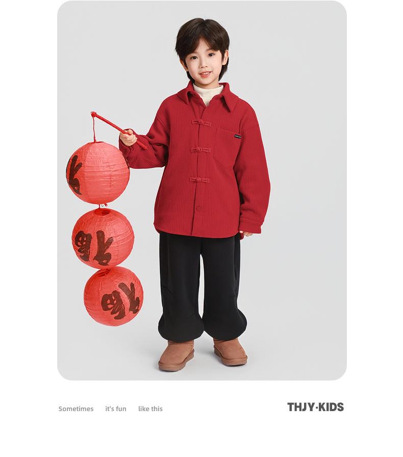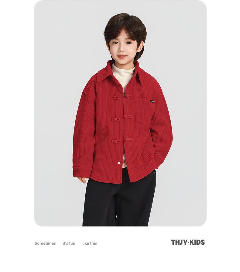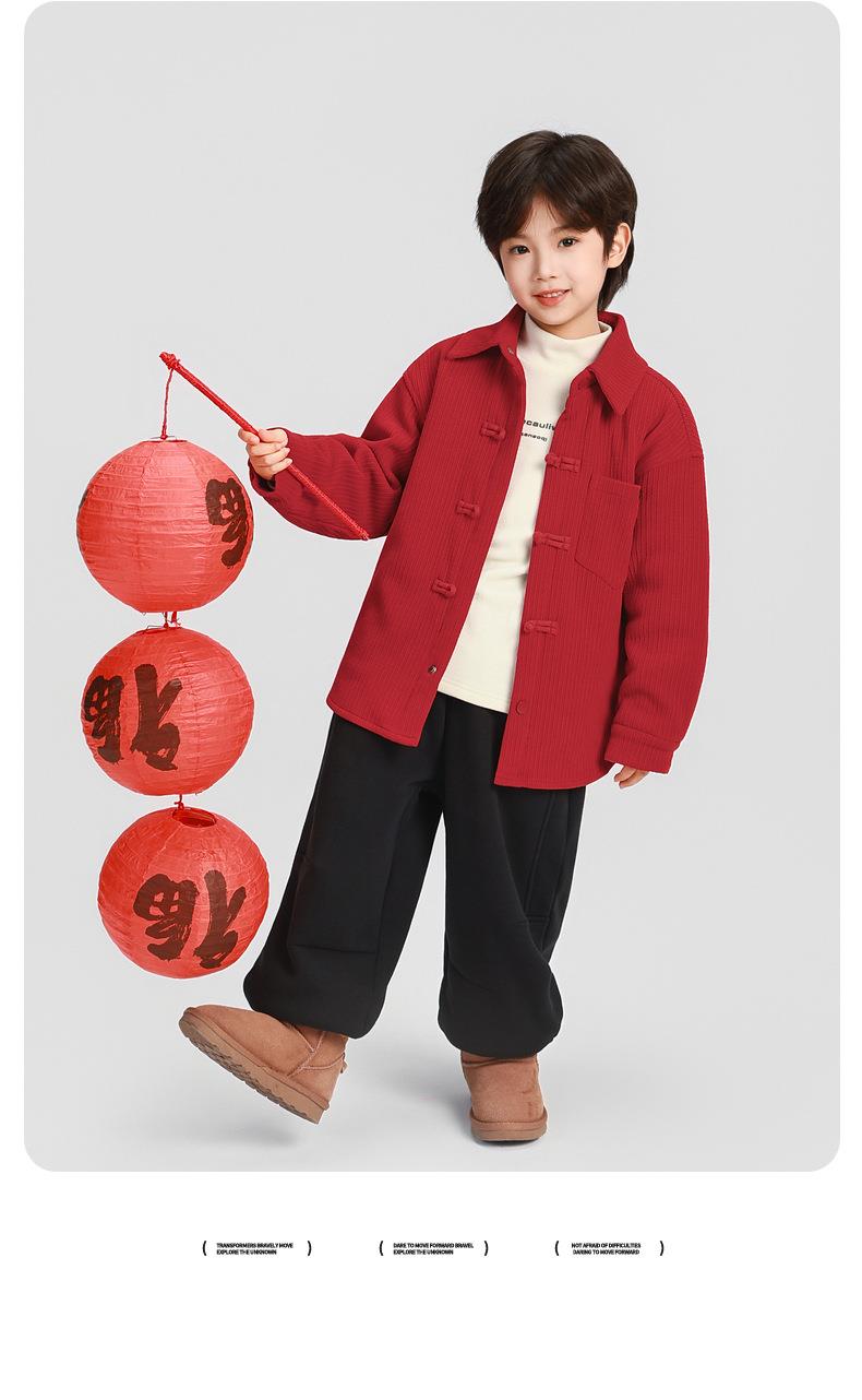 男童夹棉衬衫外套冬款2025冬装新款保暖加厚拜年服儿童男孩上衣