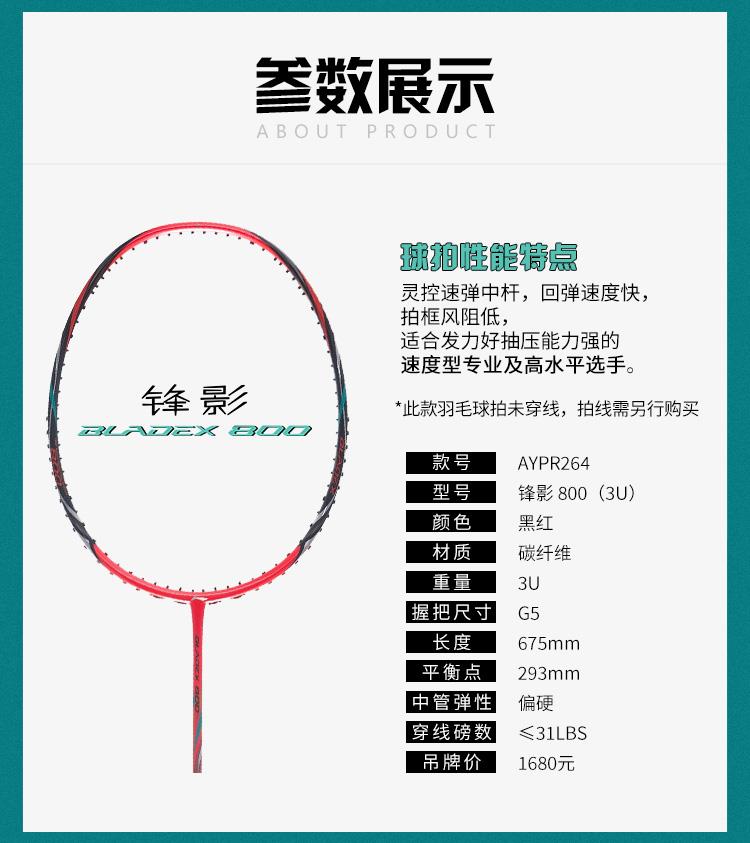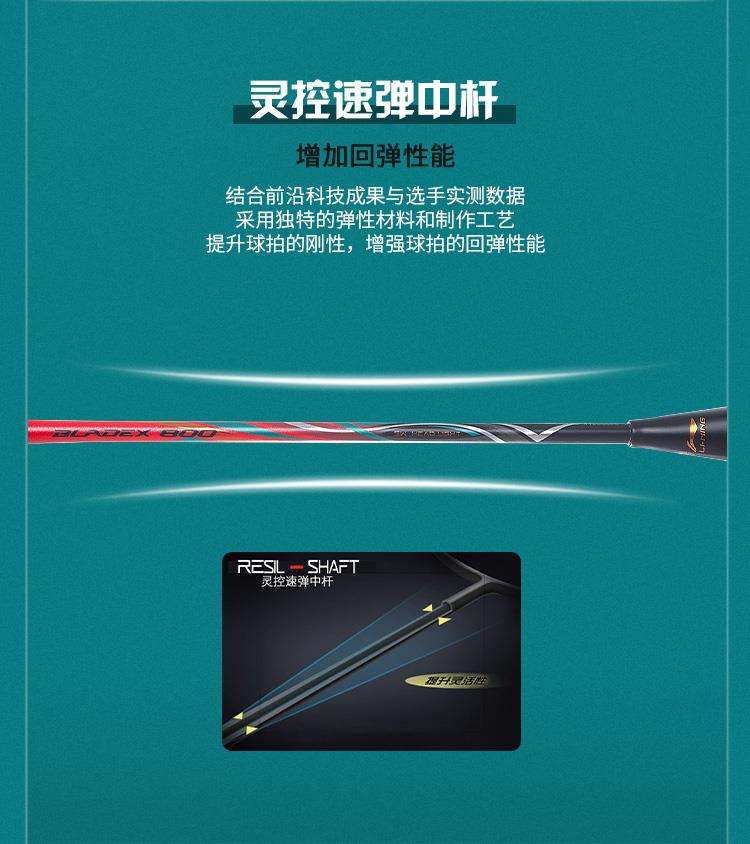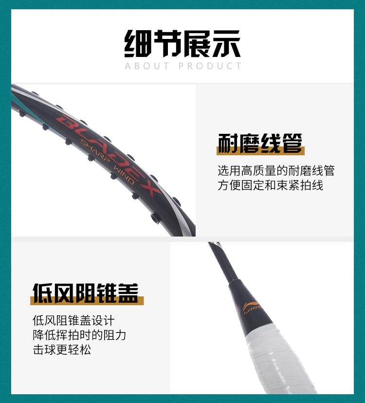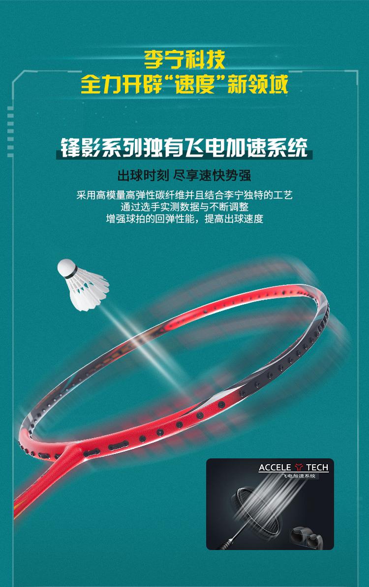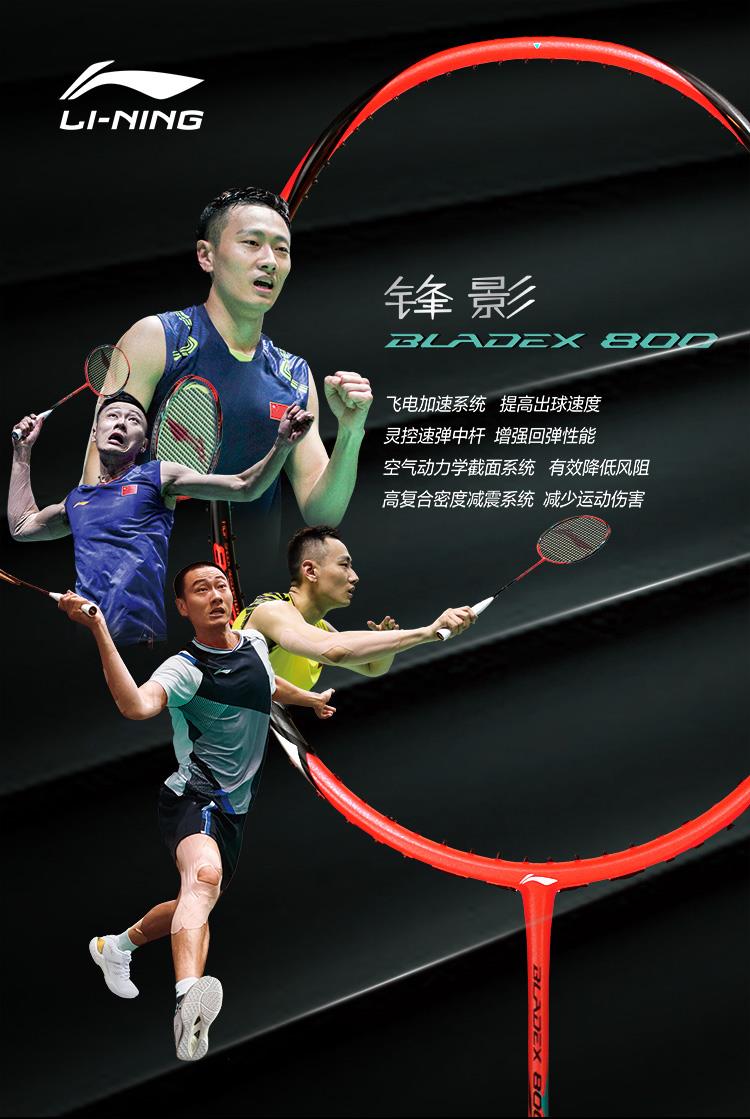 李宁Lining锋影800碳纤维羽毛球拍全面速度型低风阻回弹快单拍