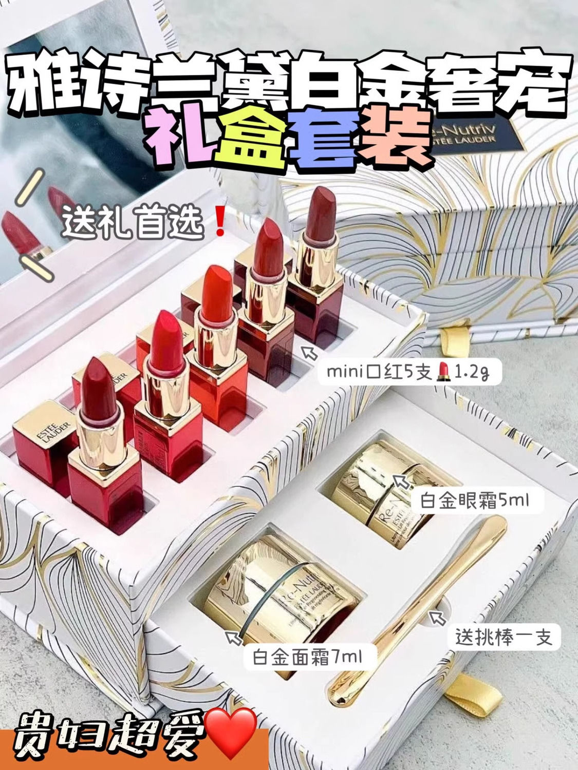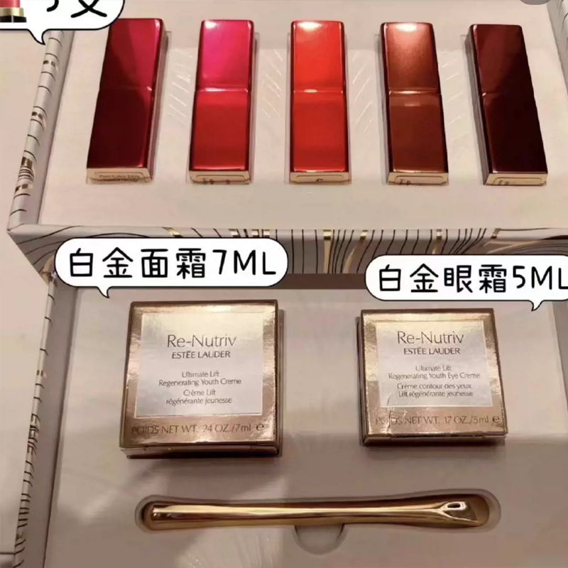 【爆款超低价预售 急单慎拍】雅诗兰黛 倾慕白金套装礼盒白金面霜5ml+眼霜7ml+挖勺+口红1.2gx5