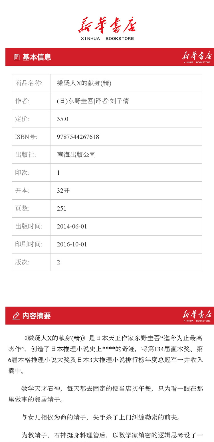 【新华书店旗舰店官网】正版 嫌疑人X的献身 继白夜行后东野圭吾新作 日本文学推理小说读物 侦探/悬疑/推理丛书