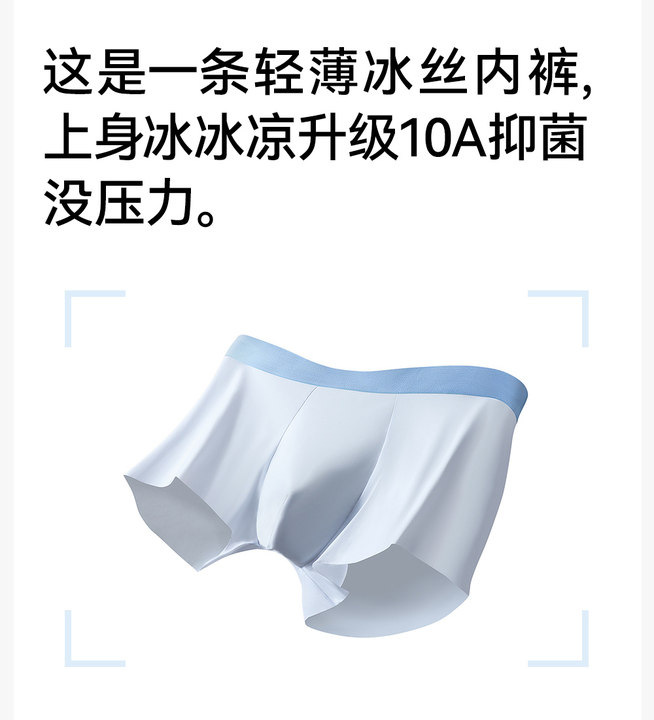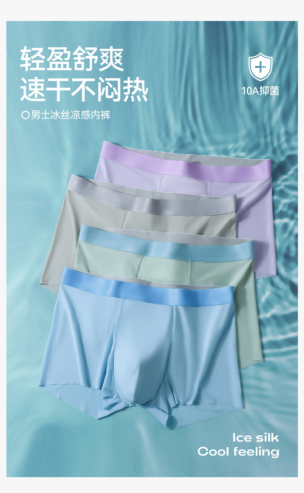 【49元4条】男士超薄冰丝内裤 10a抑菌裆轻薄透气无痕冰丝内裤