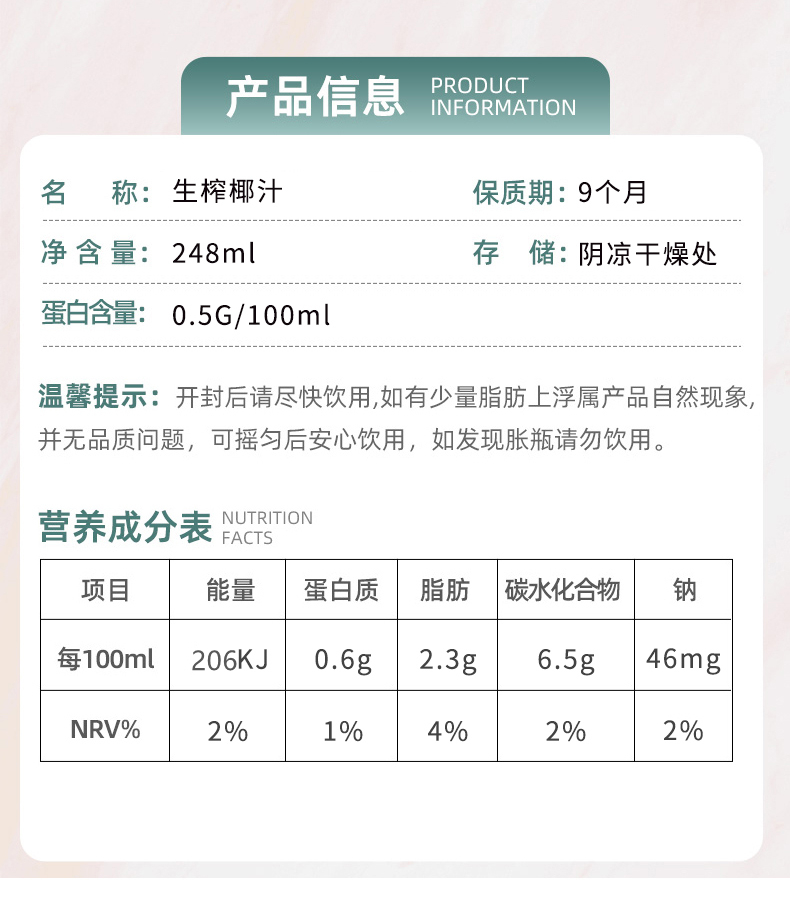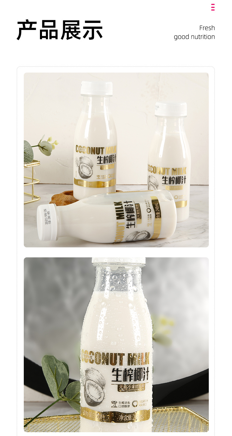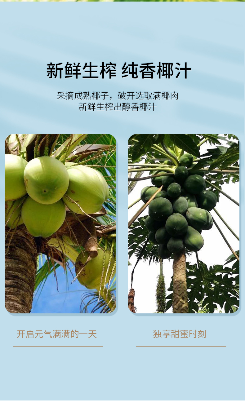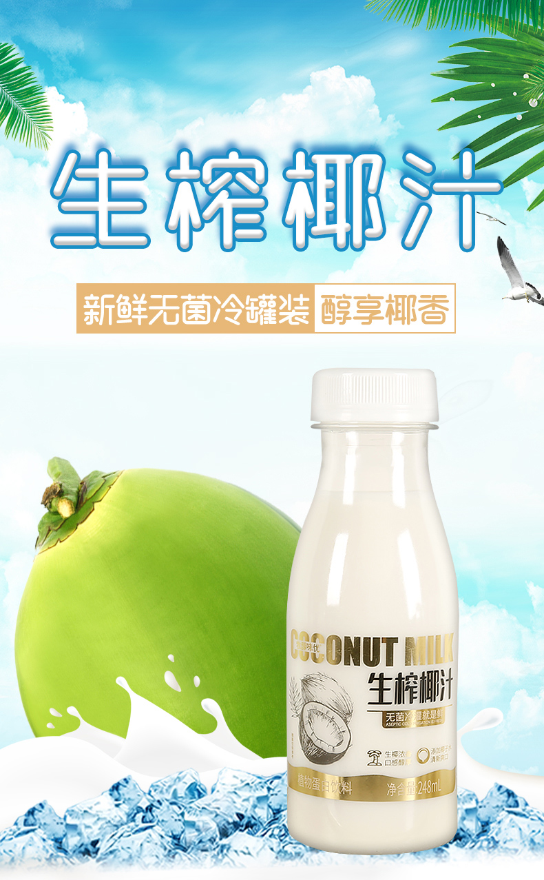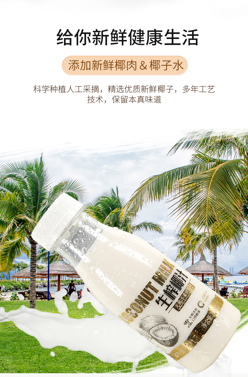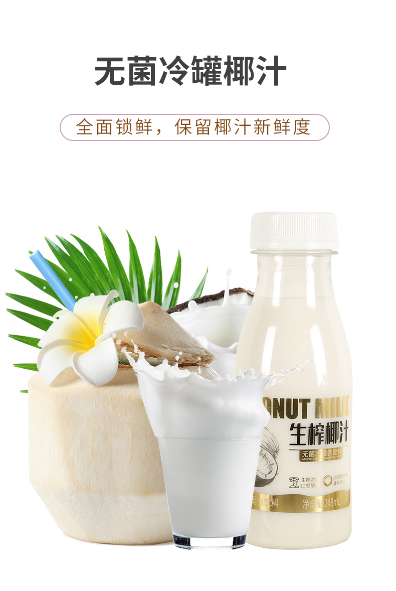 2、采用新鲜无菌冷罐包装,保存醇纯椰香,口感比普通罐装更佳。