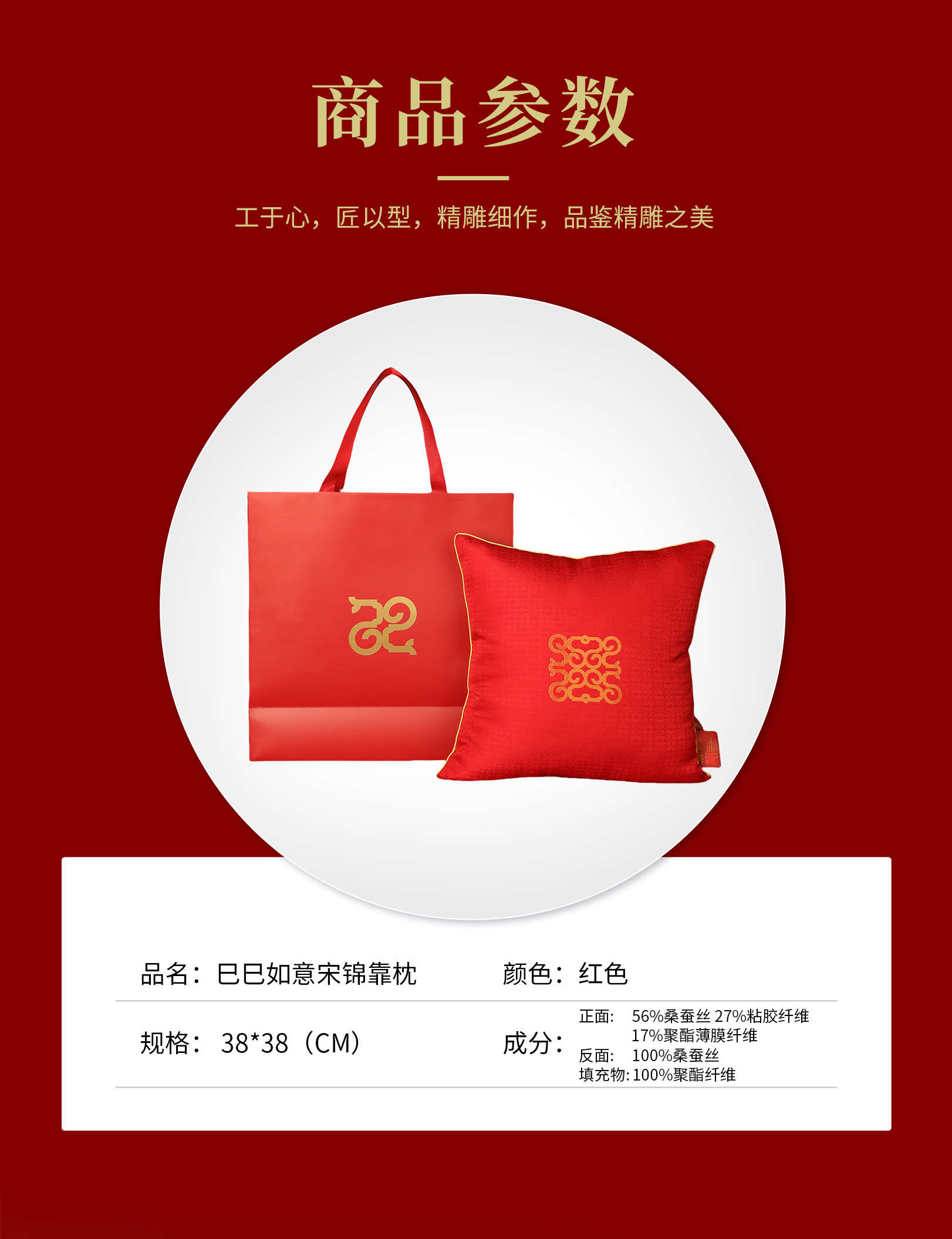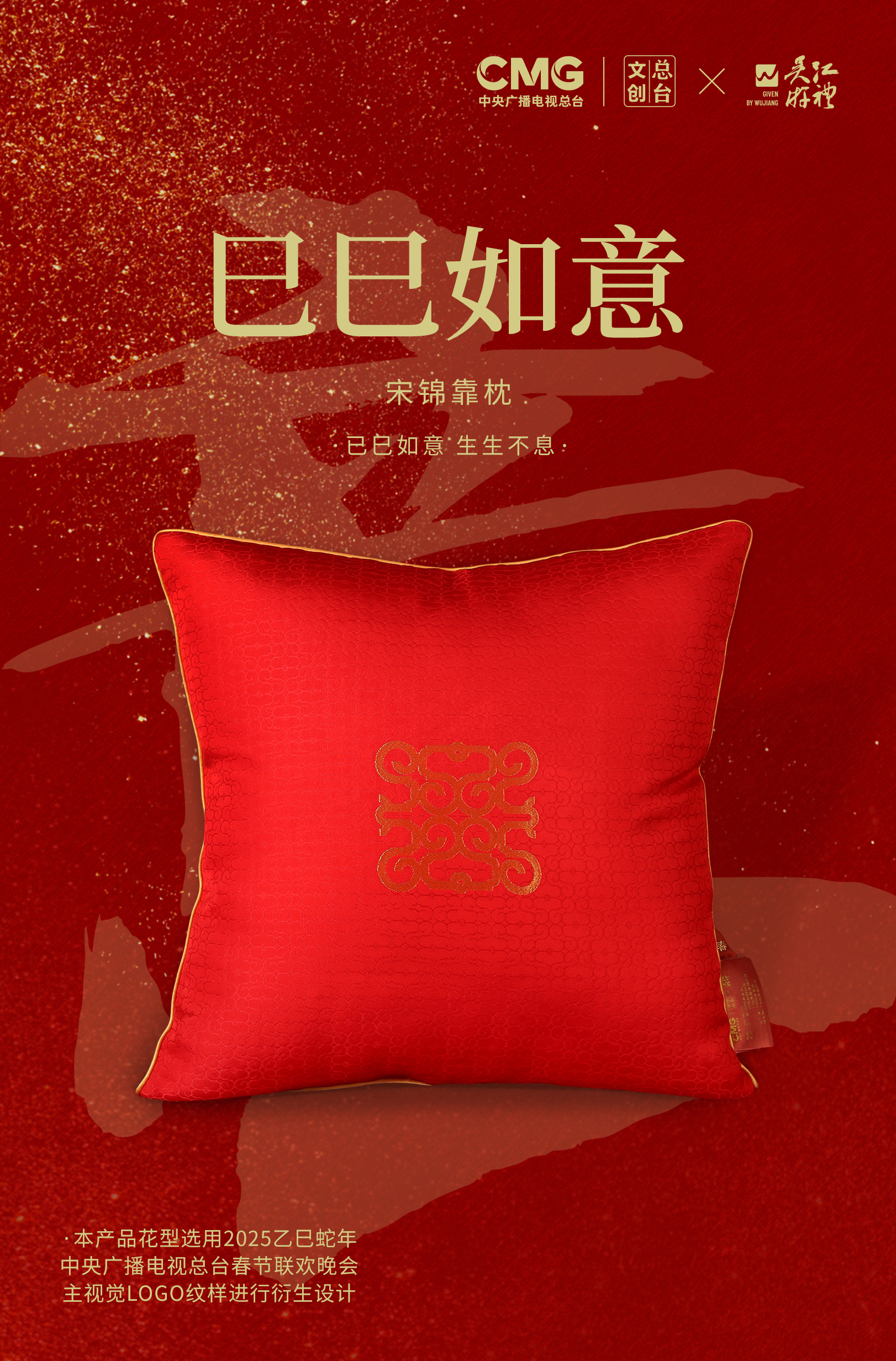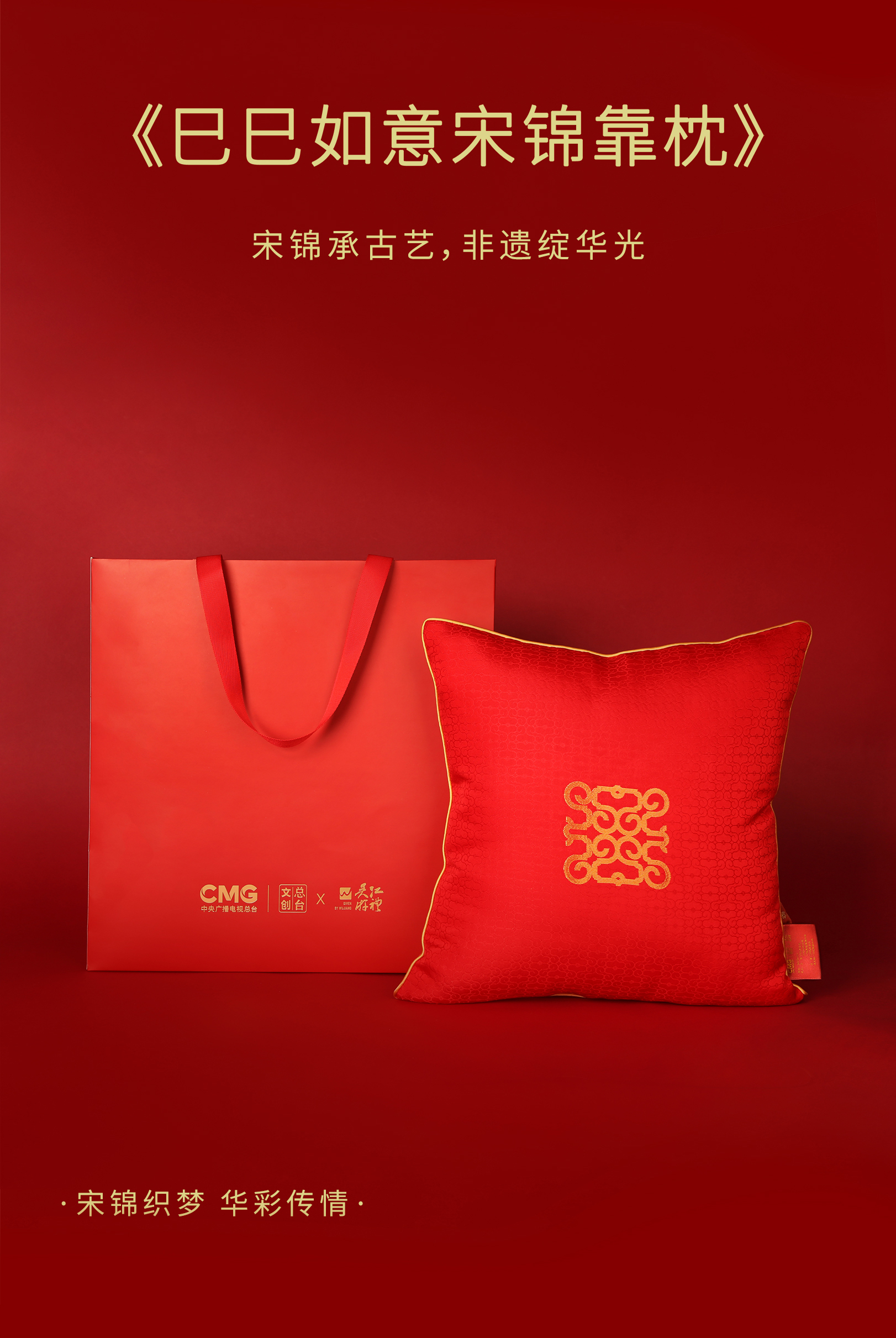 总台文创蛇年巳巳如意宋锦靠枕 新年礼物客厅沙发结婚喜庆抱枕