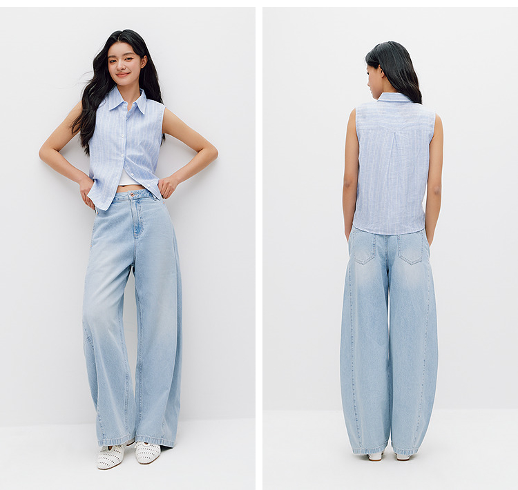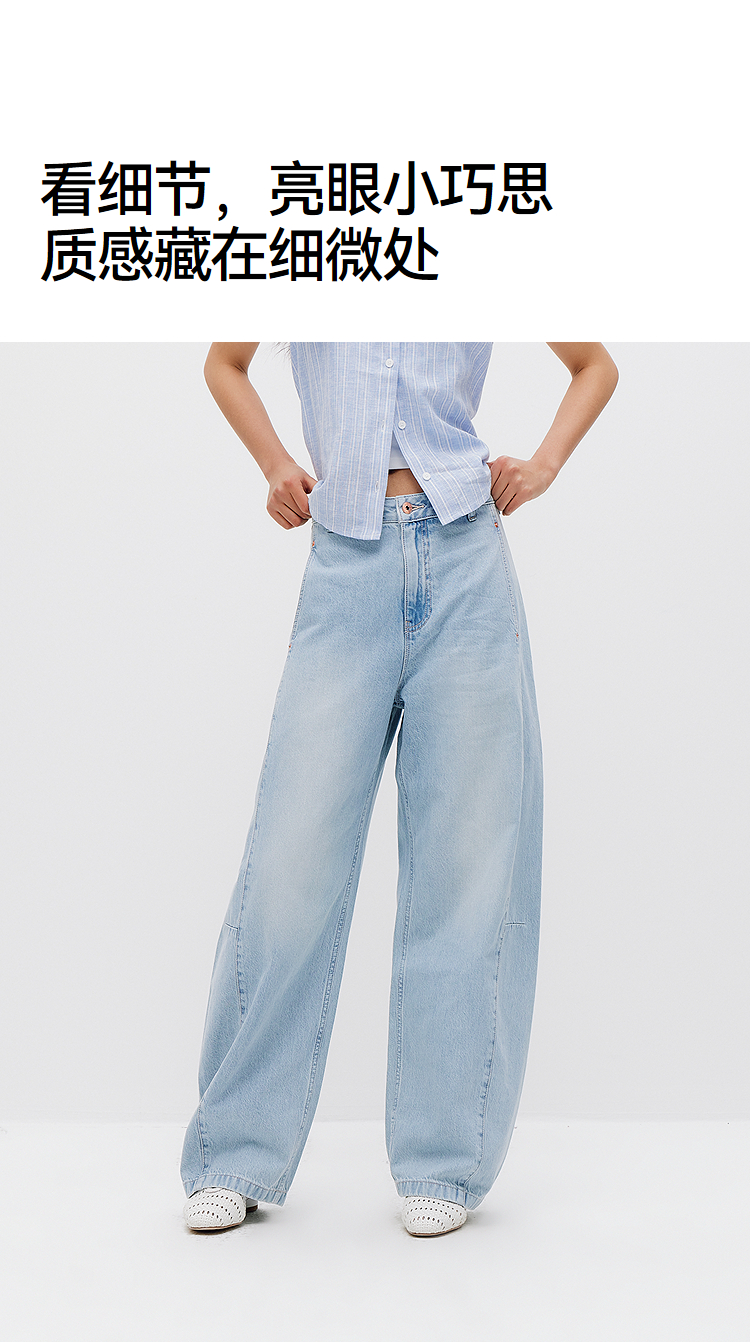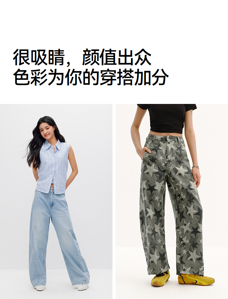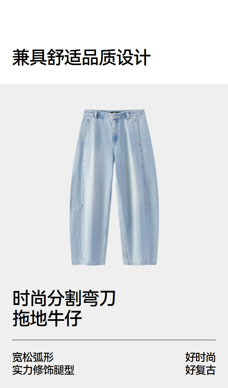 商场同款|森马牛仔裤女夏宽松拖地裤凉感2026新款时尚复古弯刀裤