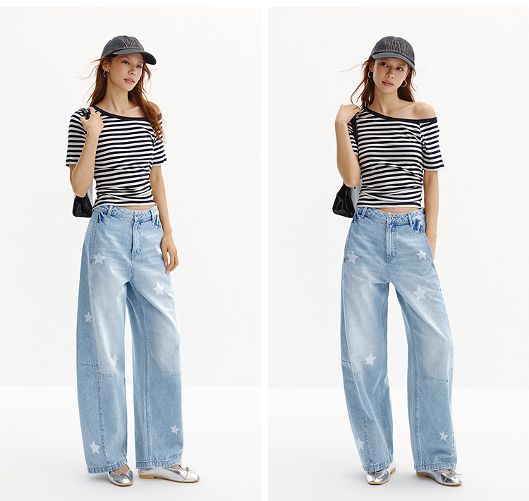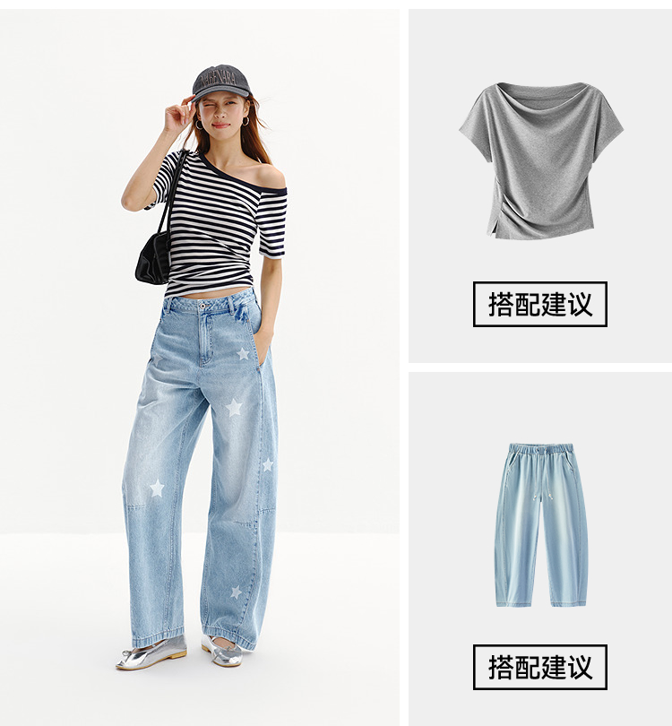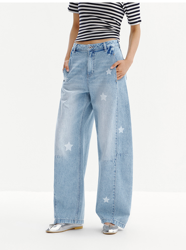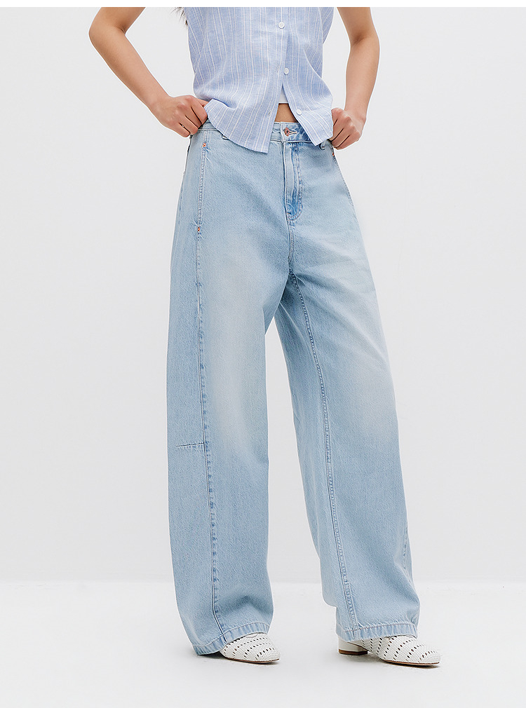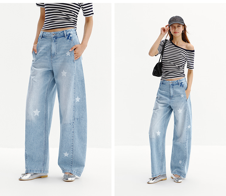 商场同款|森马牛仔裤女夏宽松拖地裤凉感2026新款时尚复古弯刀裤