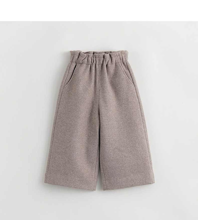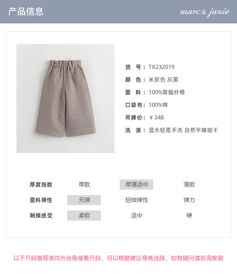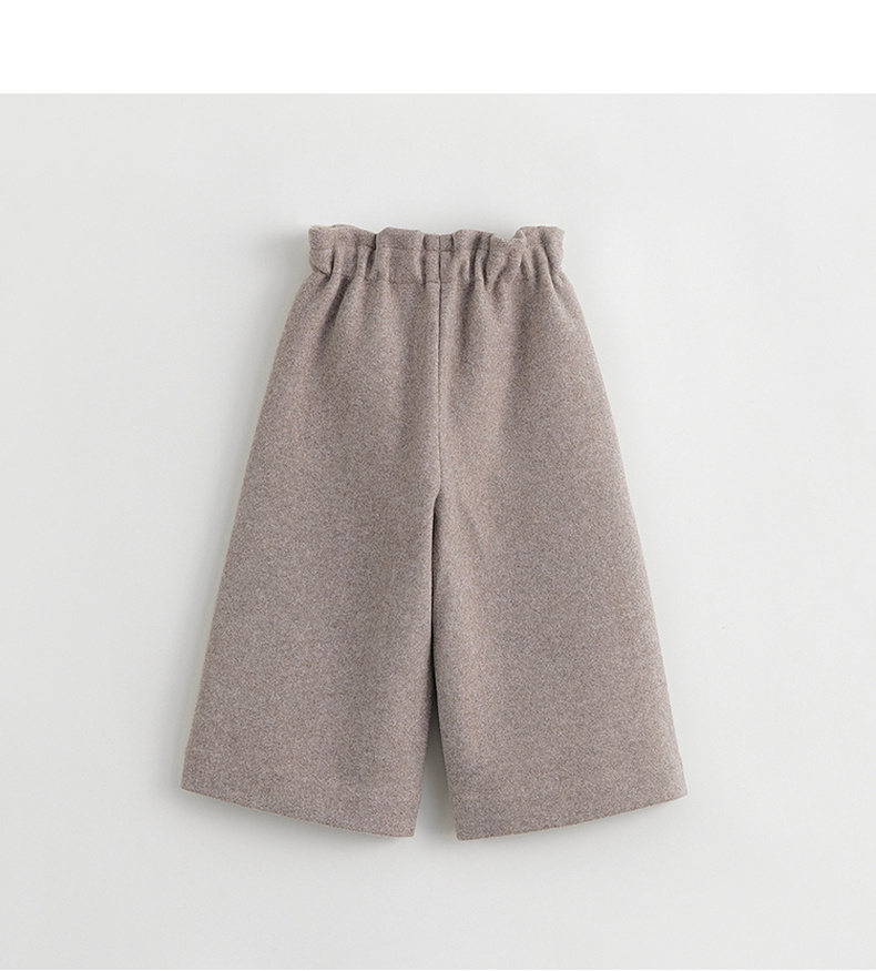 马克珍妮秋冬新款女童时尚花边腰毛呢阔腿裤儿童裤子232019