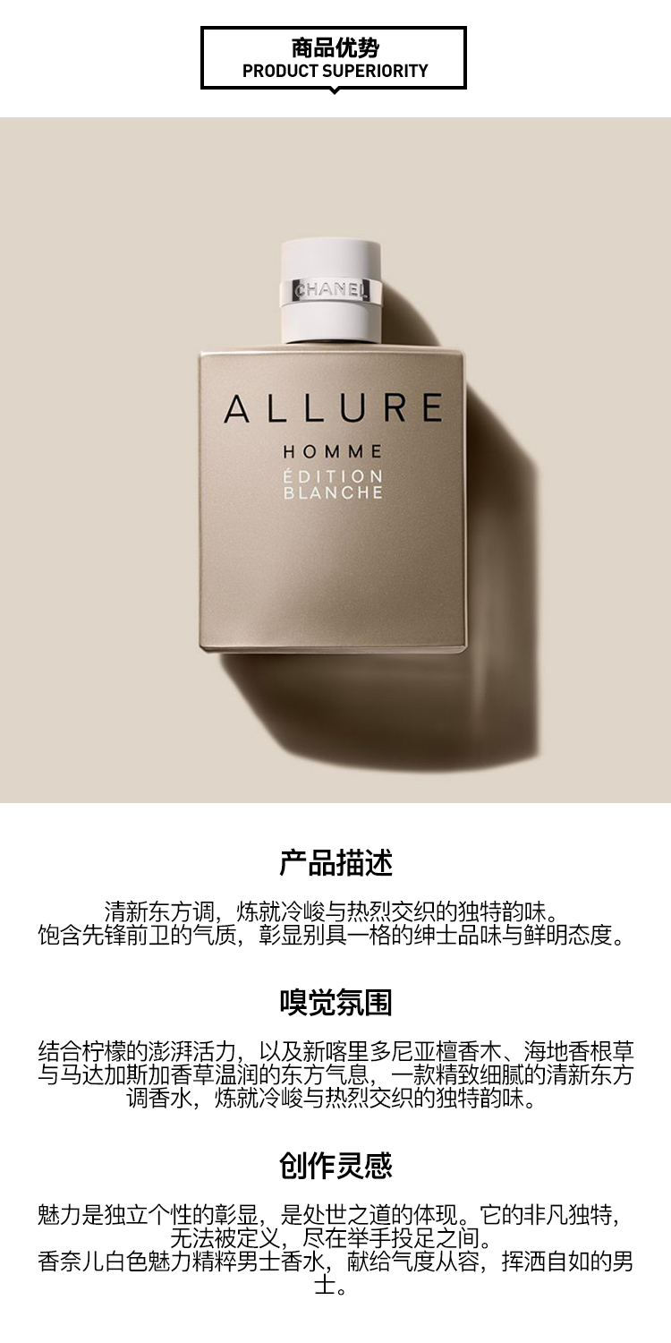 1LPY Chanel香奈儿白色魅力精粹男士浓香水EDP 50ML