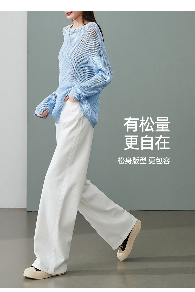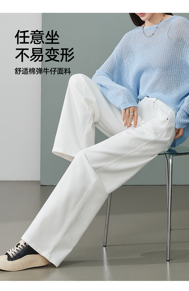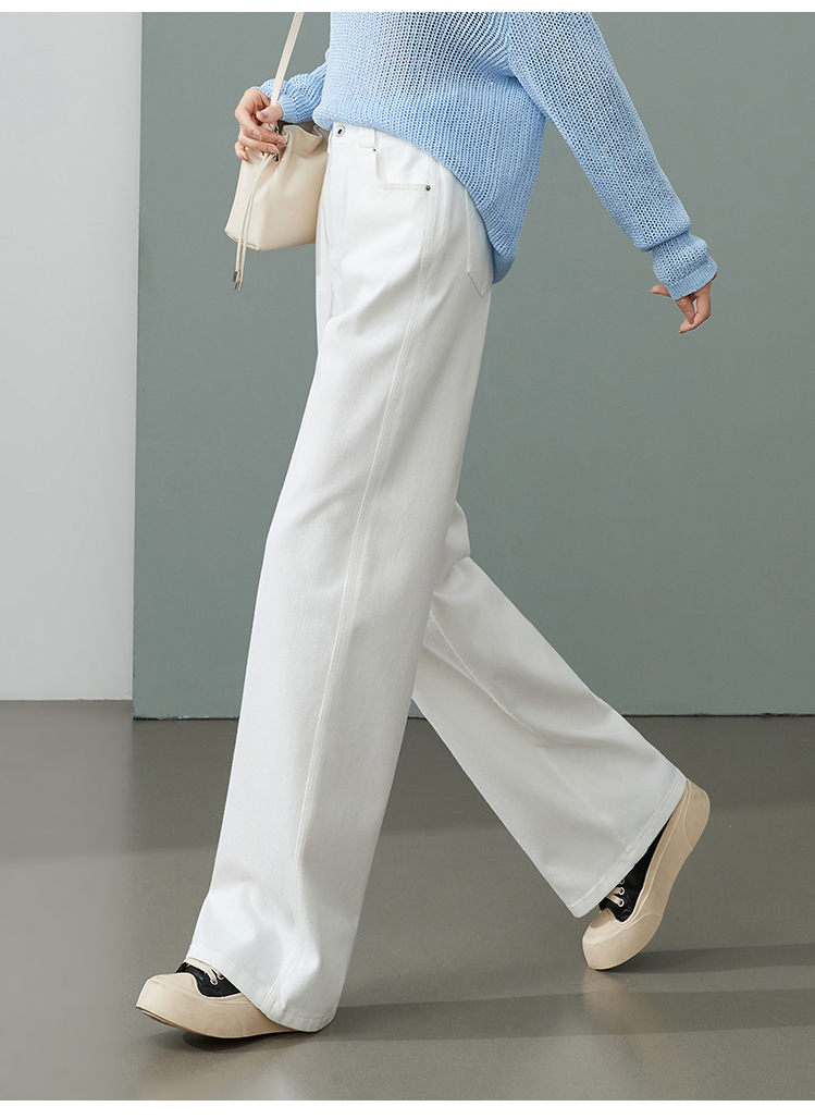 【春新品!软垂-天丝棉牛仔】逸阳慵懒风时尚双裤耳斜纹牛仔阔腿长裤0875V