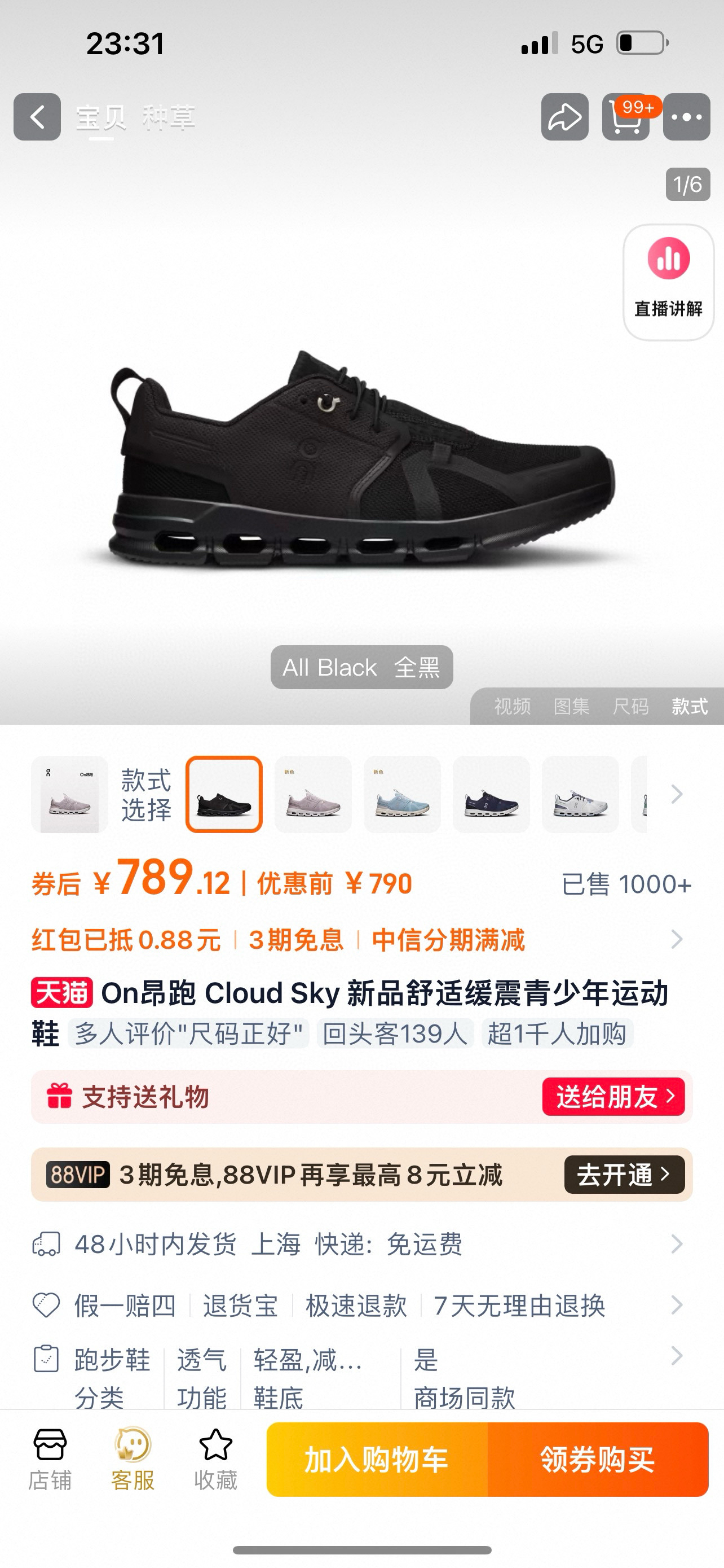 On昂跑 Cloud Sky 新品舒适缓震青少年运动鞋这是一双专业运动童鞋,可以让宝宝们尽情享受运动了!!!也作为On童鞋销量榜首的鞋款,官网售价,我们全部出口正规订单;直接专柜试穿购买!!作为符合儿童的使用习惯和身体发育特点,又具有专业的功能性,可以让孩子们在运动时更加安全、舒适、自信,更能穿出洋气高级感的童鞋,给宝宝们的开学礼物 走起来!!