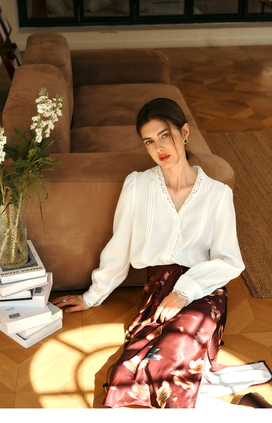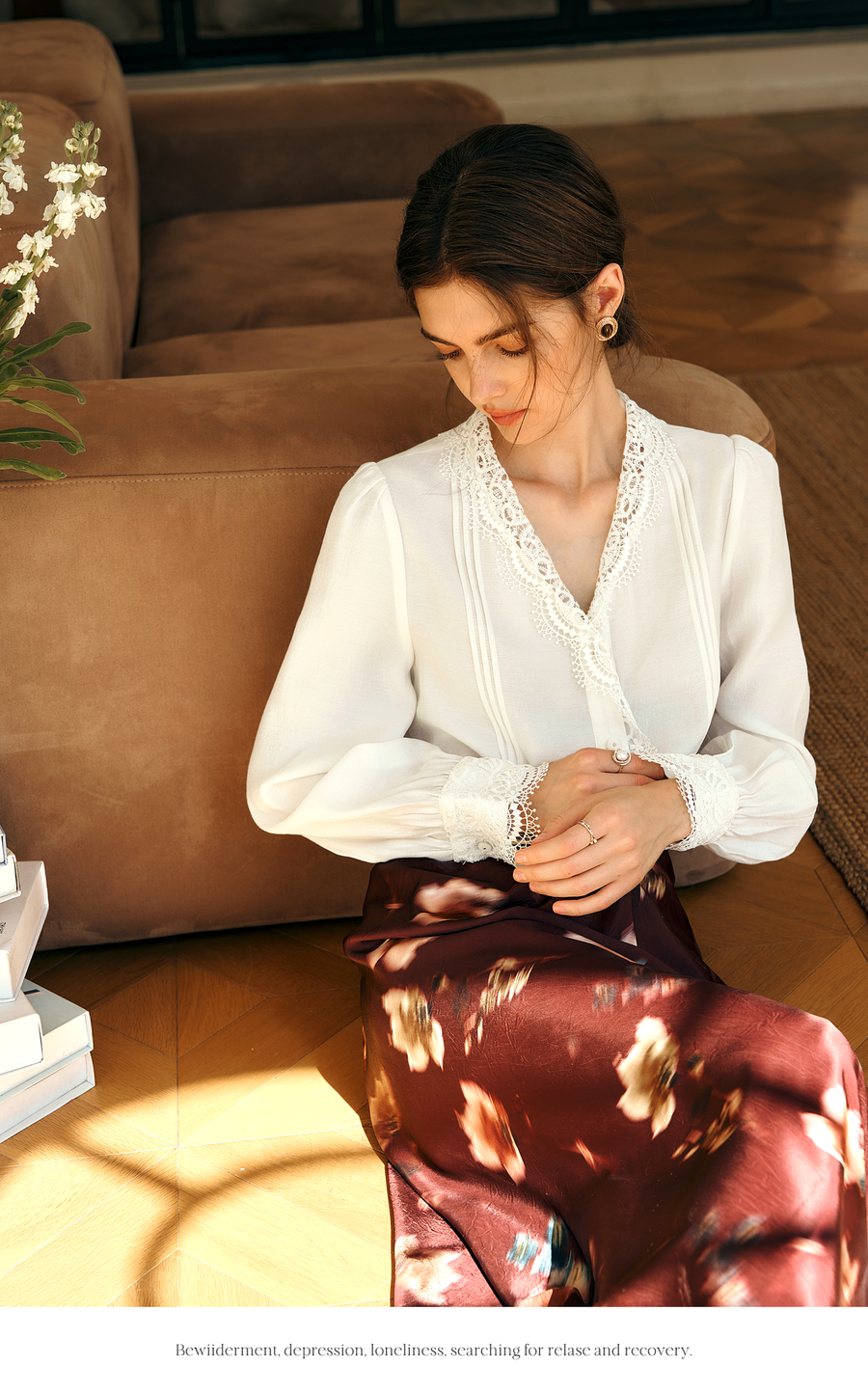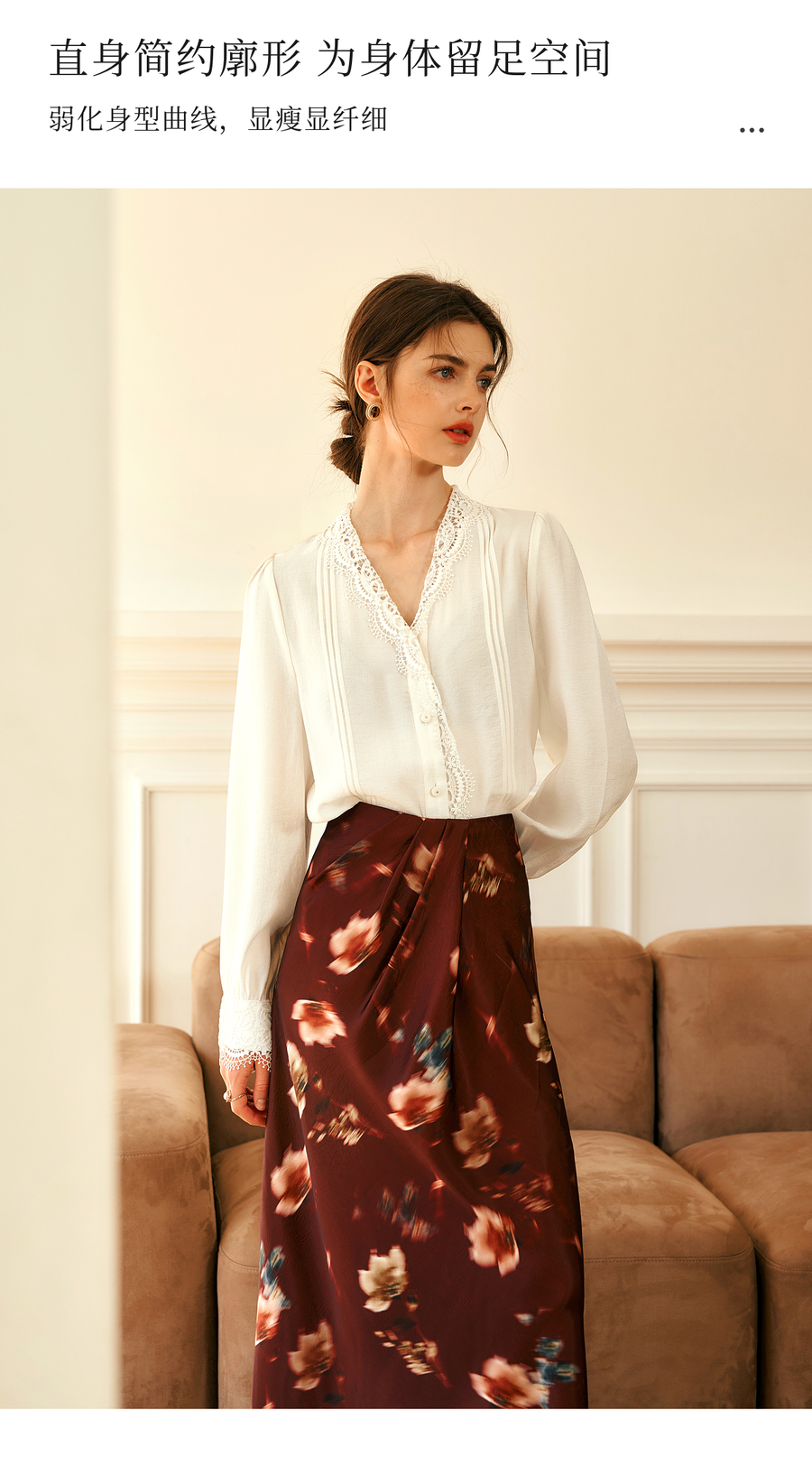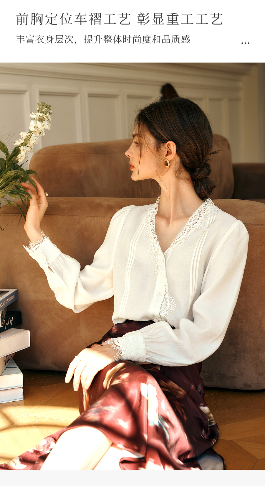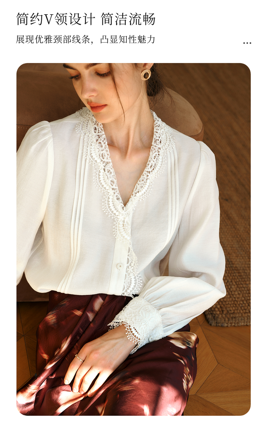 OLrain欧芮儿法式v领衬衫女春季2025年新款气质荷叶边蕾丝边上衣