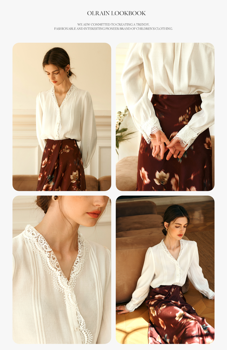 - “精致”是欧芮儿olrain品牌文化的核心,欧芮儿认为,精致的女人,不但要外在动人,更要内在迷人,内外兼修,有魅力、有气质、有内涵,自信而不自傲,优雅而不矫揉,自有万种风情而不轻浮,更不故作矜持。