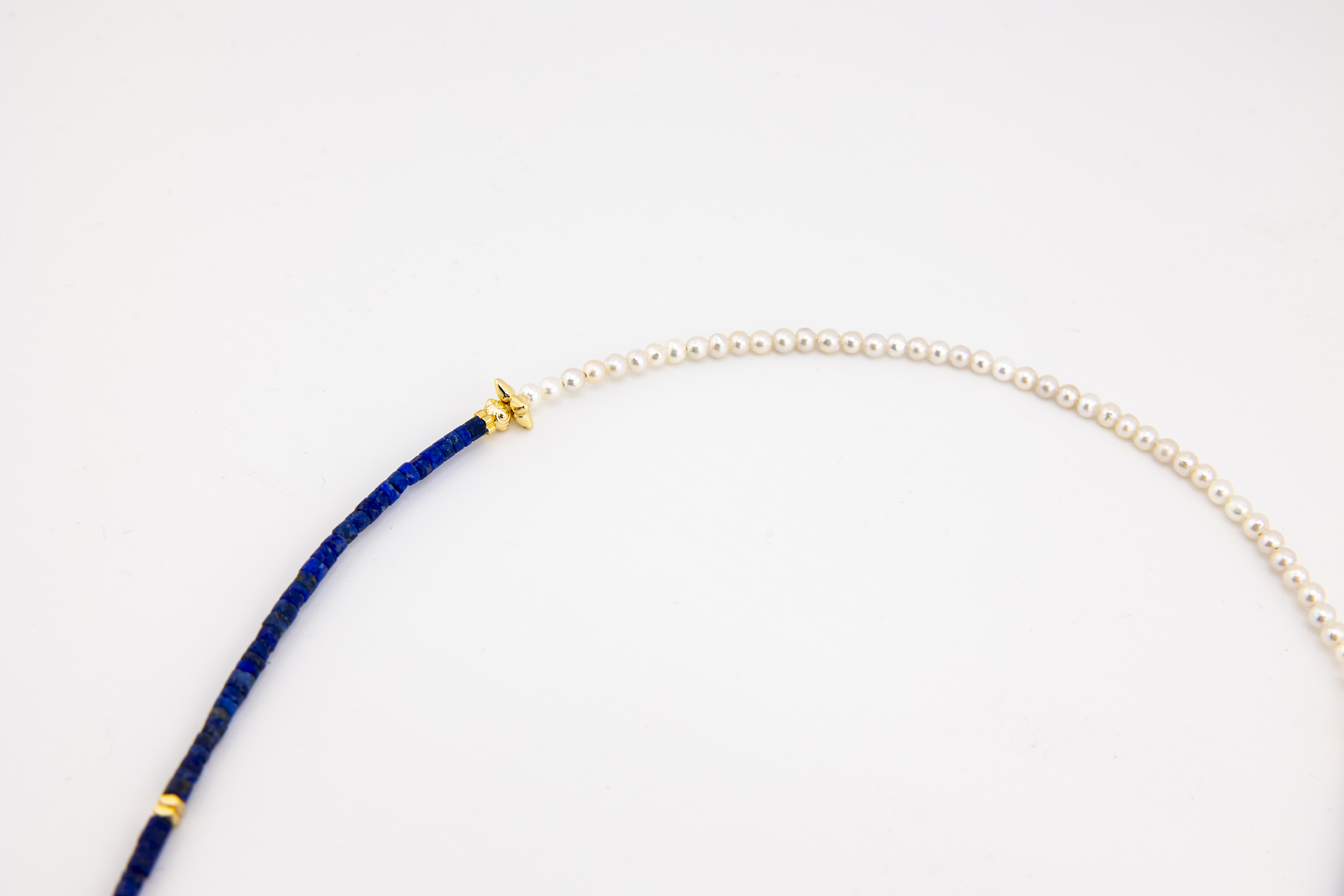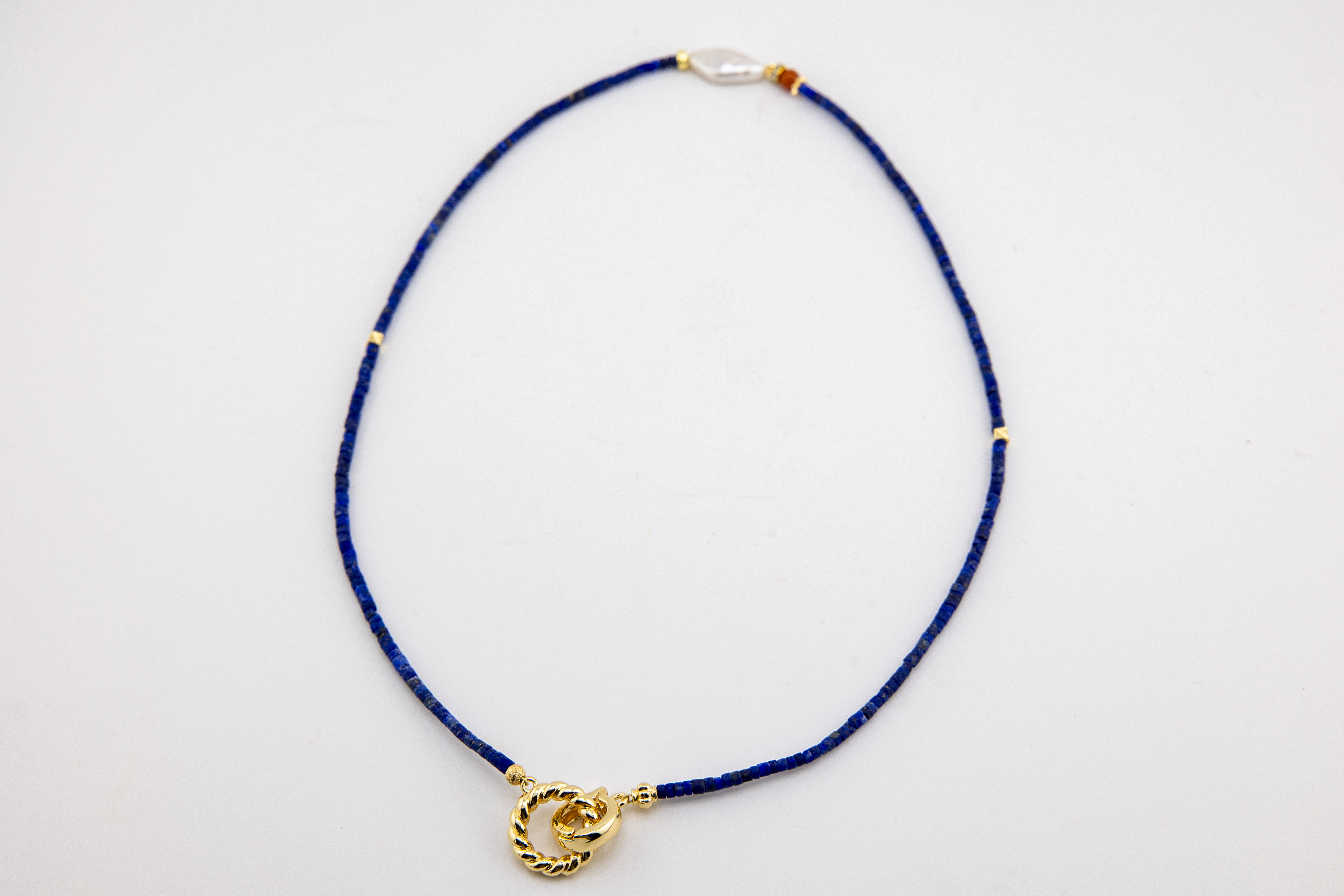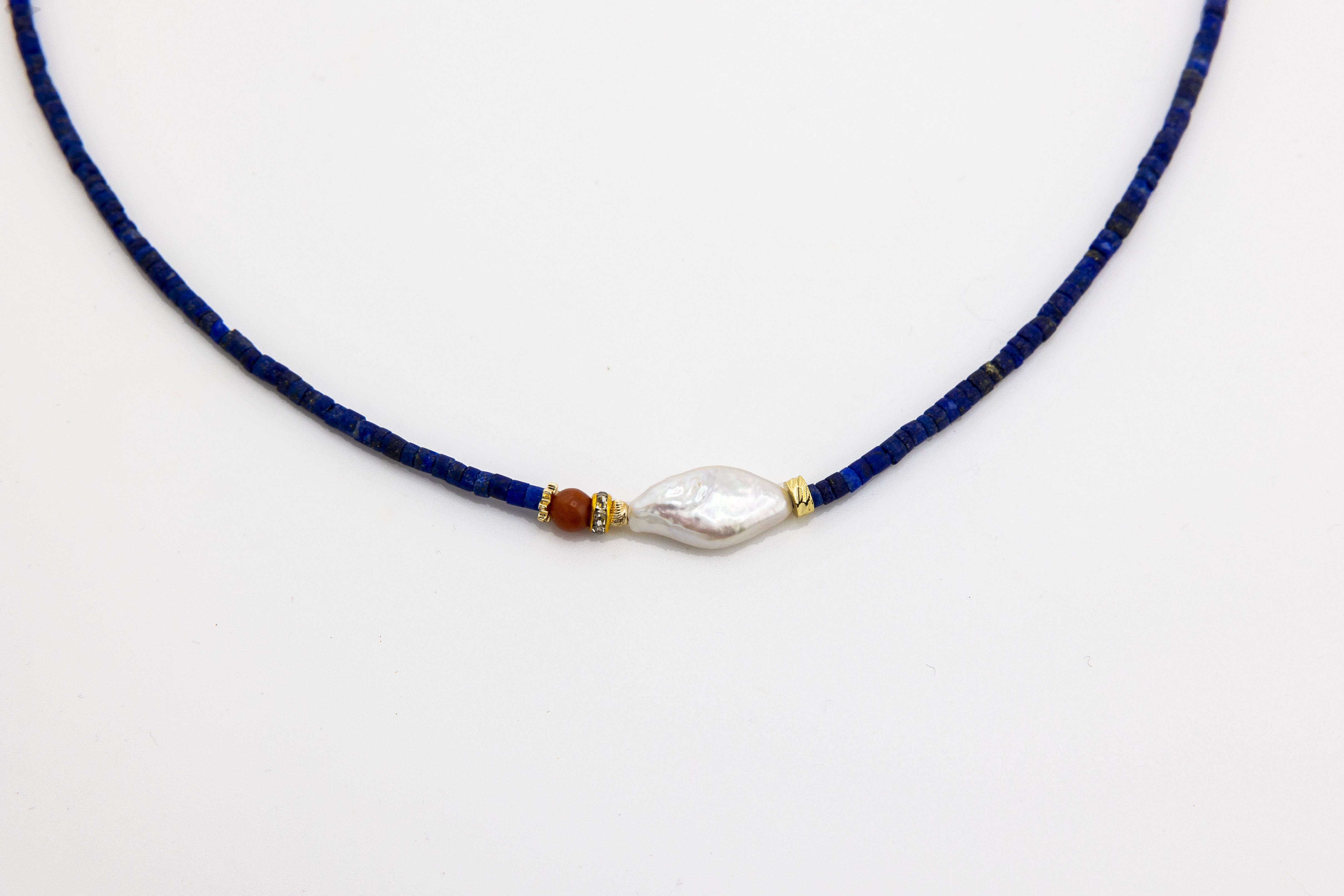 【设计说明】1.天然无加色青金石,9月生辰玉,带金带白,纯天然原石颜色略微分布不均。2.巴洛克异形珍珠,天然光泽,带天然生长纹,天然不完美,完美不天然。