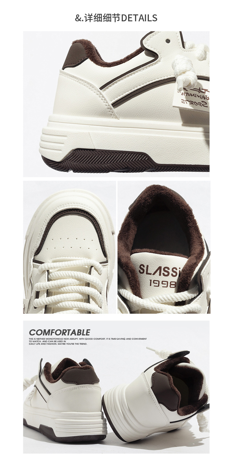 「两款配色!加绒款」运动休闲加绒小白鞋女学生2023秋冬保暖ins潮厚底板鞋女