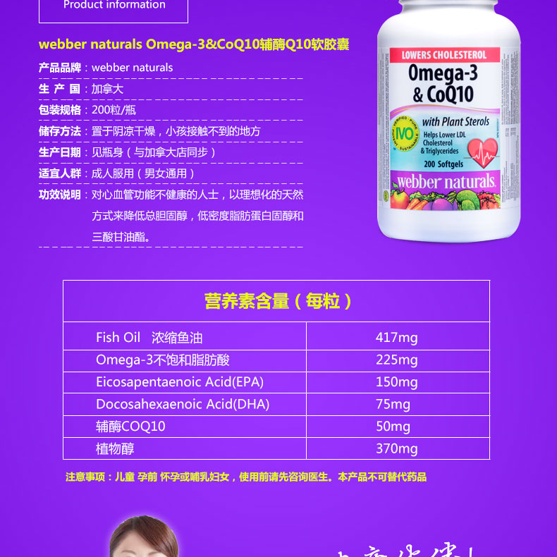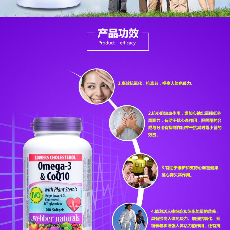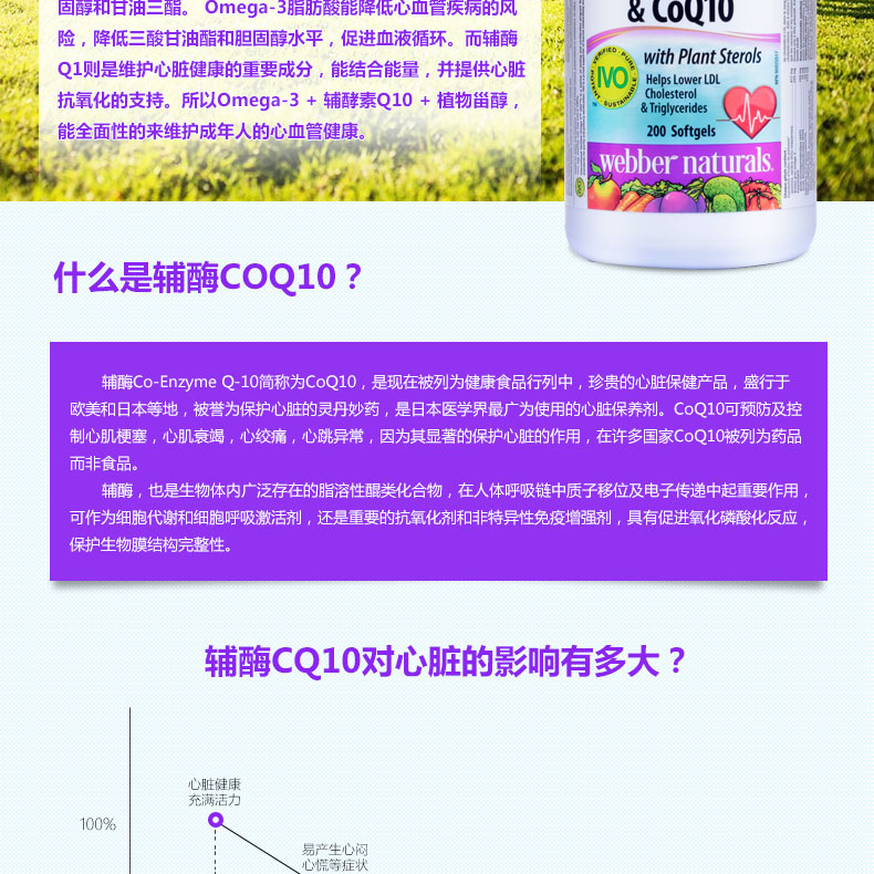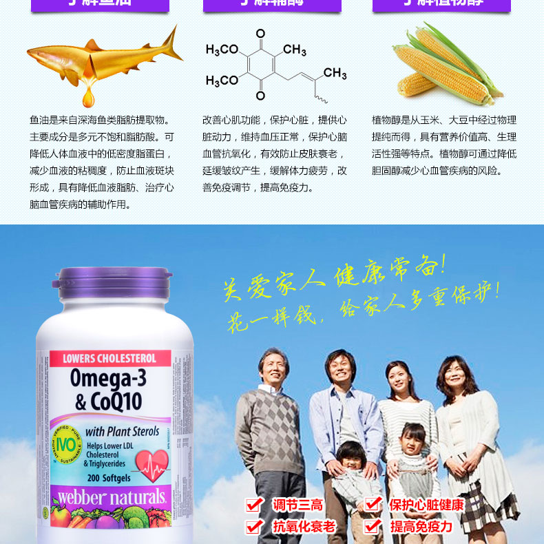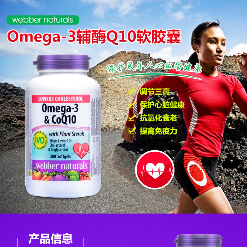 伟博Webber omega-3 & q10深海浓缩鱼油辅酶Q10软胶囊 200粒 #石家庄仓
