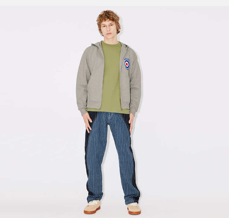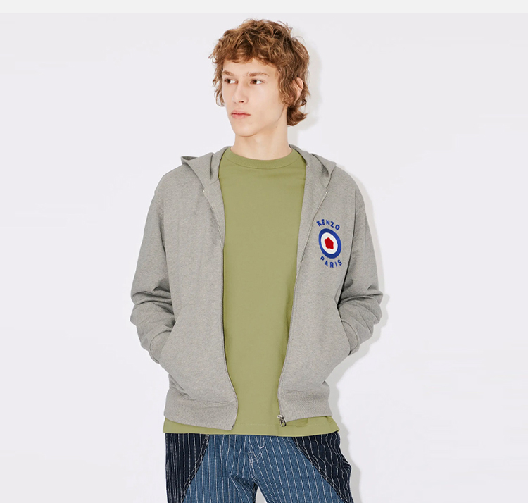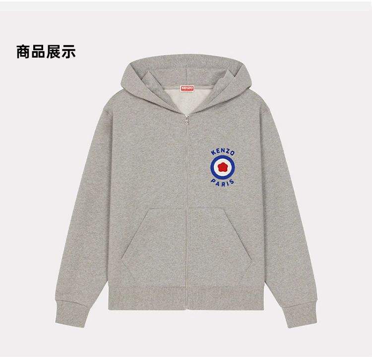 KENZO 高田贤三 男士“KENZO TARGET”徽标印花拉链连帽运动卫衣 浅灰色 FD65 SW075 4MF 94