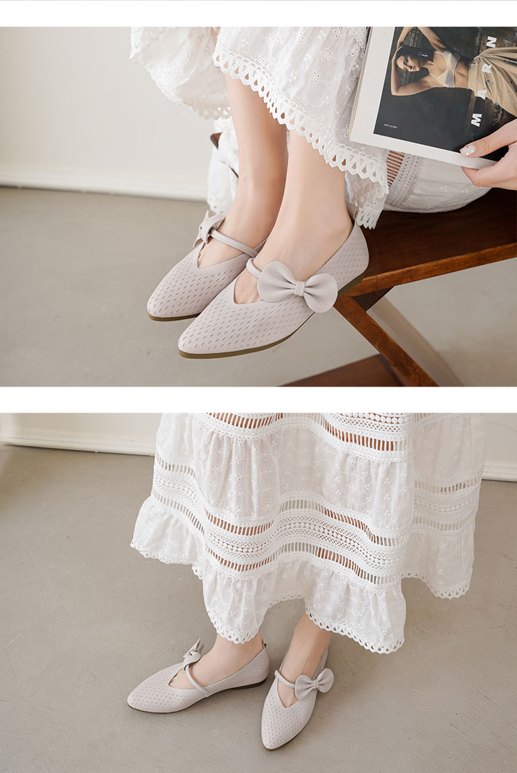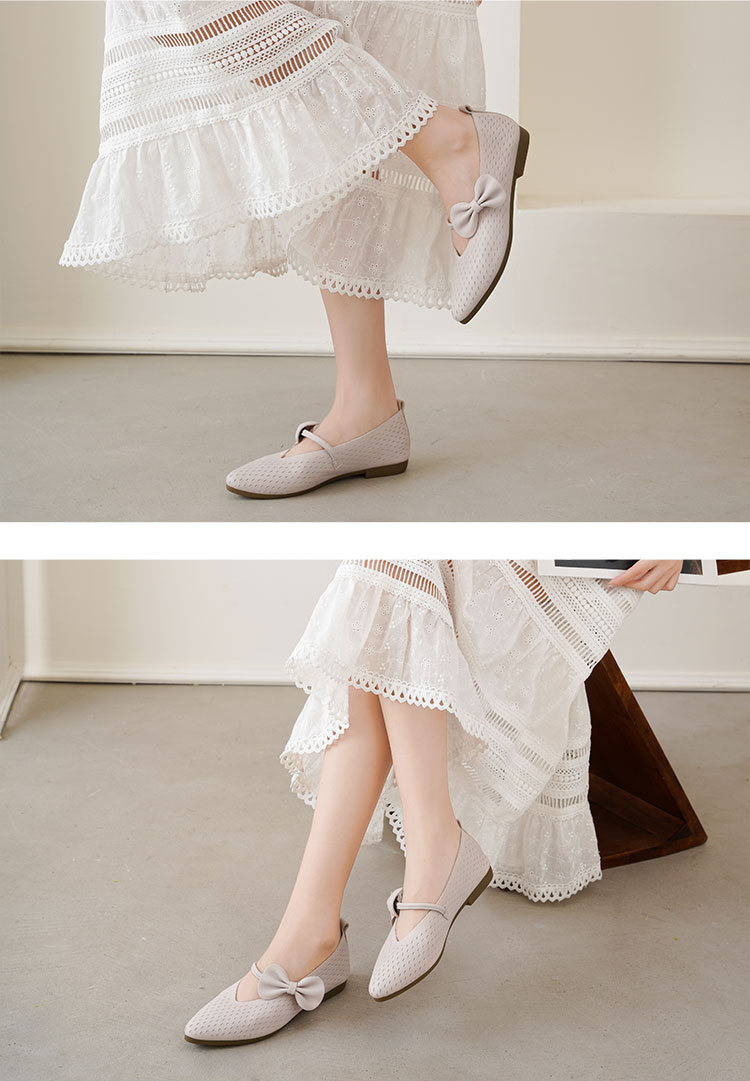 【夏季新款】西村名物2025年夏季新款舒适平底小尖头蝴蝶结饰扣镂空单鞋T25CE39111