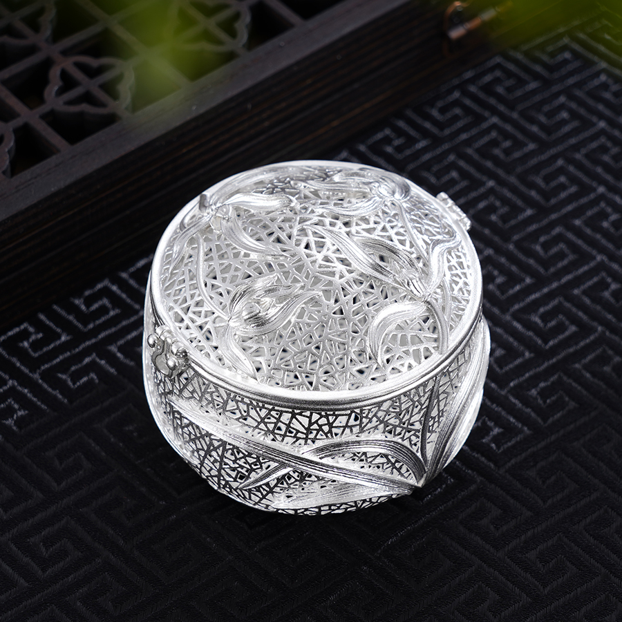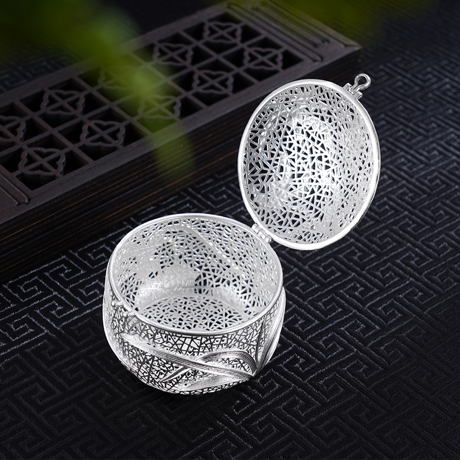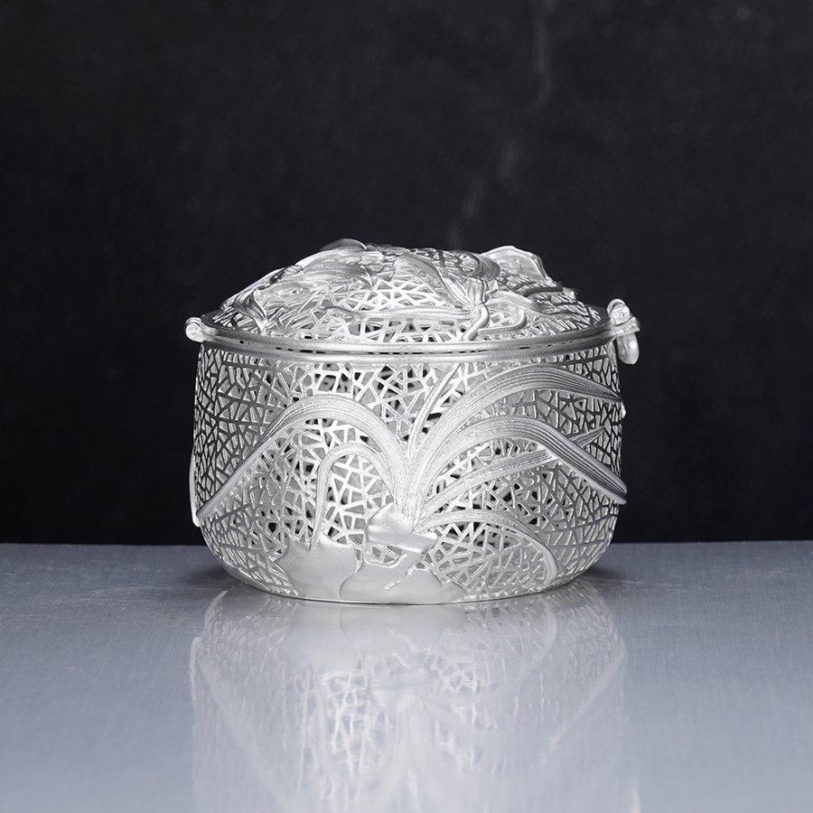 【寓意】:茶包灵感源自兰花兰叶,采用银花丝工艺编织,开合设计暗藏巧思,风格清雅,趣味独特。足银材质,泡/煮高温下释放银离子,消毒杀菌、养生保健。