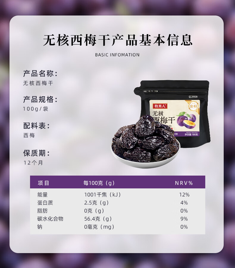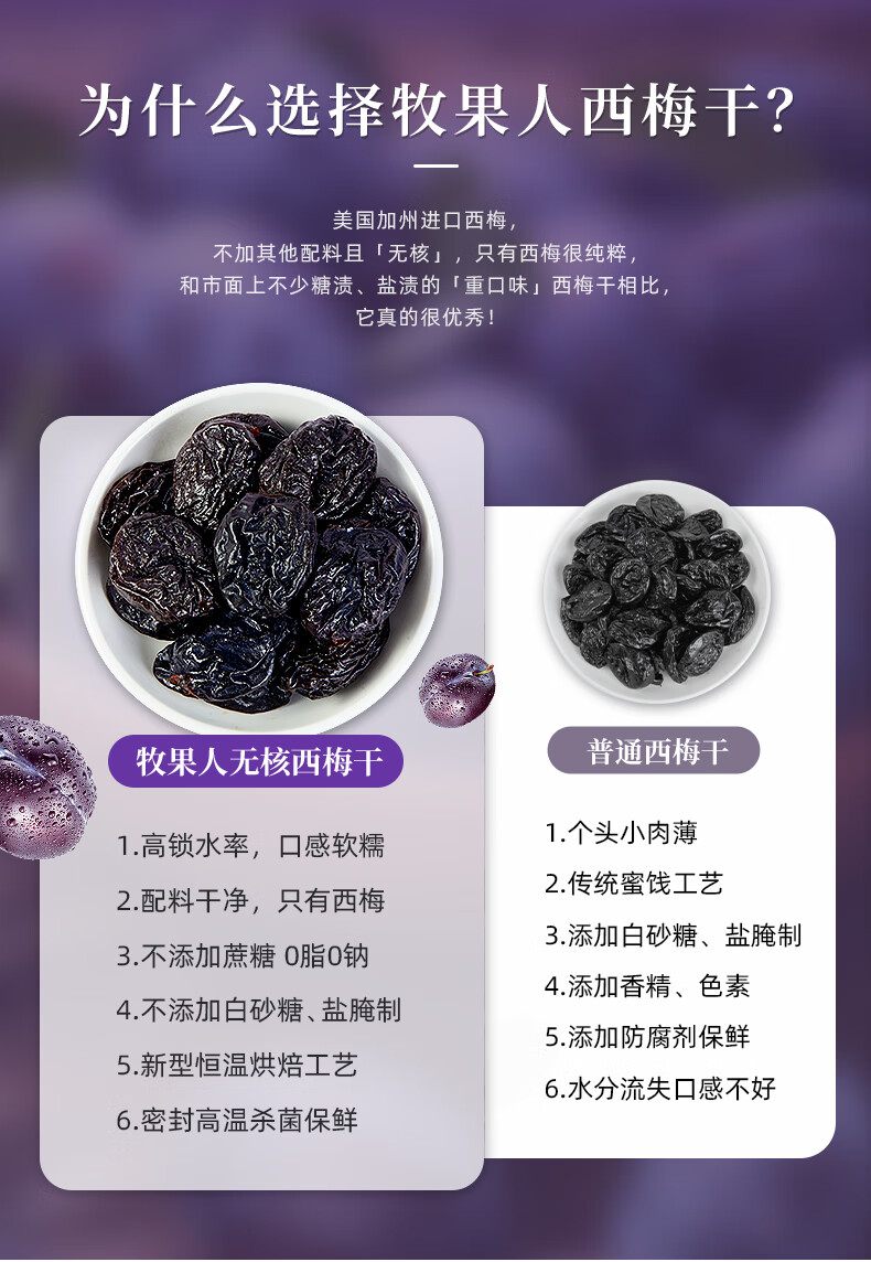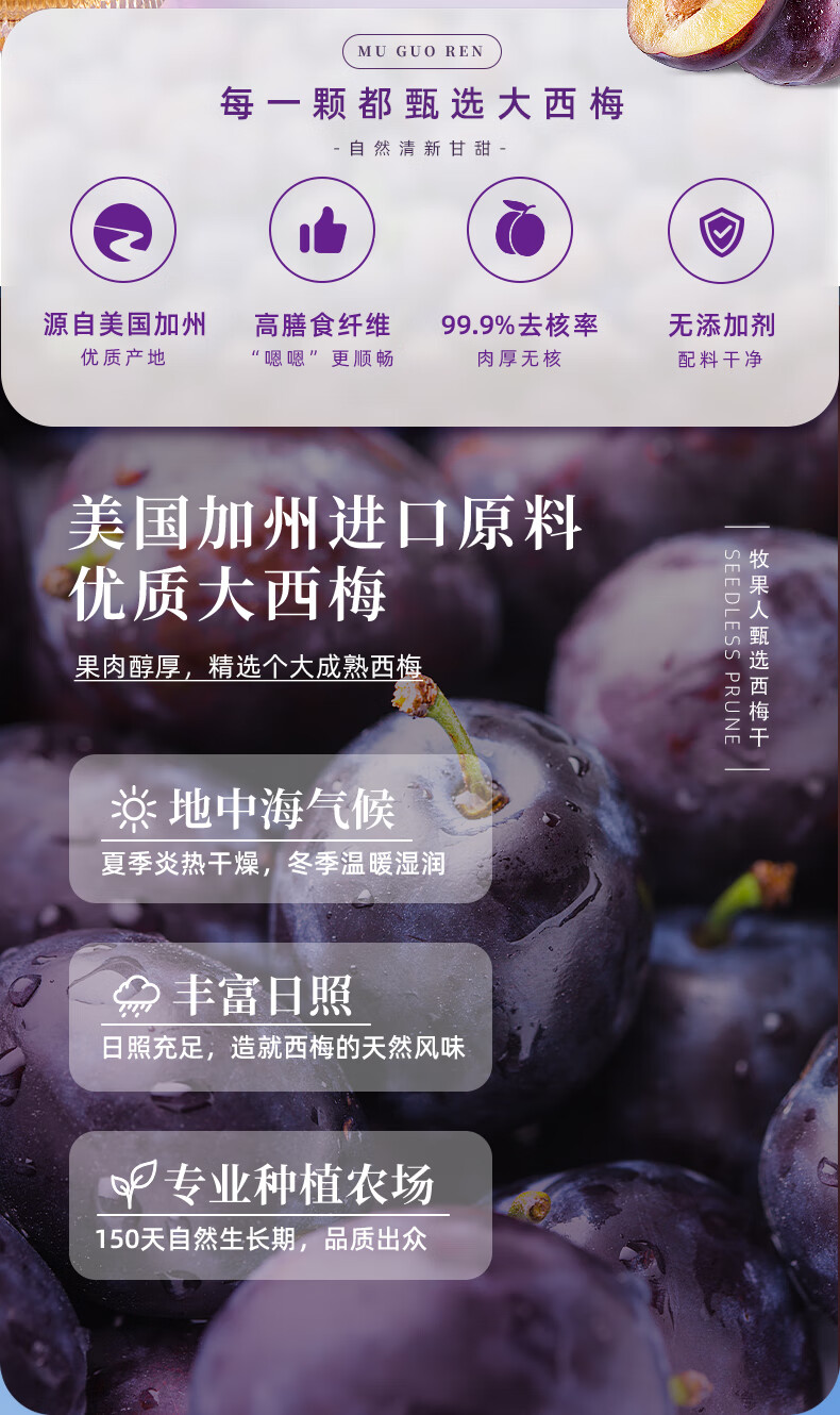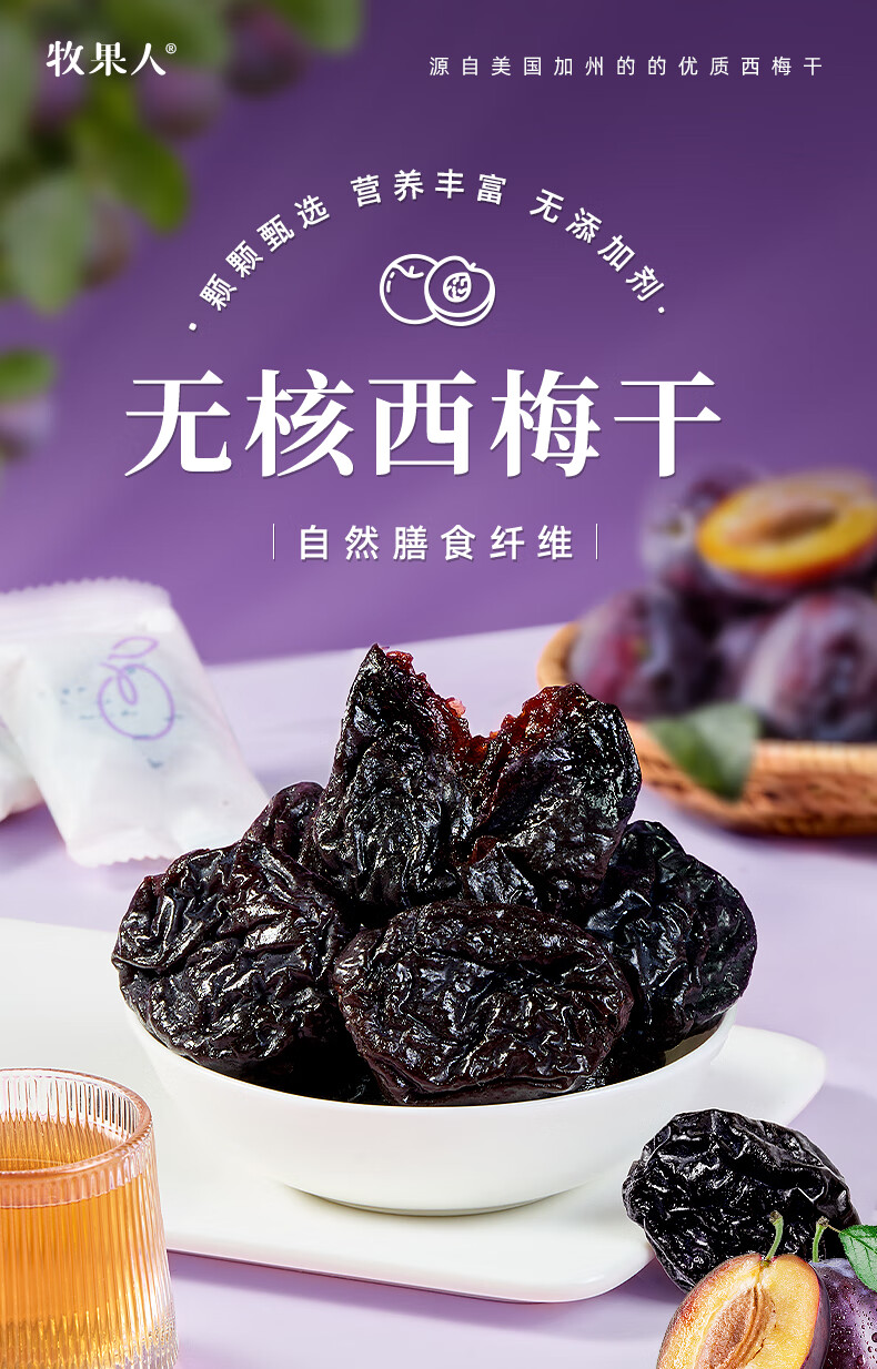 【分仓直发包邮】牧果人无核西梅干100g*3袋