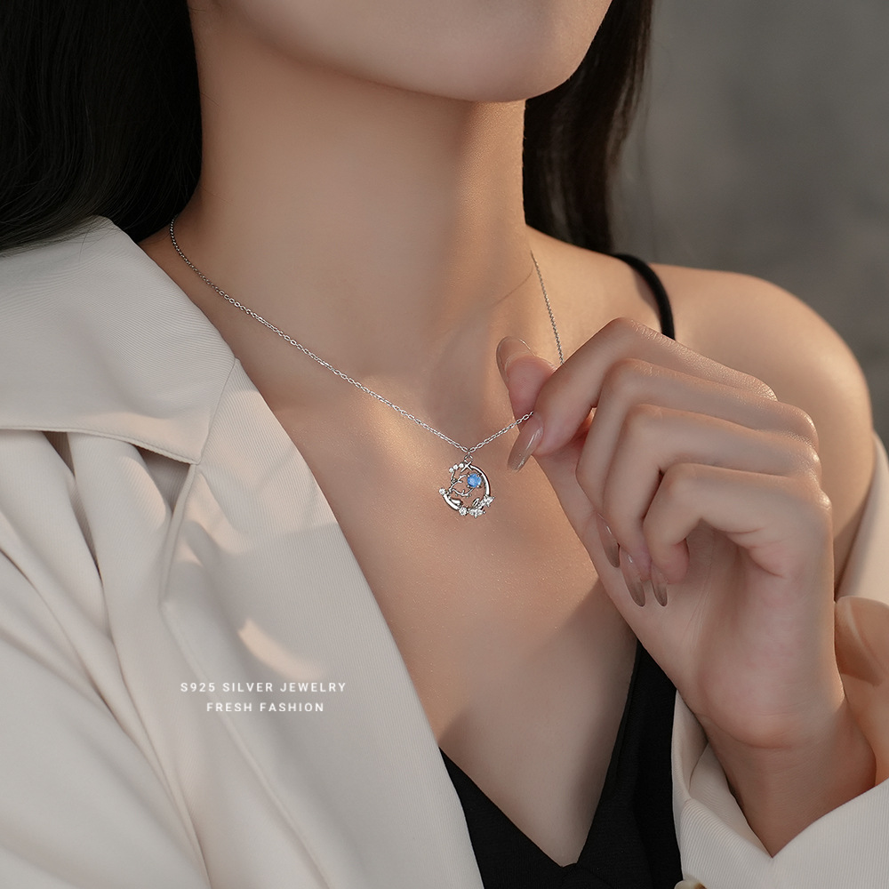 【若忆】S925银蓝色琉璃石项链【YXS-YA0349】