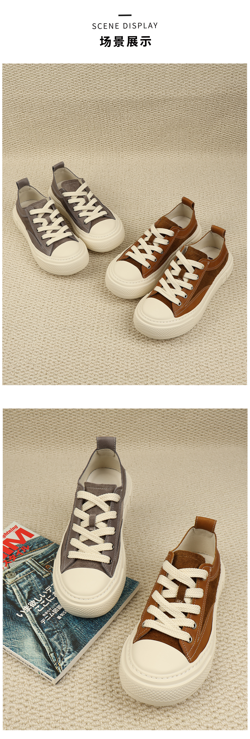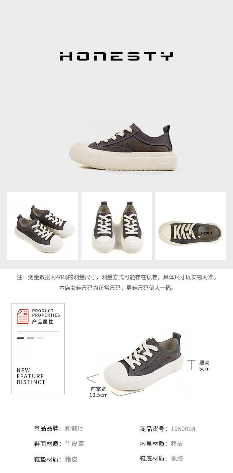 和诚行 2024秋冬新款时尚真皮运动休闲鞋女百搭厚底老爹鞋1900054
