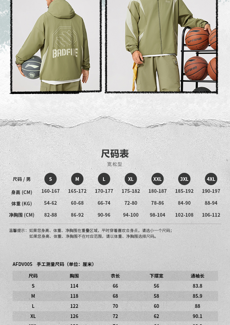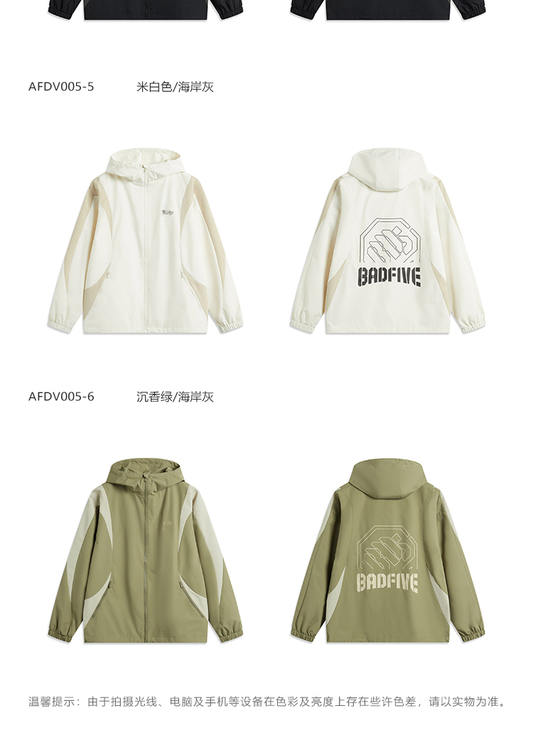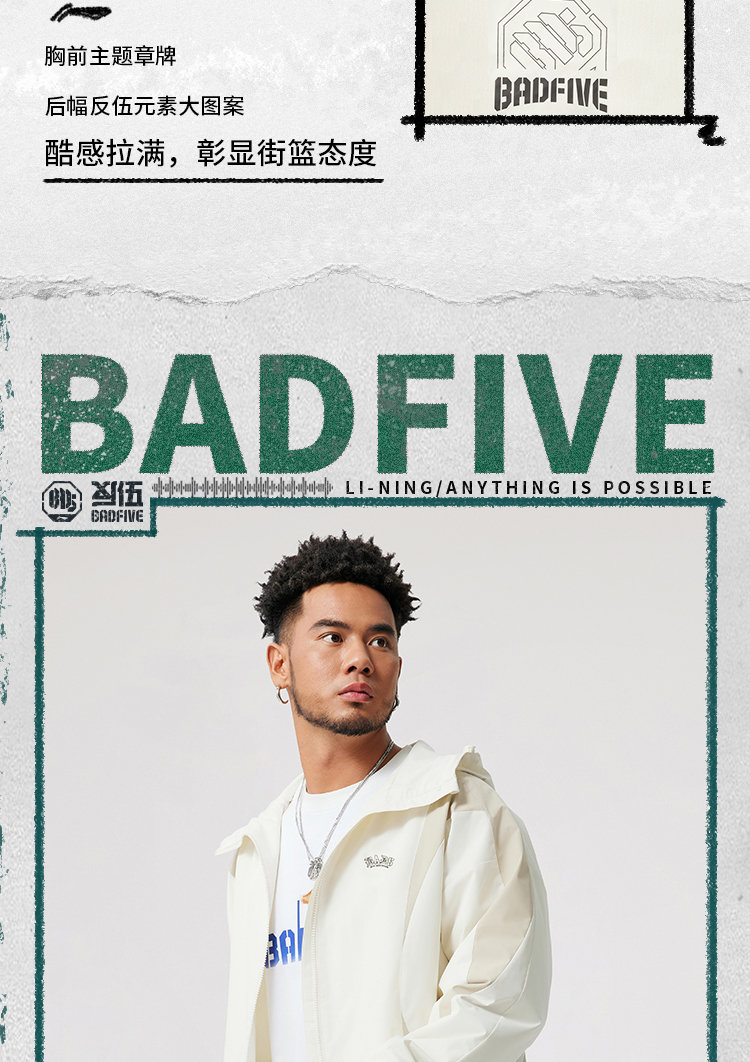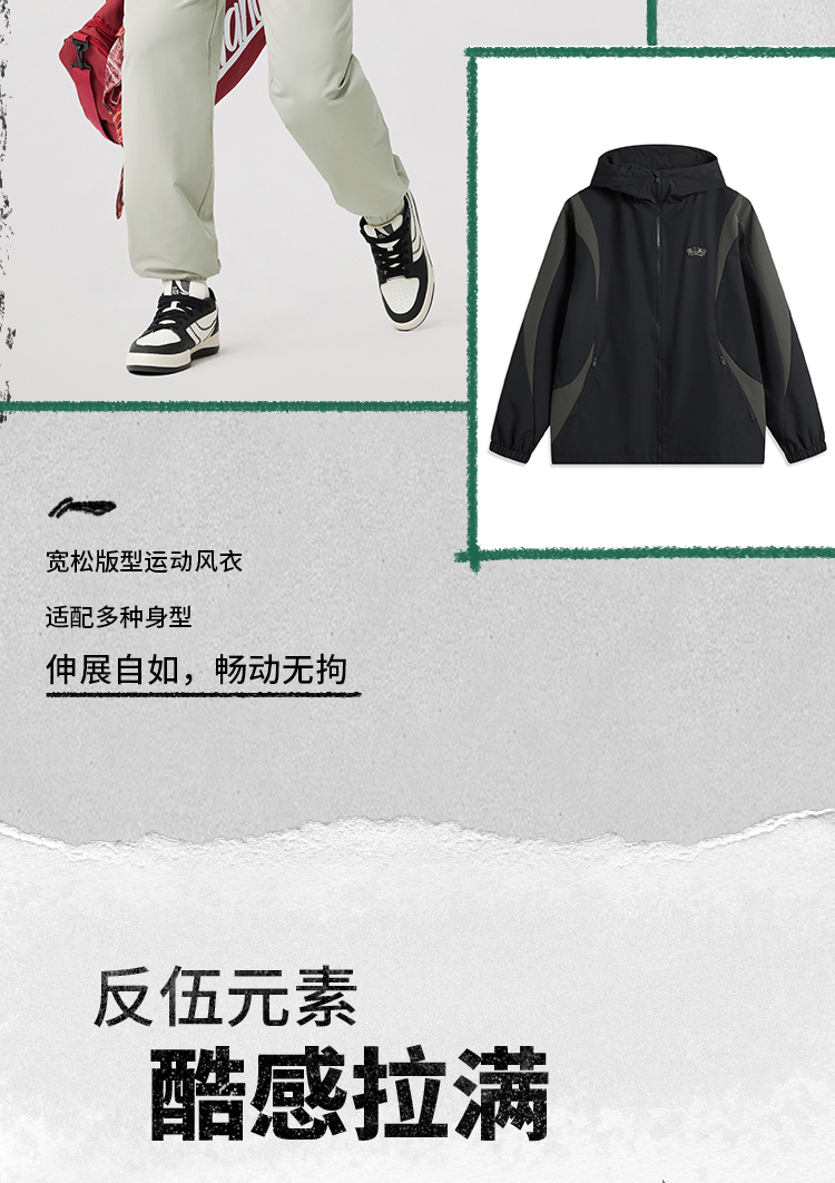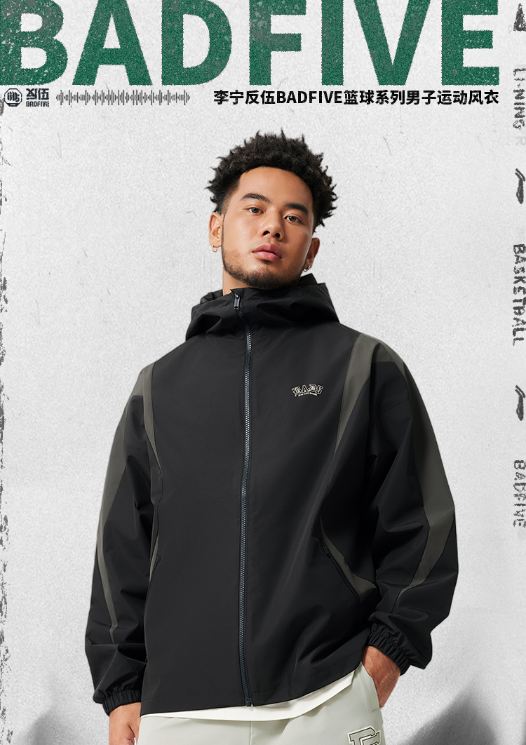 李宁反伍BADFIVE风衣男士开衫长袖外套连帽防风服梭织运动服AFDV005