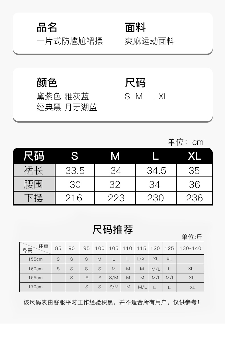 悠妍A字一片式裙摆WQ232116 防走光半身裙瑜伽裤围帘可拆卸