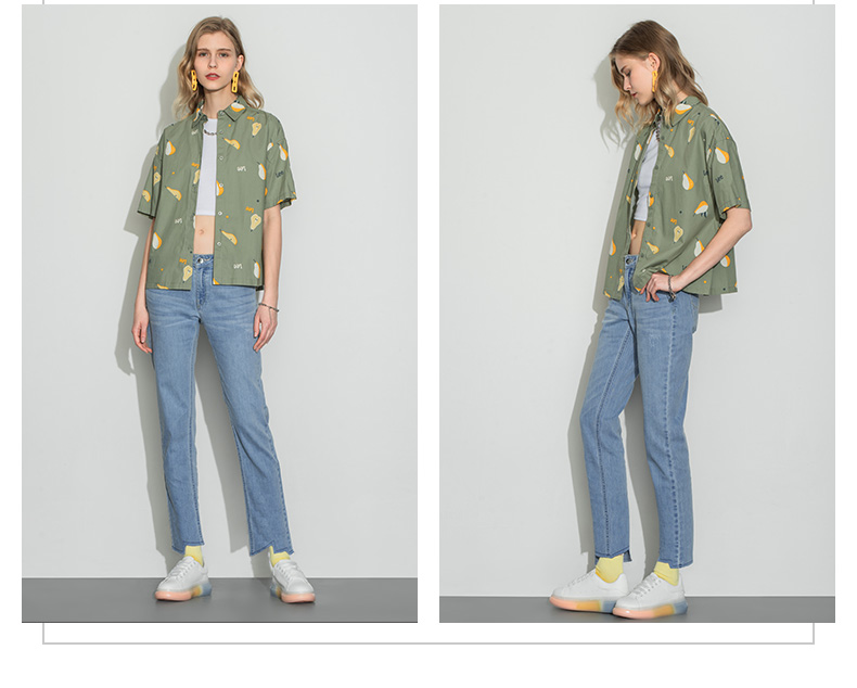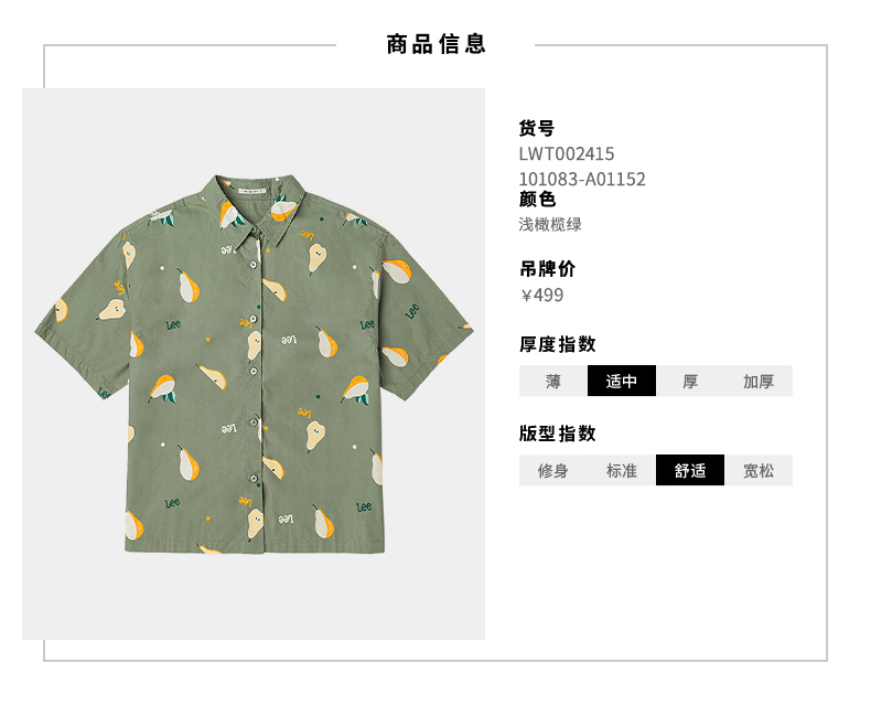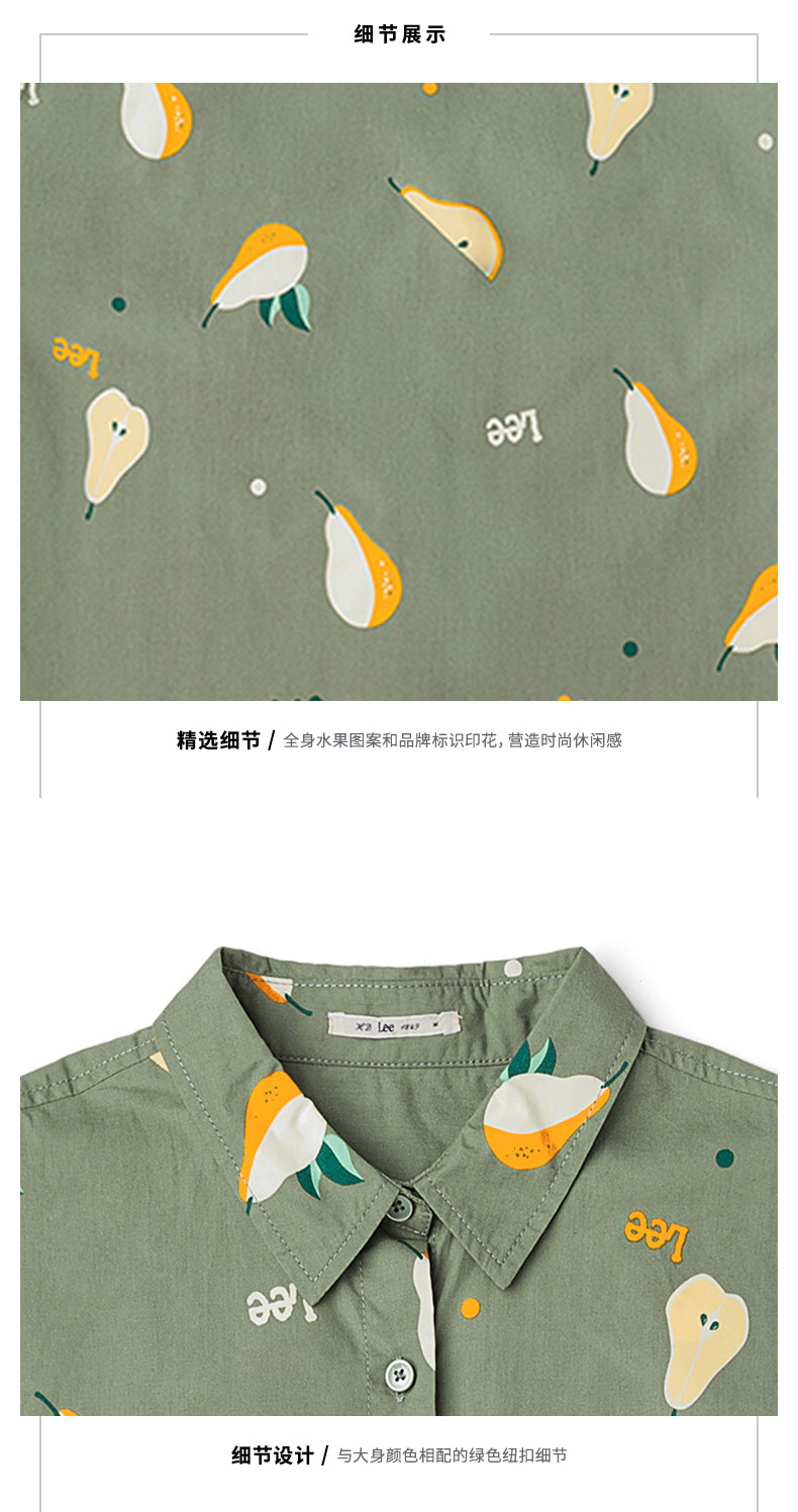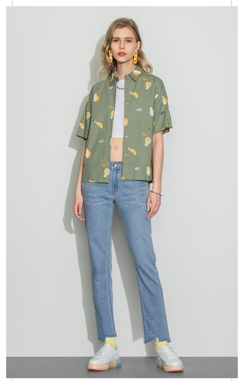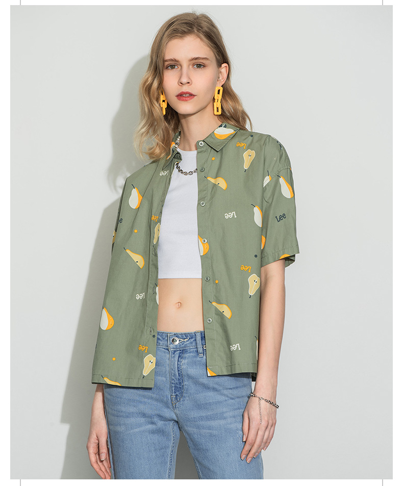 Lee商场同款22春夏新品舒适版浅绿色女短袖衬衫LWT002415101-152