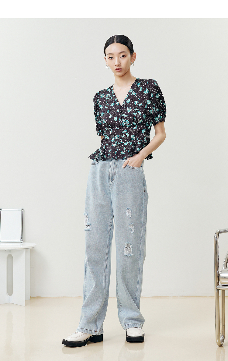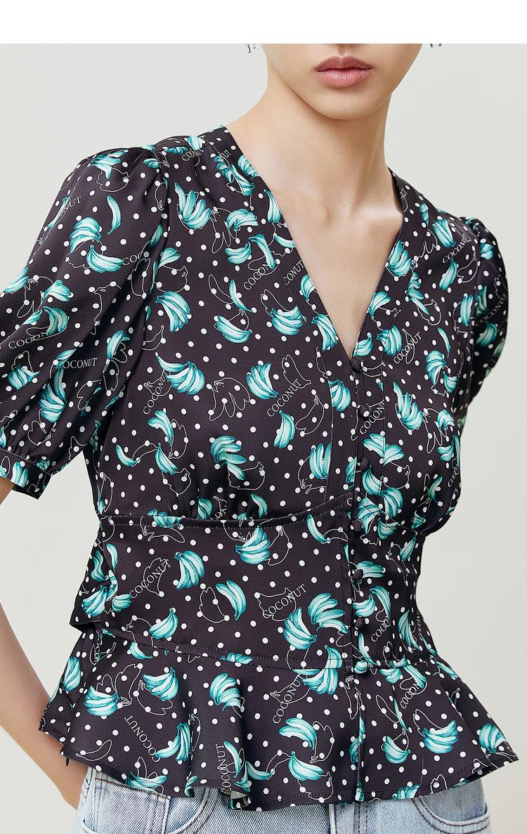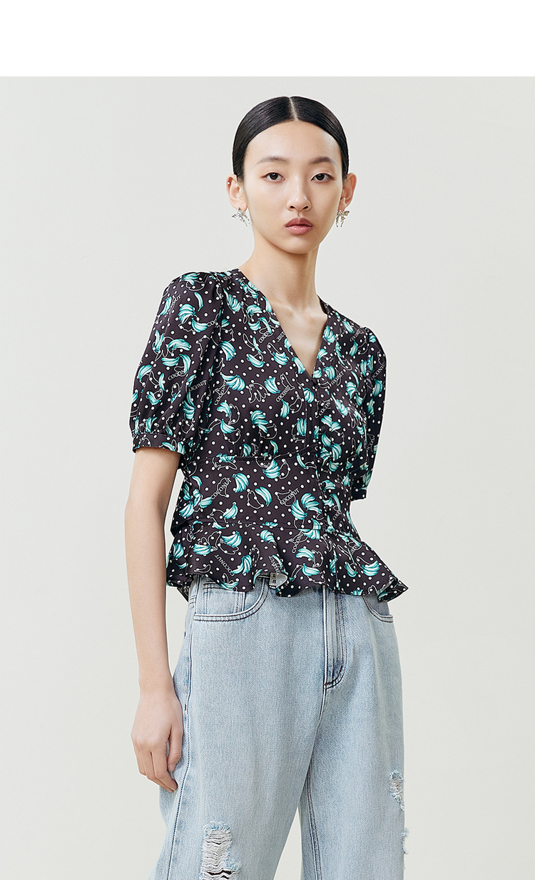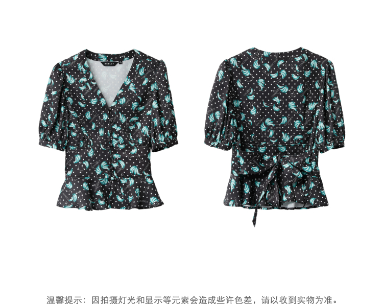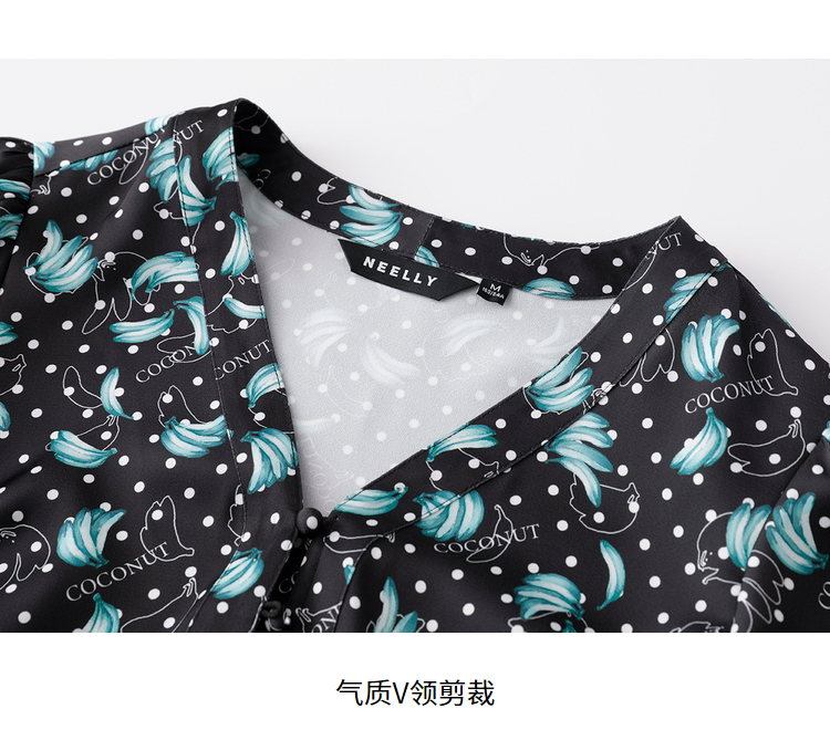 NEELLY纳俪商场同款法式浪漫气质V领泡泡袖衬衫女夏季短款上衣N22041R01013